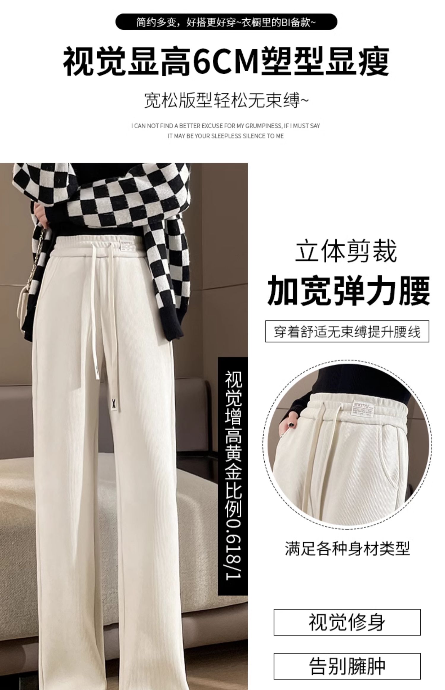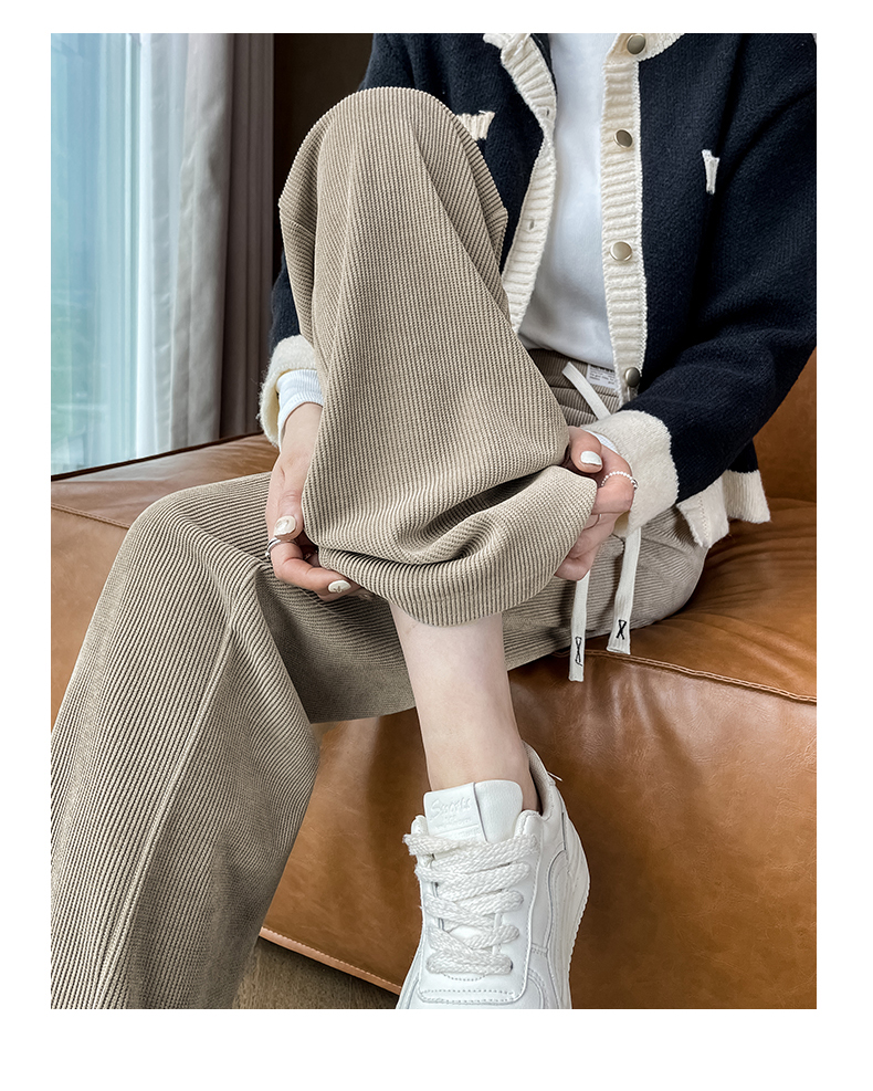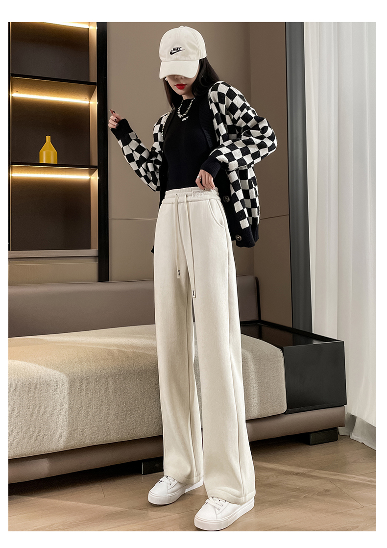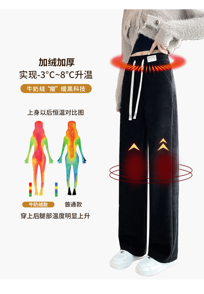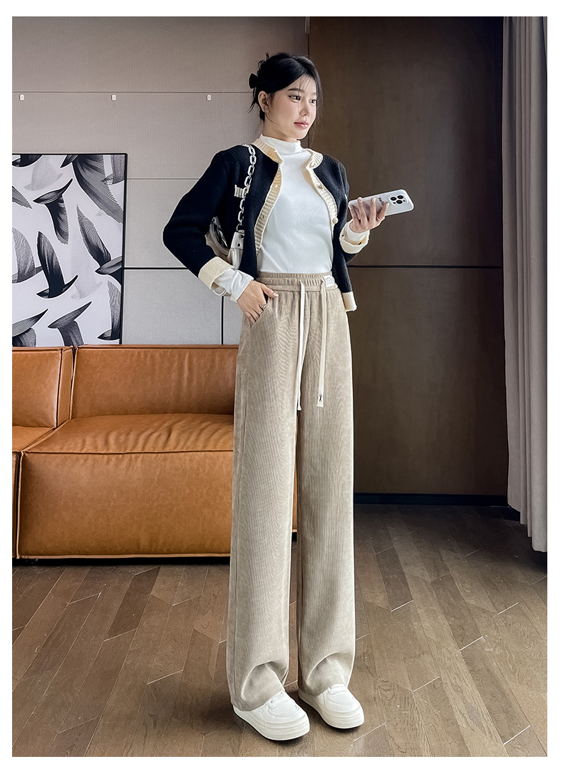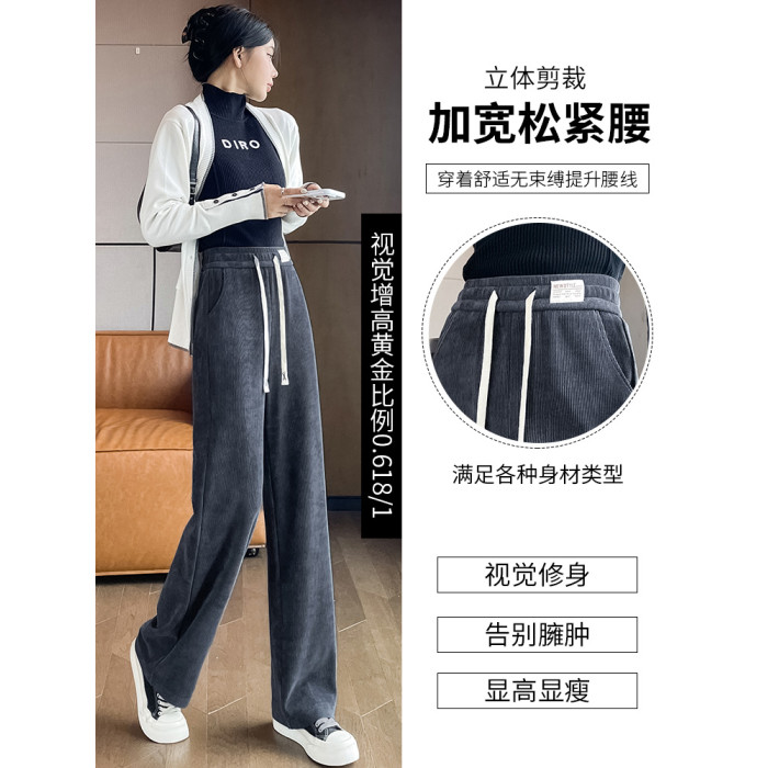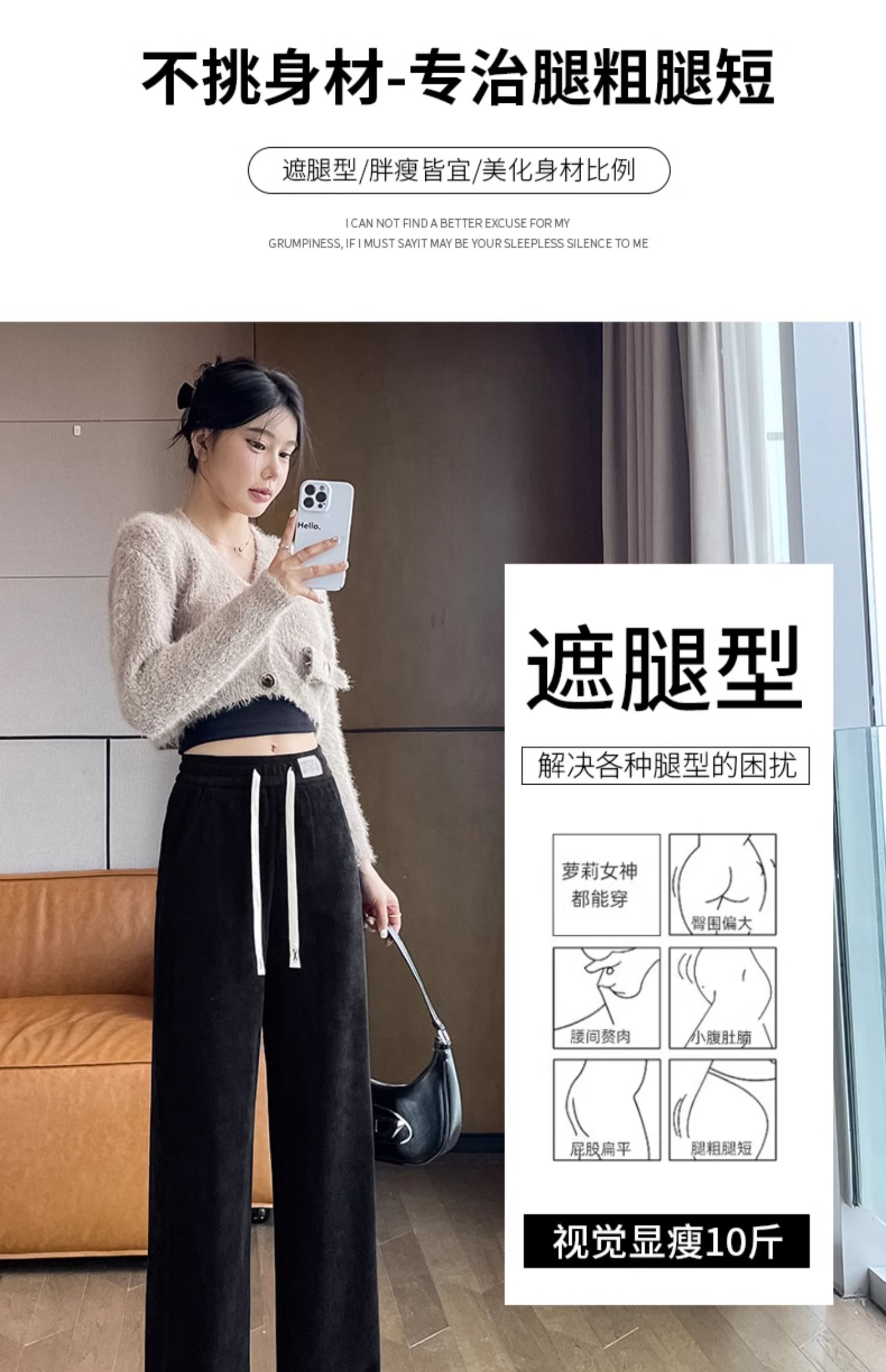 加絨雪尼爾濶腿褲女秋冬季2025新款爆款窄版直筒褲加厚燈芯絨褲子