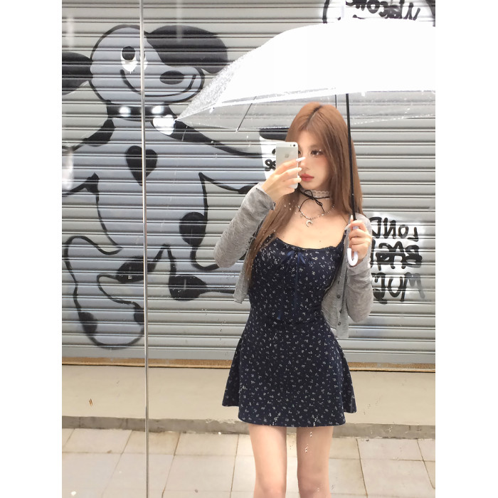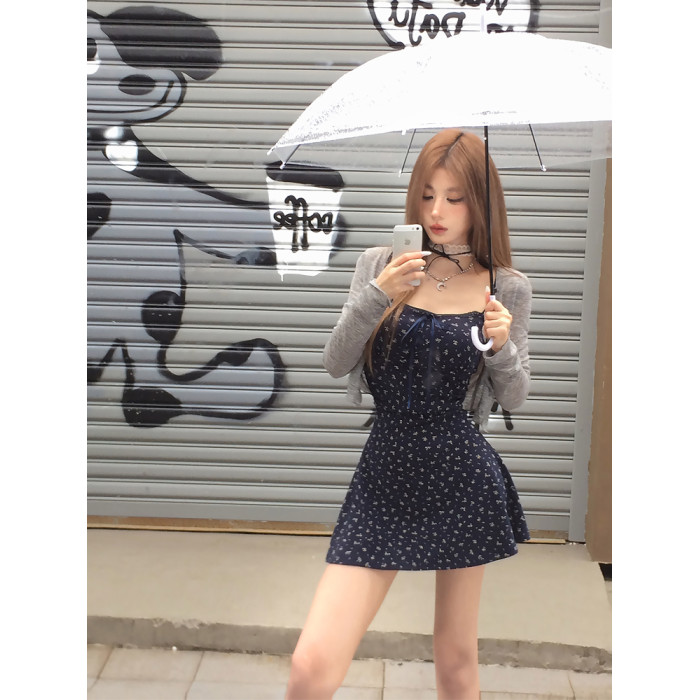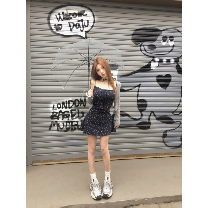 Mejiu蜜九【北海花園】吊帶碎花裙夏季法式連衣裙設計感辣妹裙子