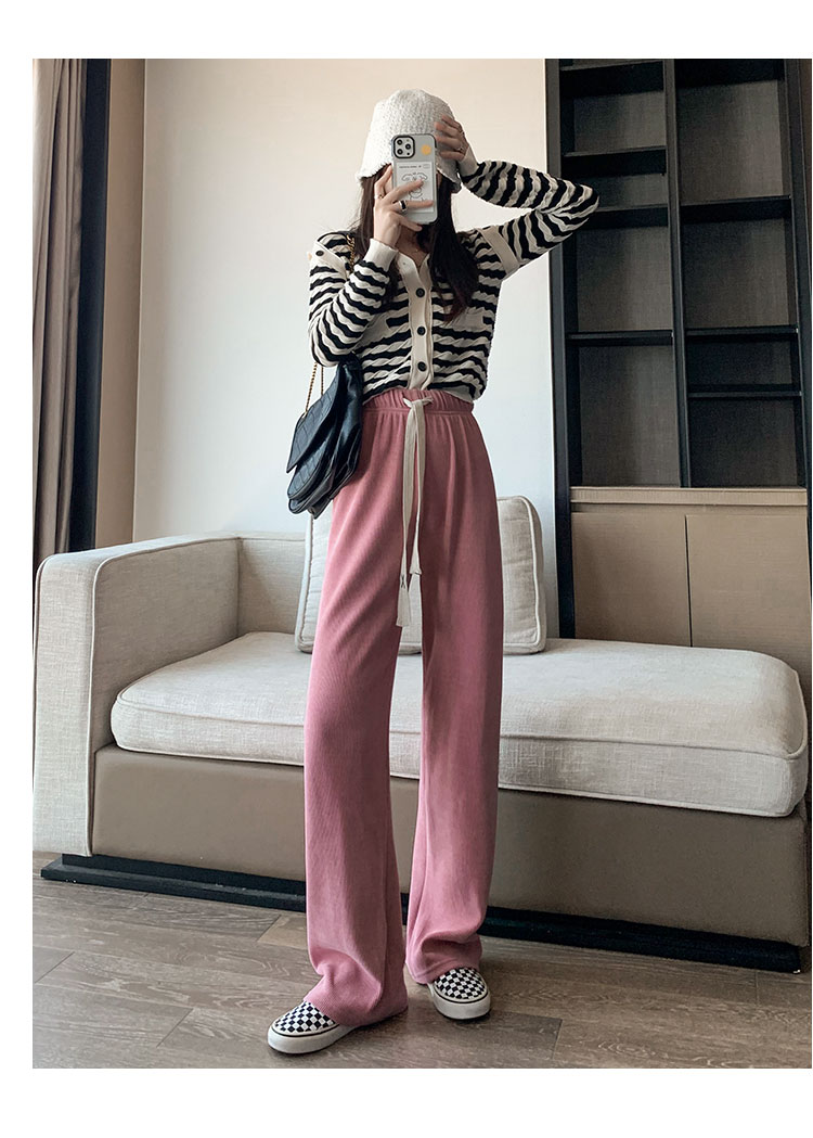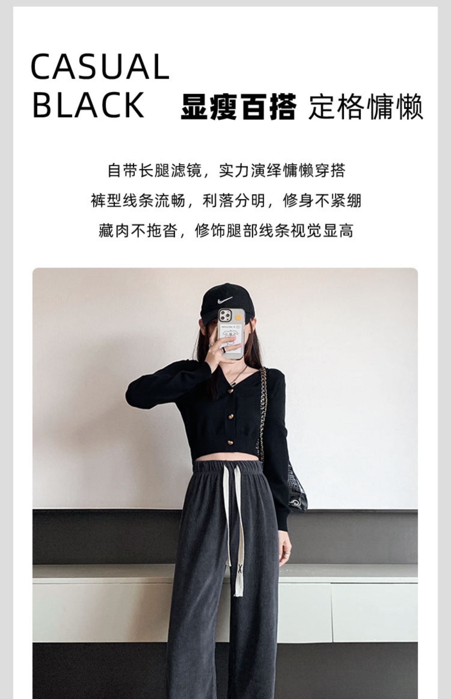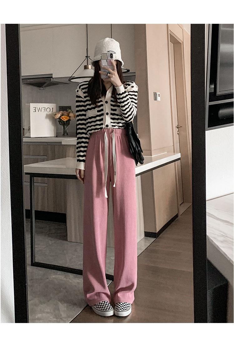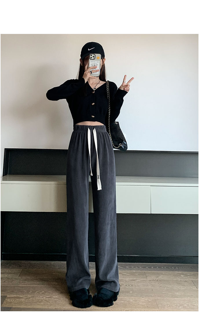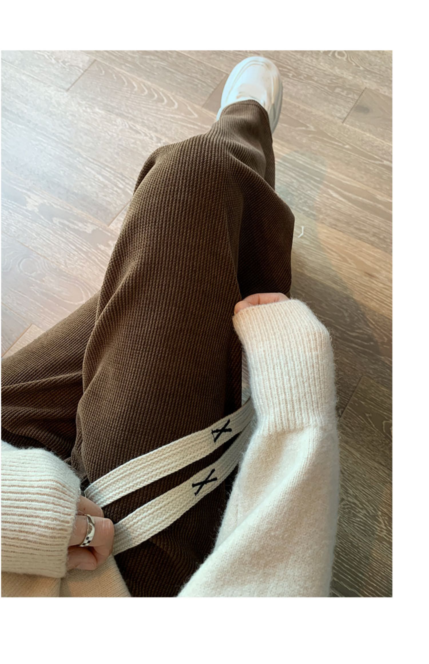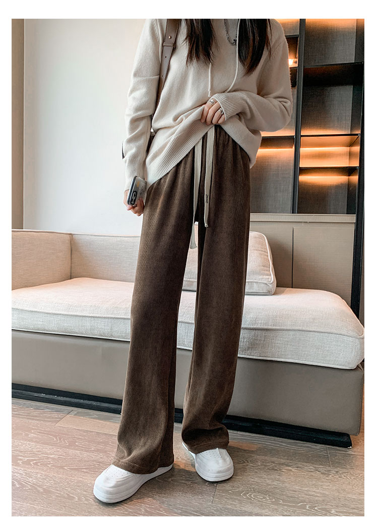 咖色窄版濶腿褲女秋冬季加絨加厚垂感直筒寬松慵懶休閒燈芯絨褲子