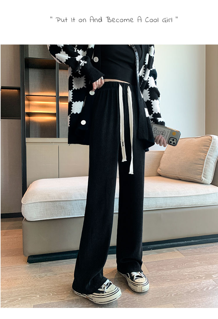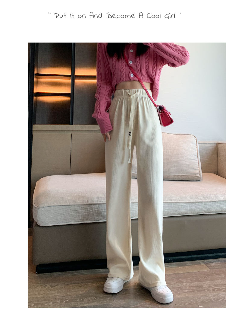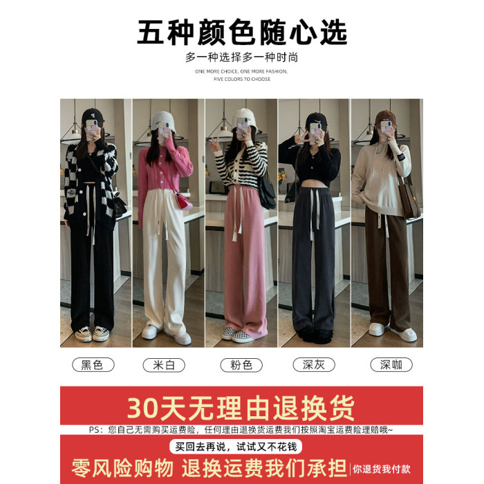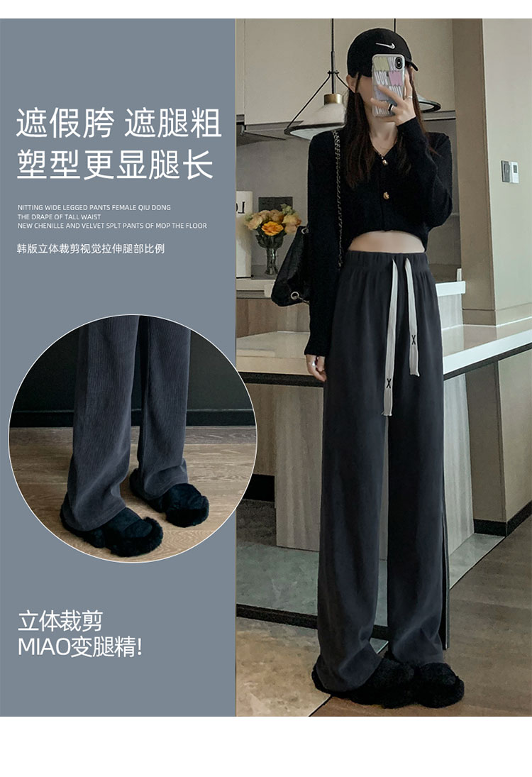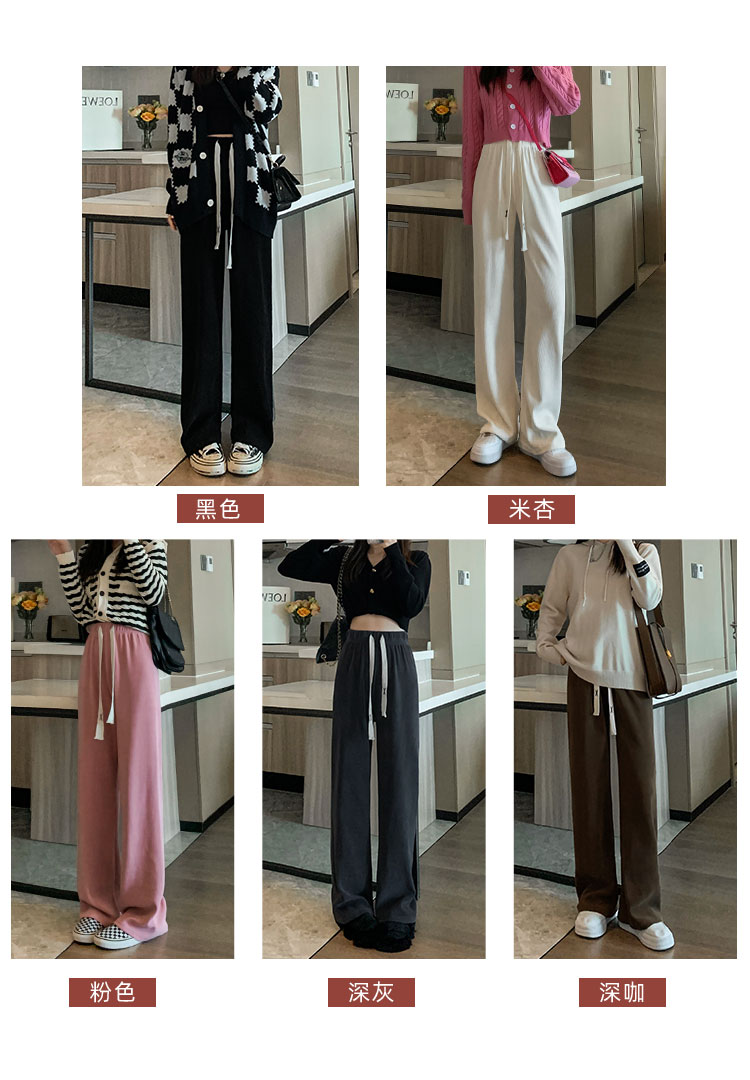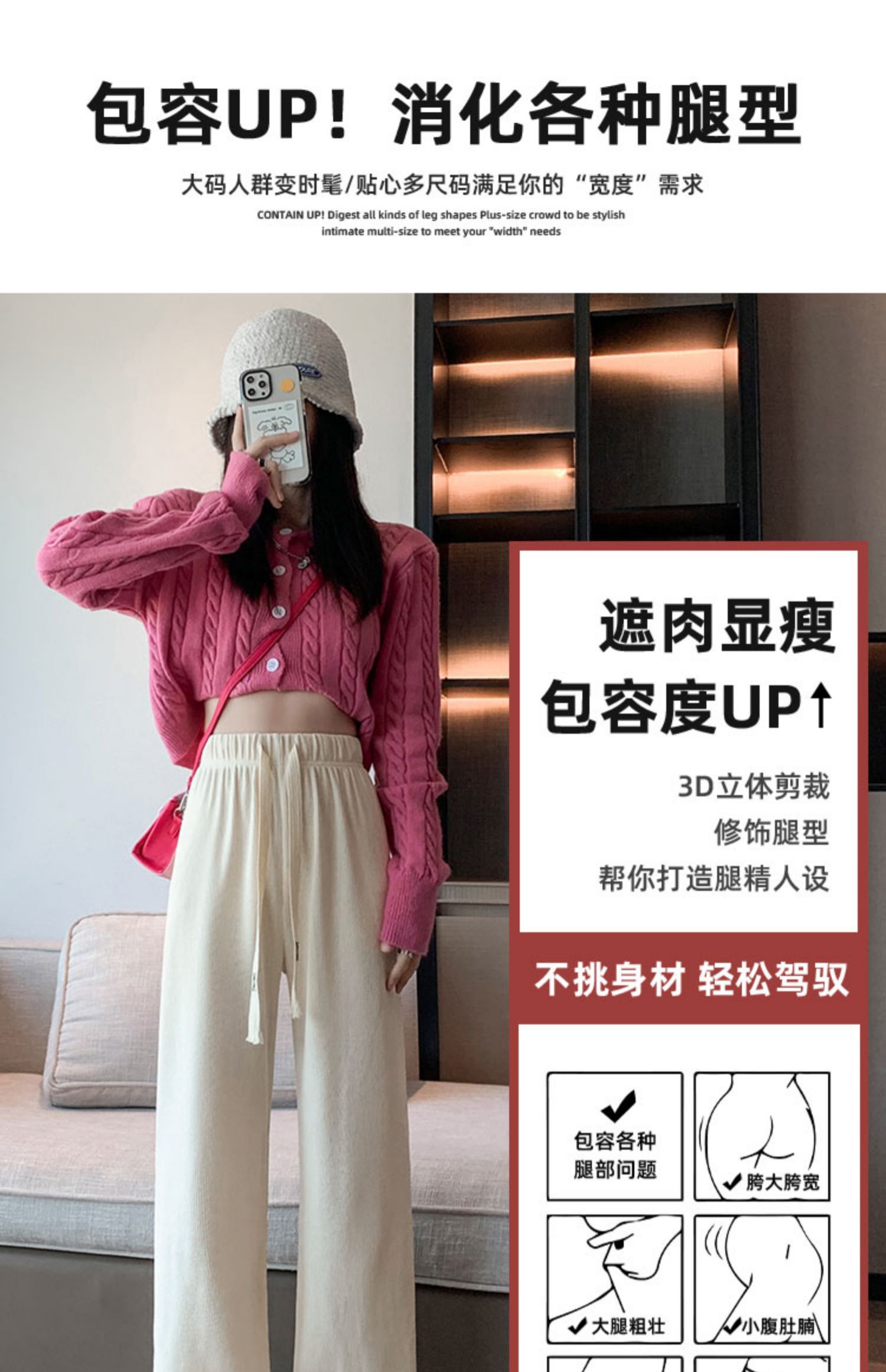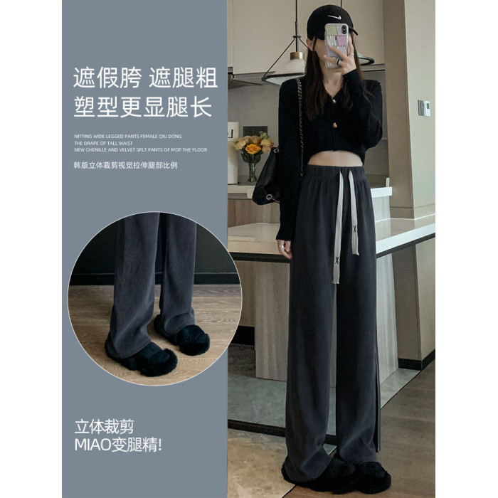 咖色窄版濶腿褲女秋冬季加絨加厚垂感直筒寬松慵懶休閒燈芯絨褲子