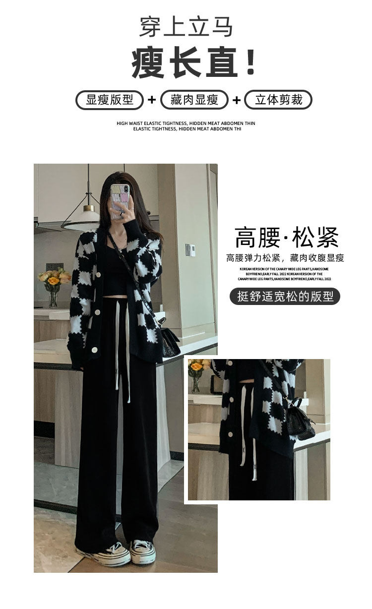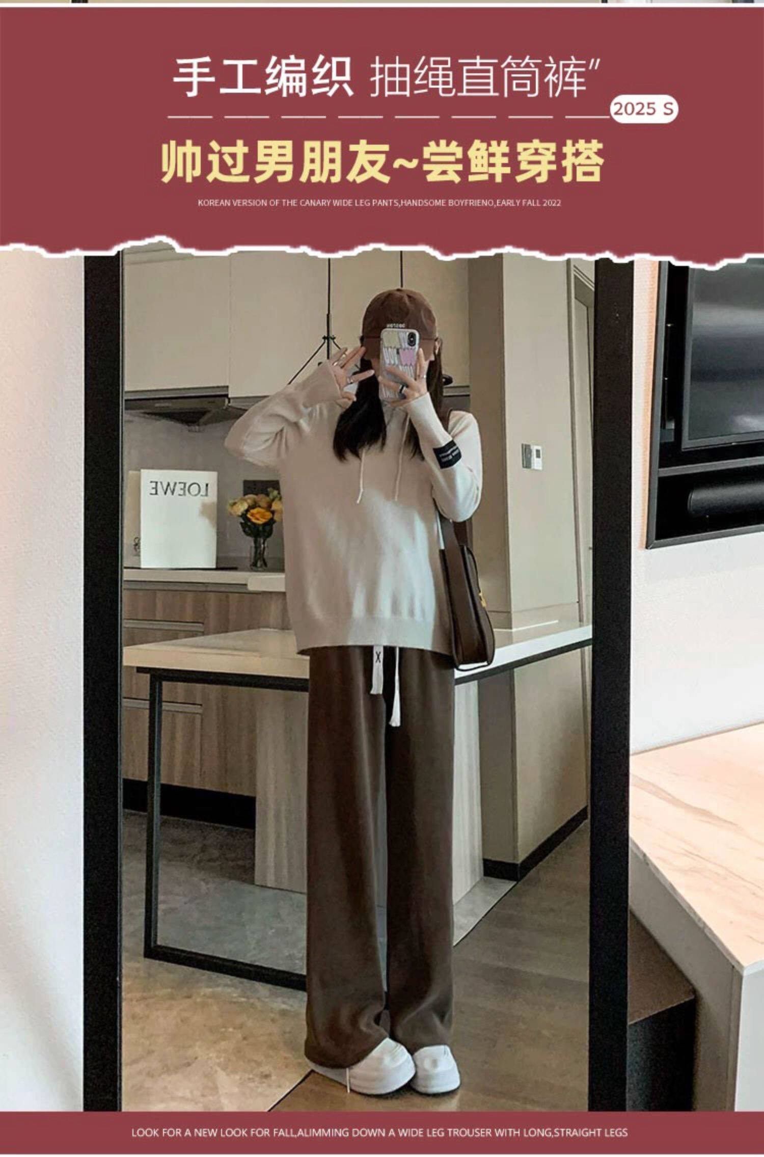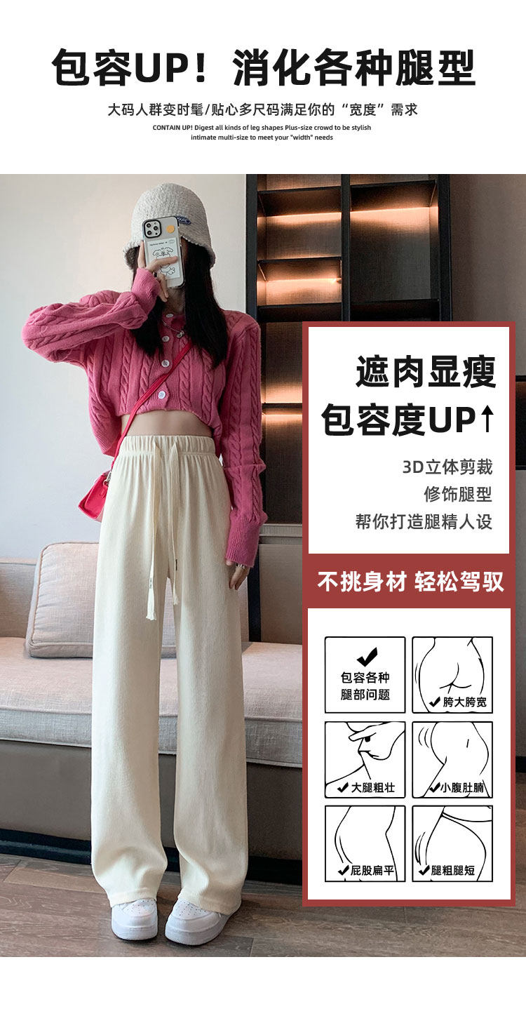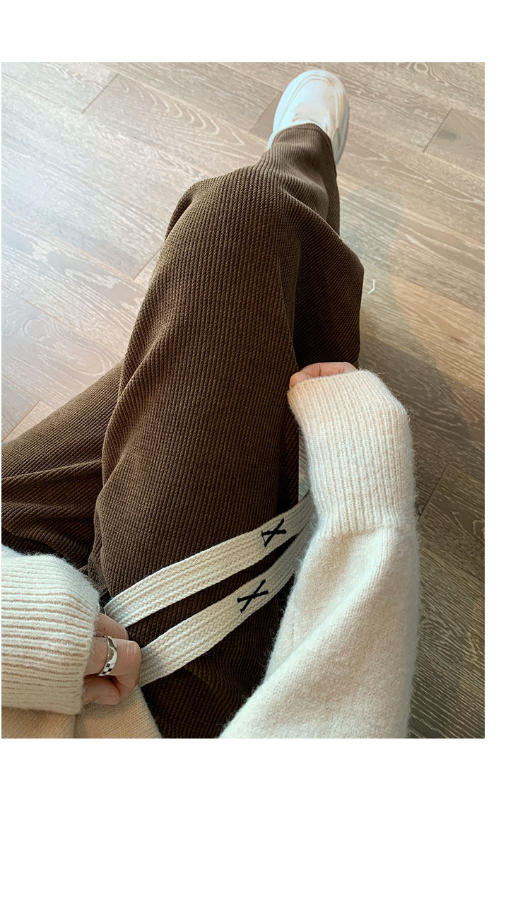 咖色窄版濶腿褲女春秋2026新款垂感直筒寬鬆小個子休閒燈芯絨褲子