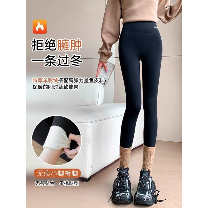 貓人灰色鯊魚褲女外穿秋冬加絨加厚高腰提臀瑜珈褲健身保暖打底褲