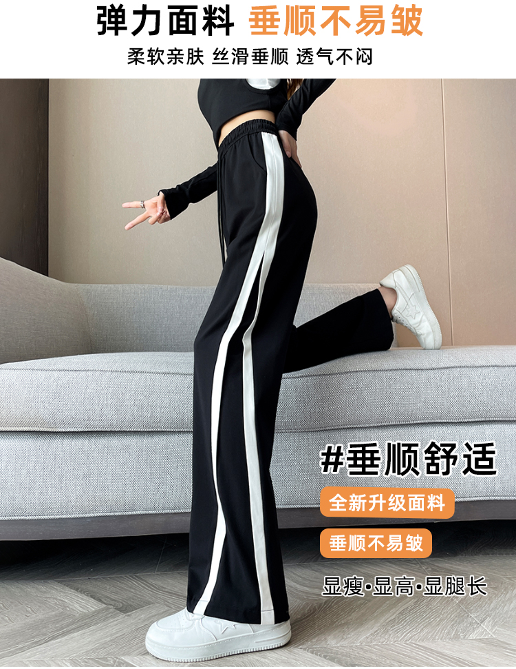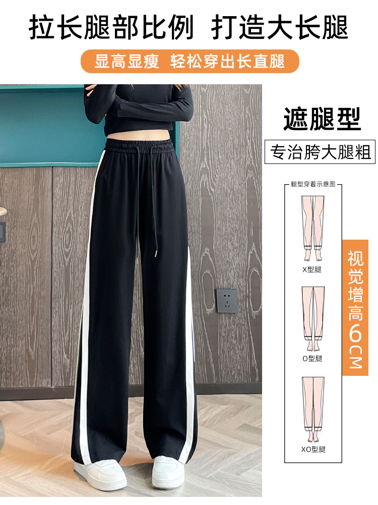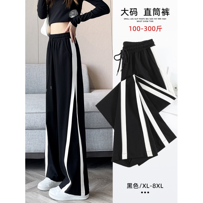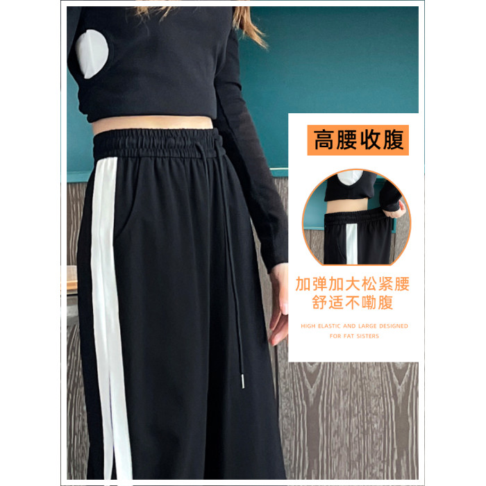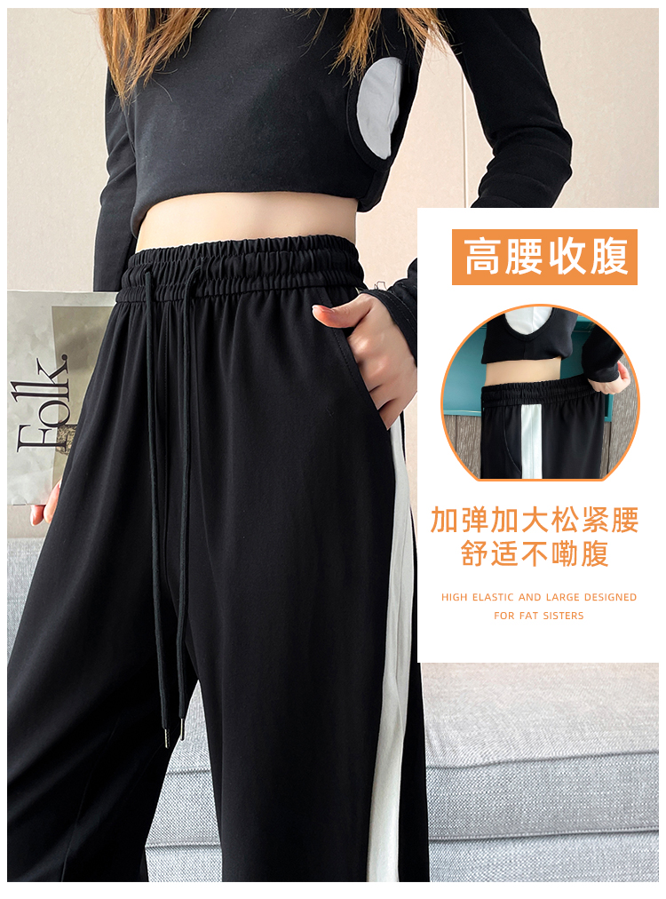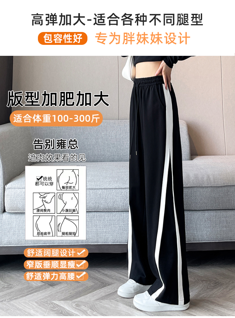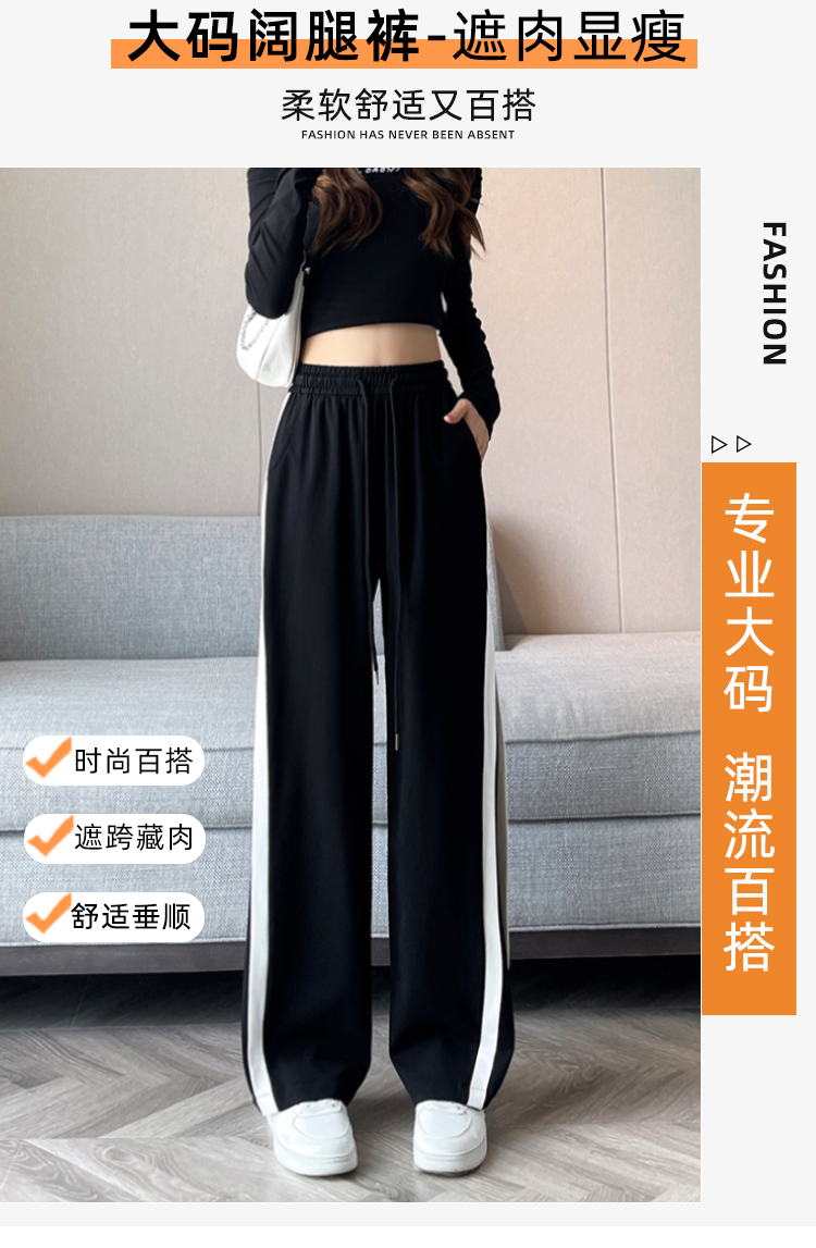 大碼女褲200斤胖mm春秋窄版濶腿褲子加肥加大寬松顯瘦高腰休閒褲