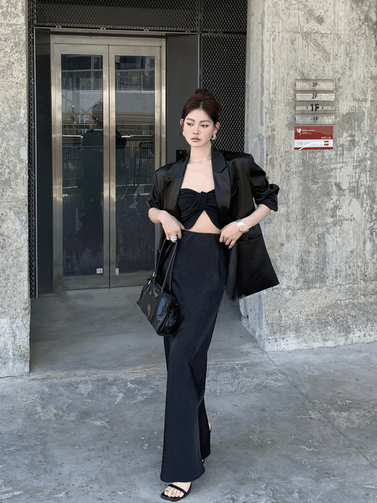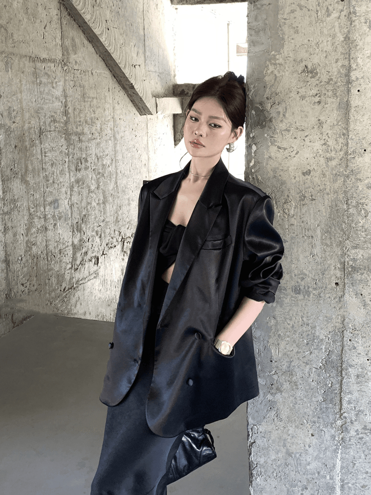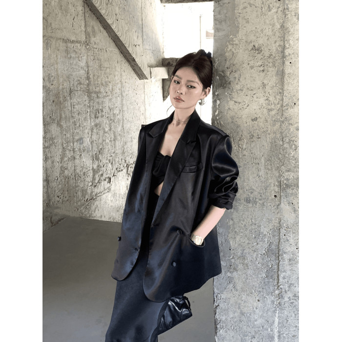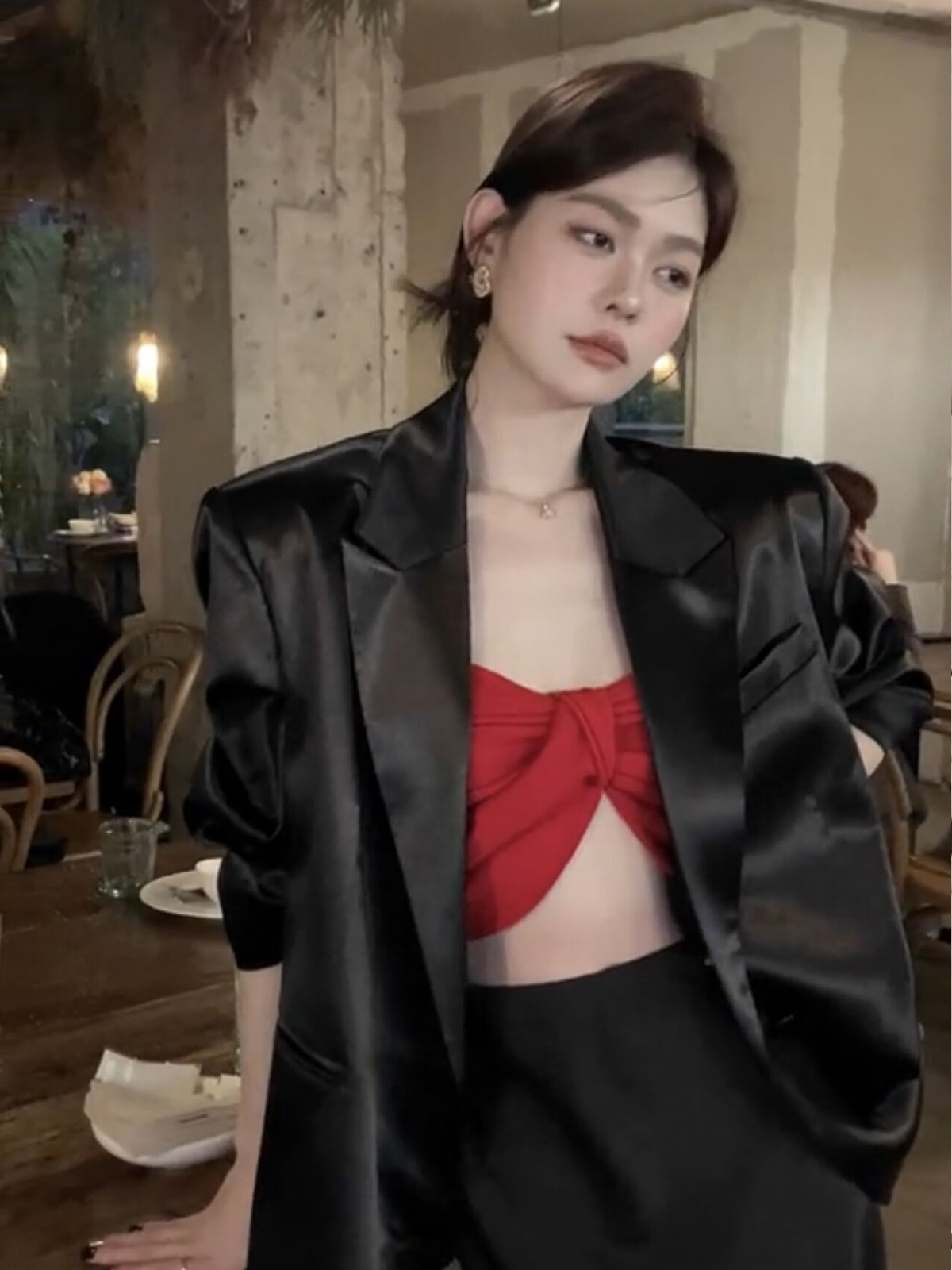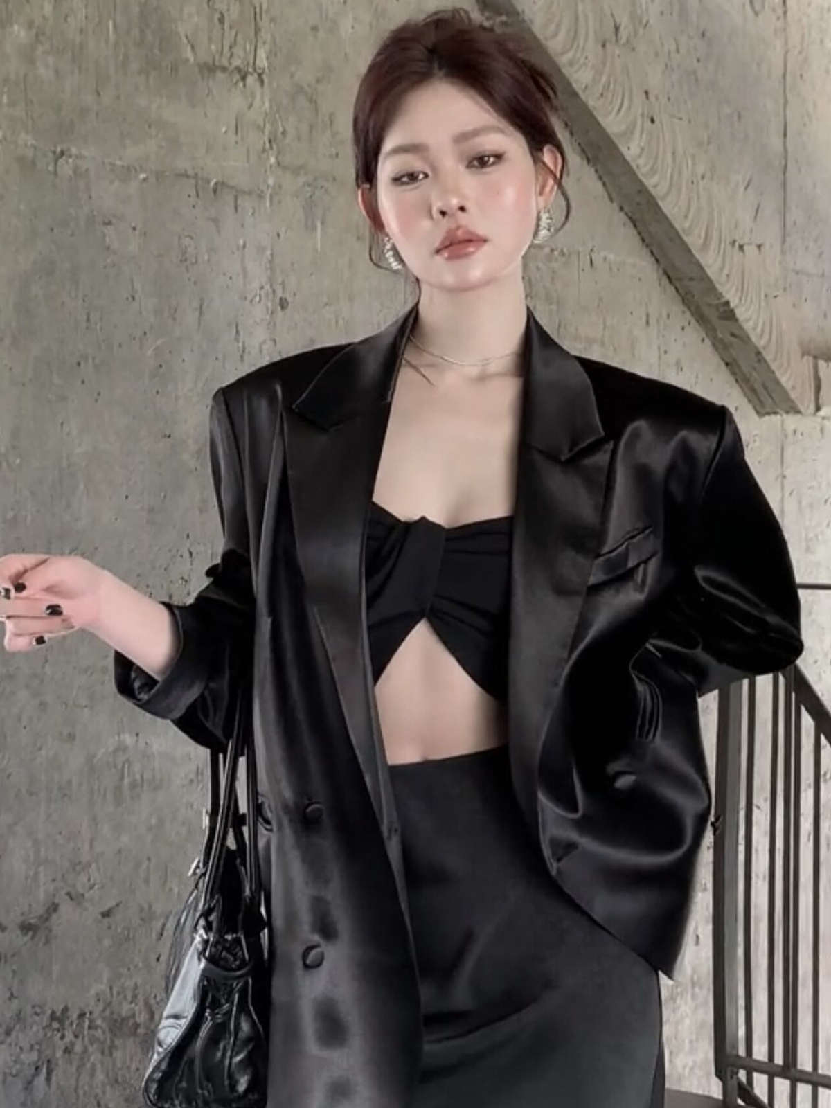 黑色高級綢緞小西裝外套女2025新款西服氣質名媛高級感超好看休閒