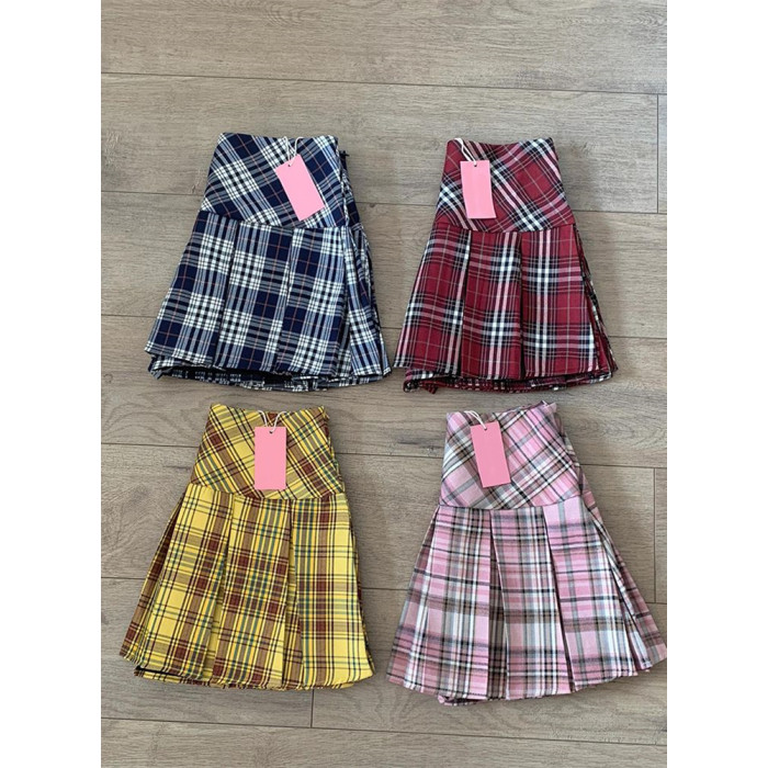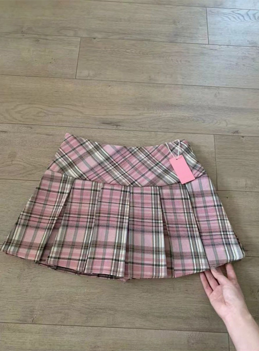 粉色格子半身裙百褶裙女夏季新款高腰顯瘦學院風防走光jk短裙ins