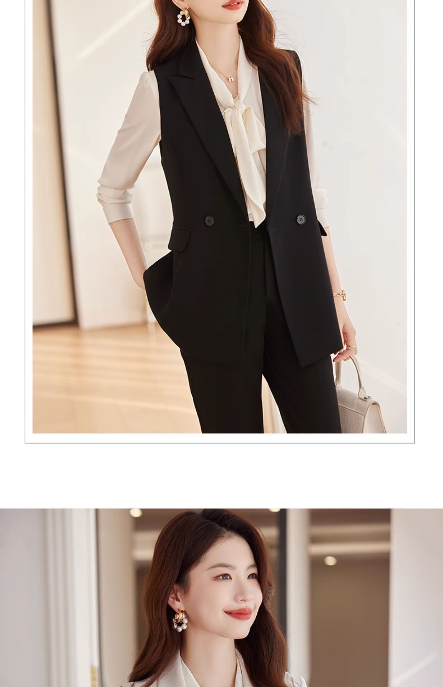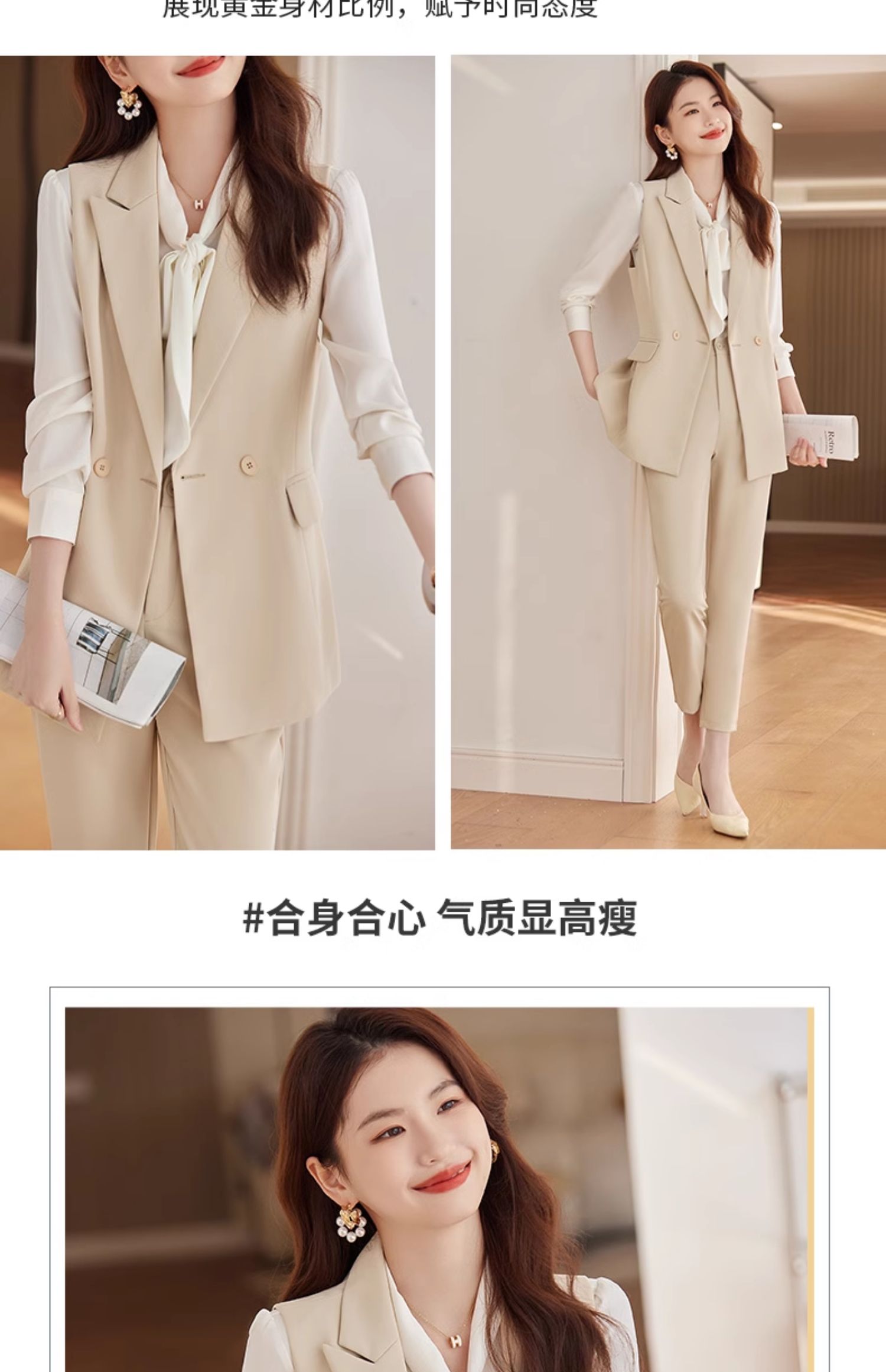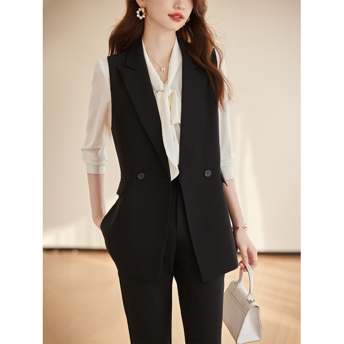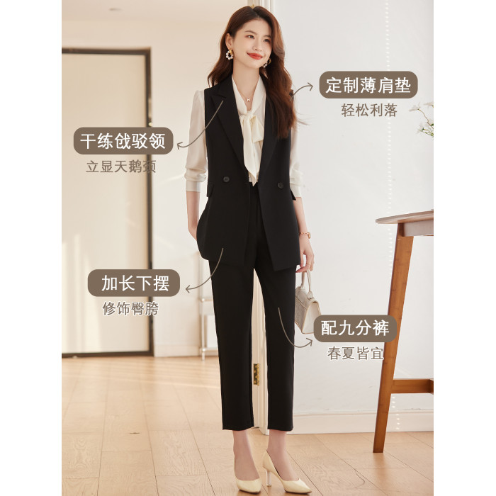 西裝馬甲女套裝2025新款春秋通勤女裝高級感黑色背心職業馬夾外套