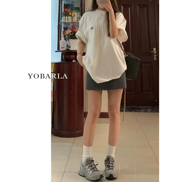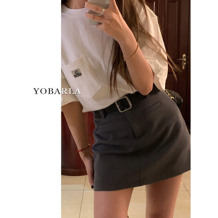 深灰色西裝短裙女高腰夏季新款大碼胖mm顯瘦小個子a字包臀半身裙