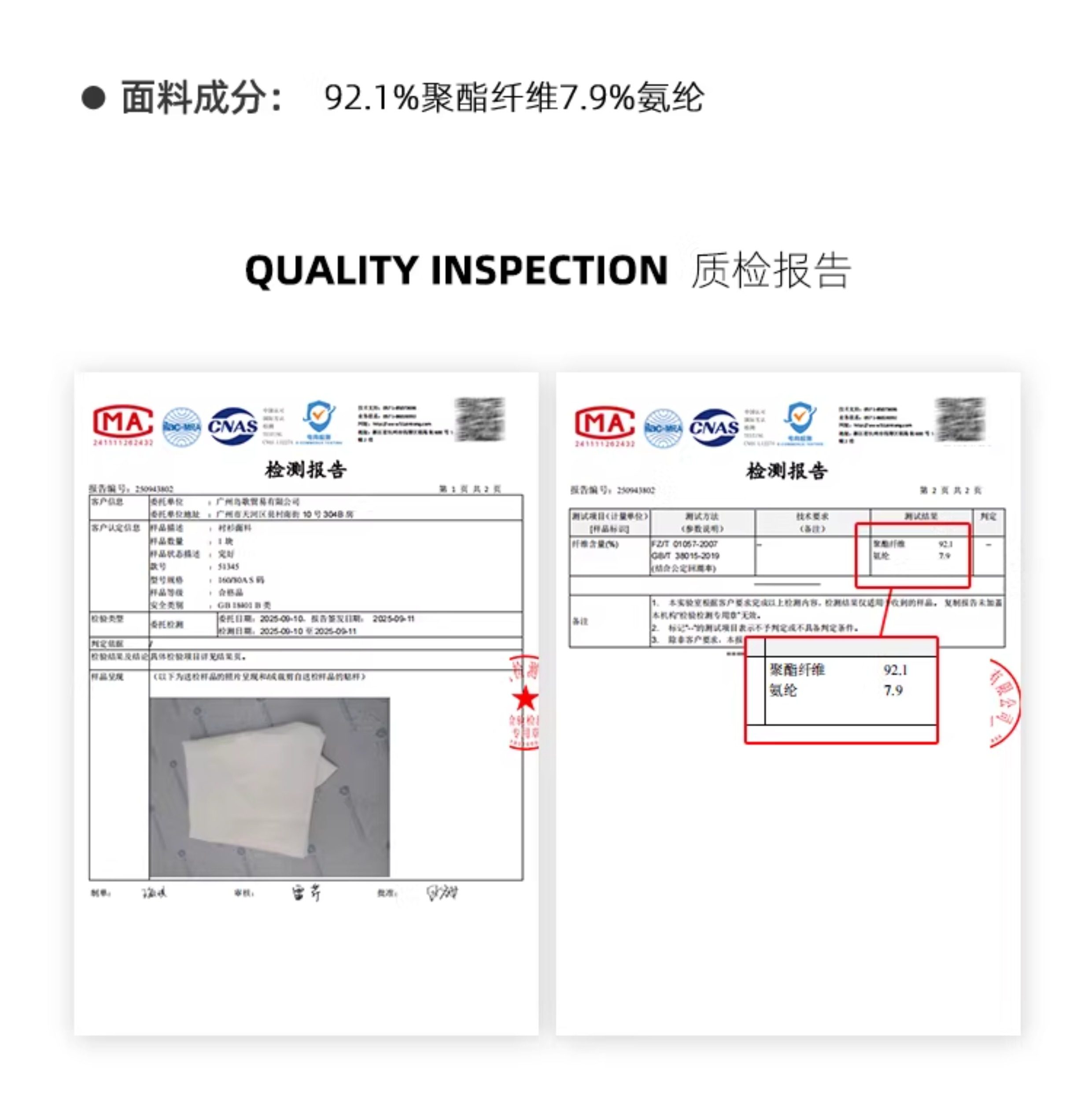 | 材質成分 | 聚酯纖維92.1% 聚氨酯彈性纖維(氨綸)7.9% |