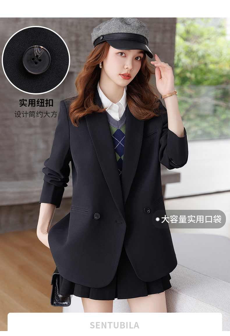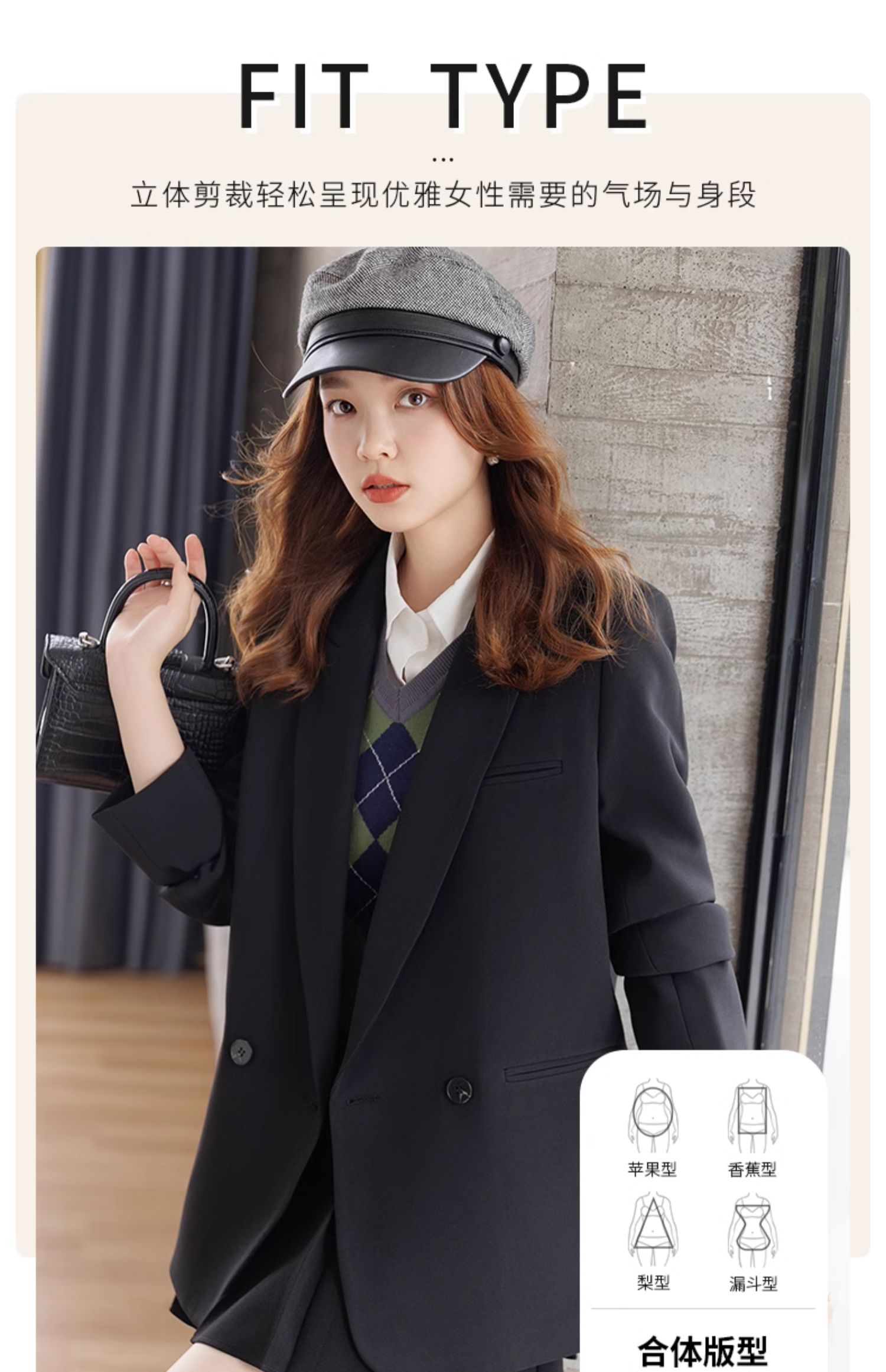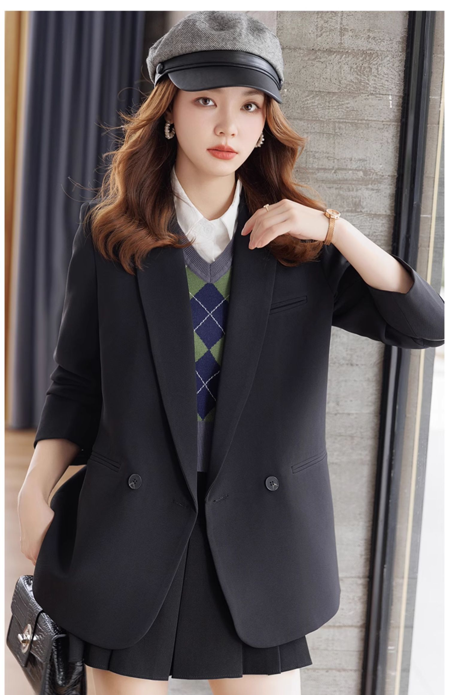 2025新款春秋黑色西裝外套女高級感寬松休閒小個子西服秋冬棉加厚