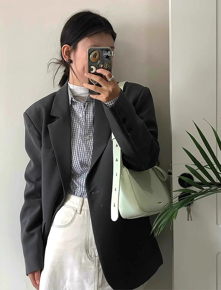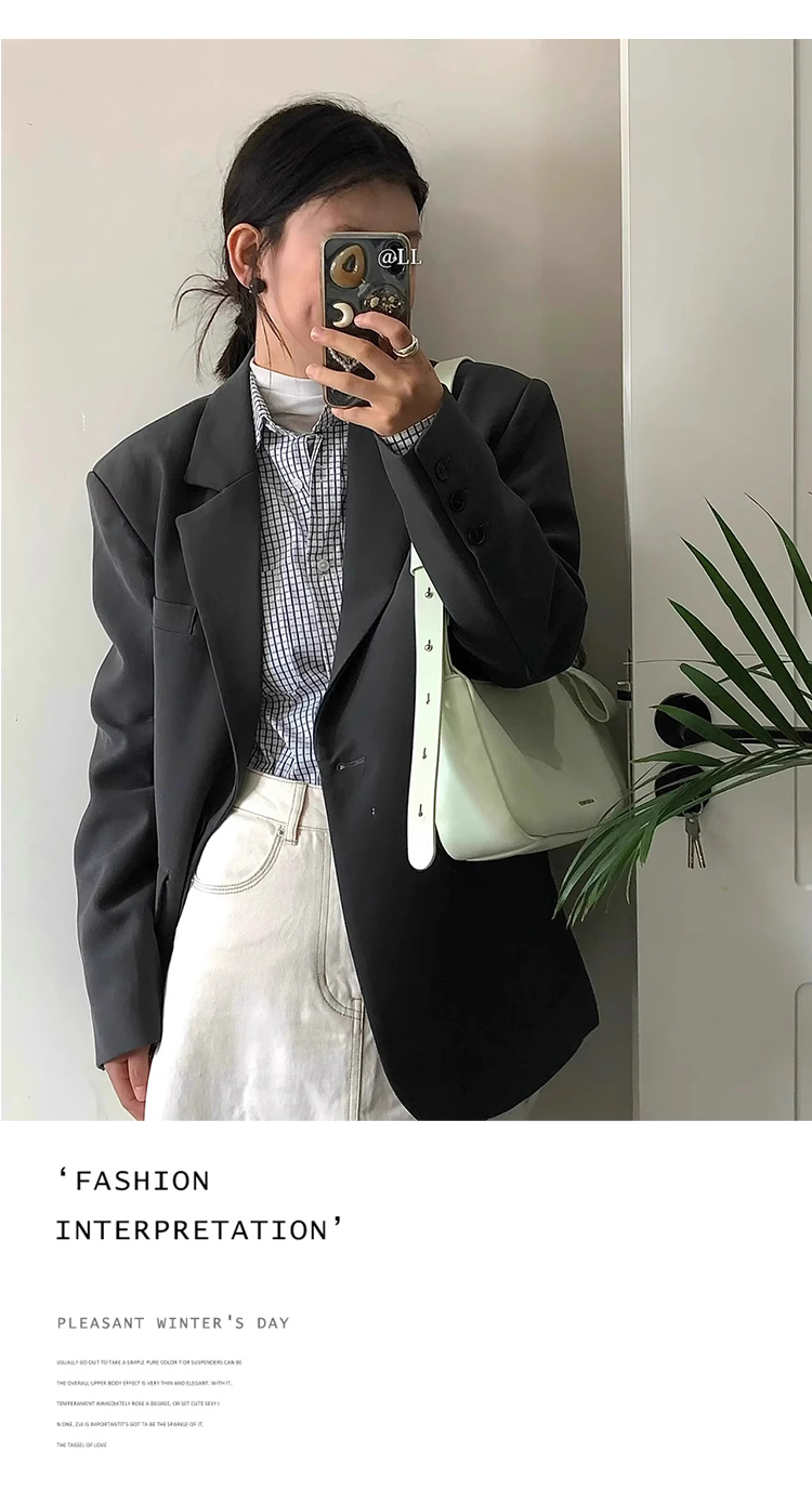 高級感灰色西裝外套女春秋2025新款韓系寬松休閒氣質小西服早秋裝