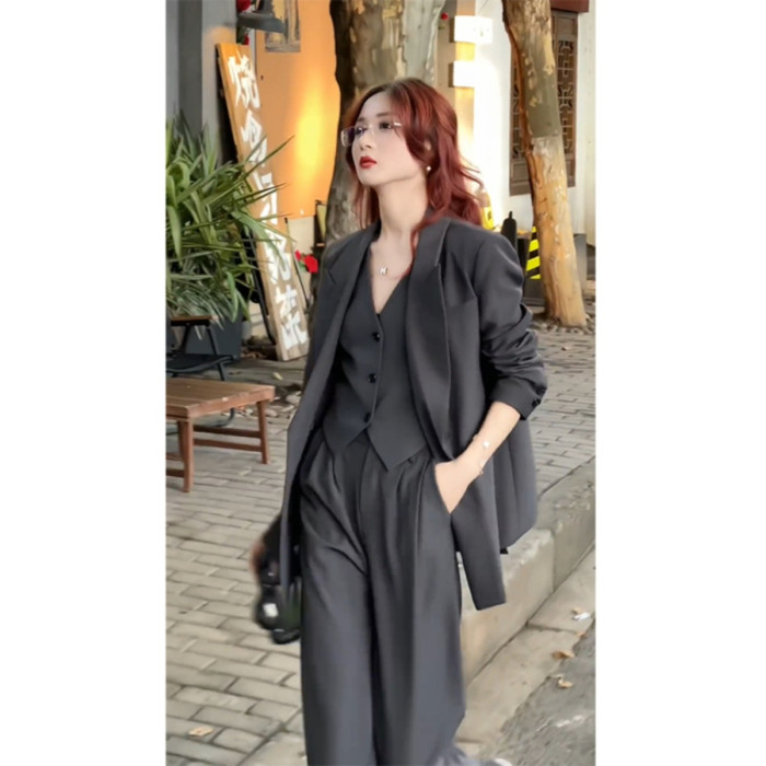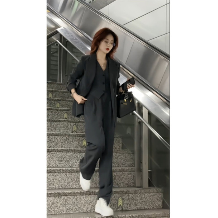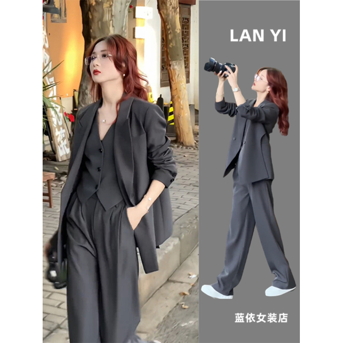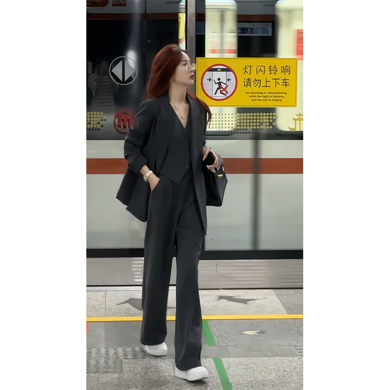 今年流行時尚網紅炸街套裝爆款高級感職業西裝外套馬甲西褲三件套