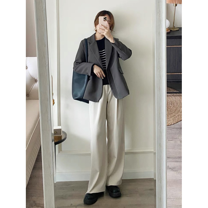 灰色休閒小西裝外套女2025早秋設計感小個子韓系黑西服氣質高級感