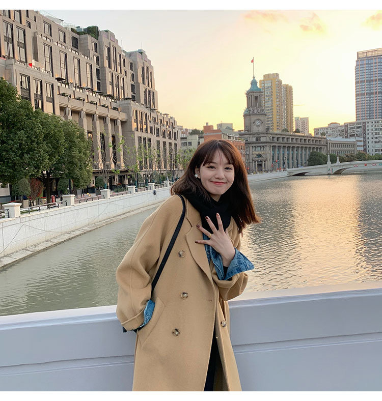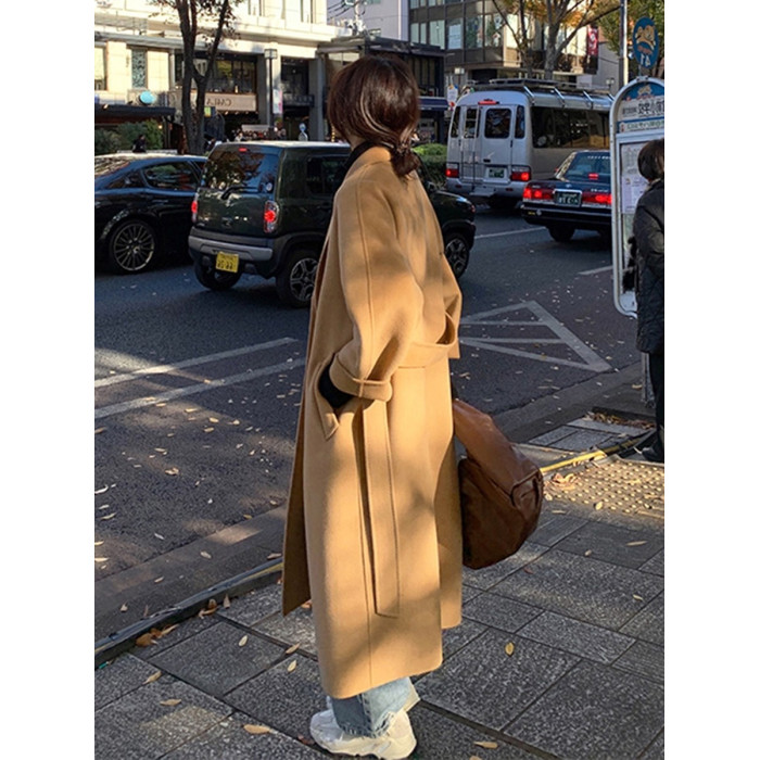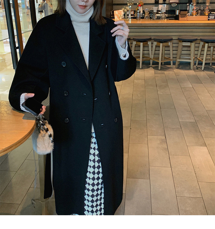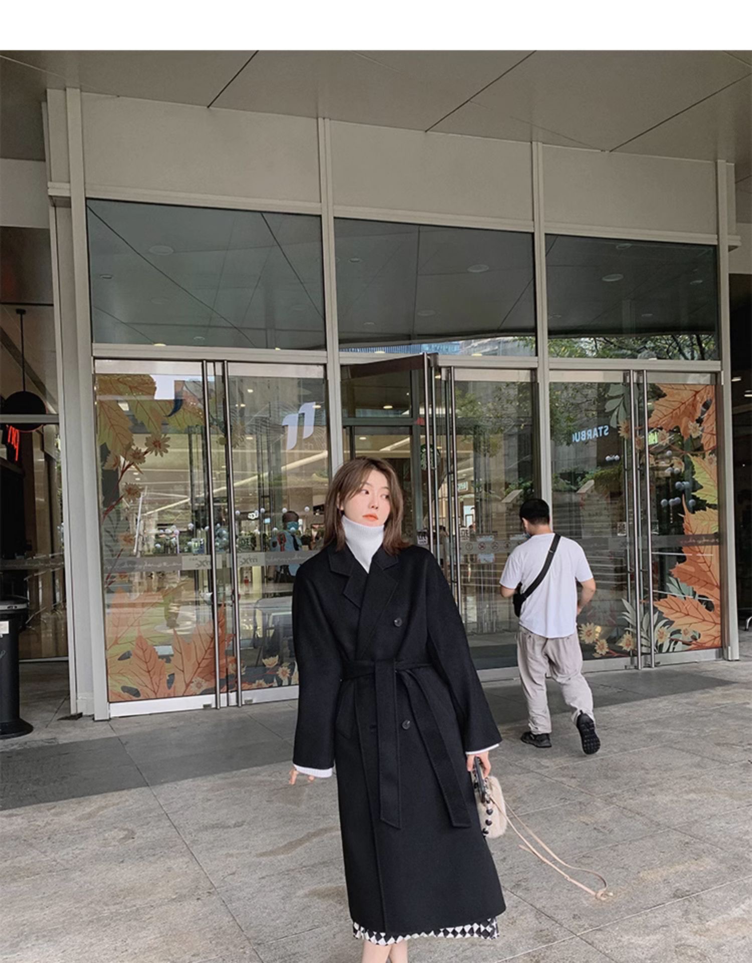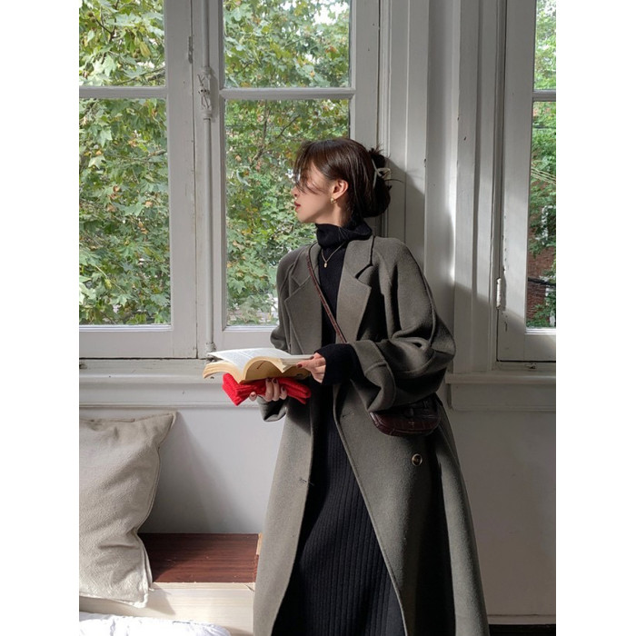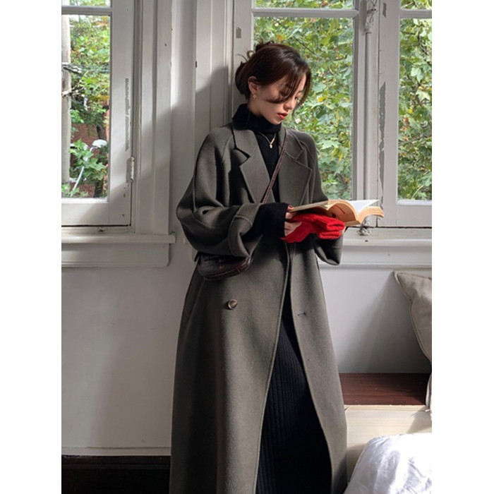 灰色雙面羊絨大衣女中長款2025秋冬新款高級加厚羽絨內膽毛呢外套