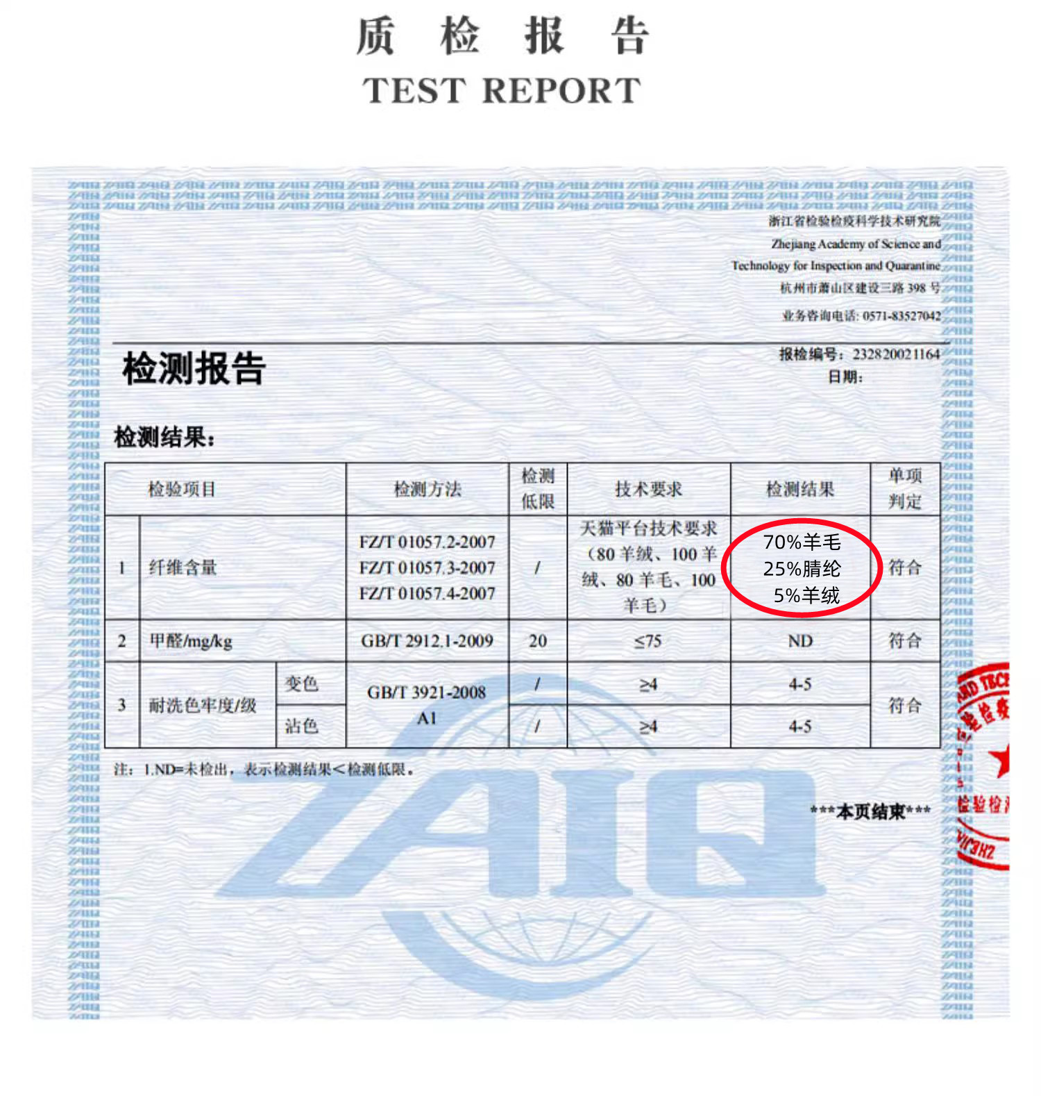 材質成分 羊毛70% 聚丙烯腈纖維(腈綸)25% 山羊羢(羊羢)5%