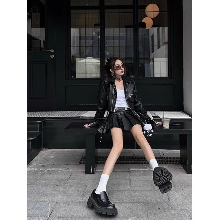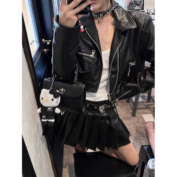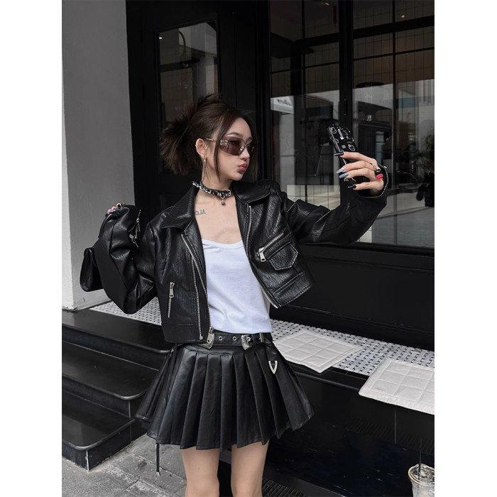 復古機車風皮衣女2025秋季新款設計感超好看美式pu夾克短款小外套