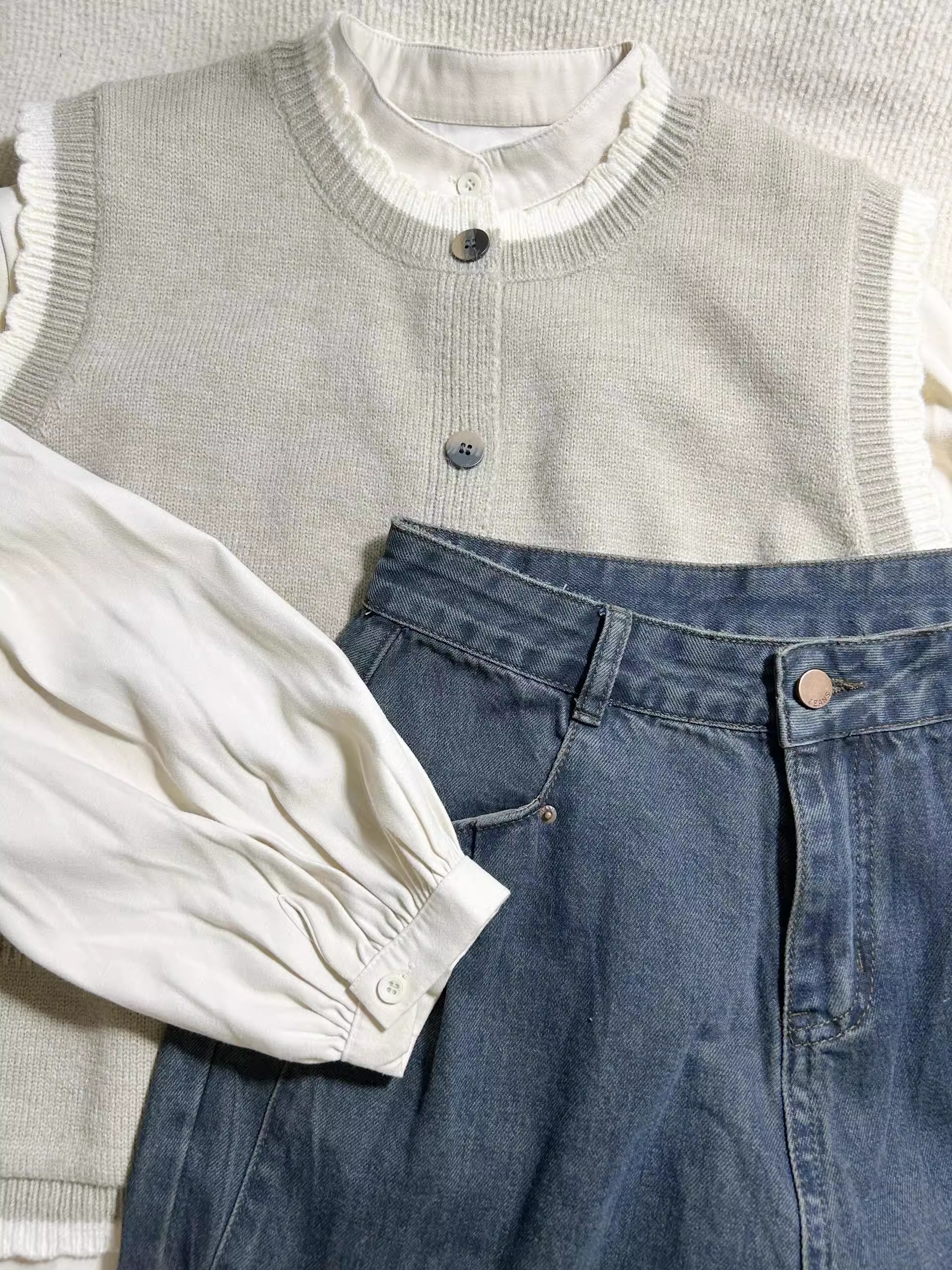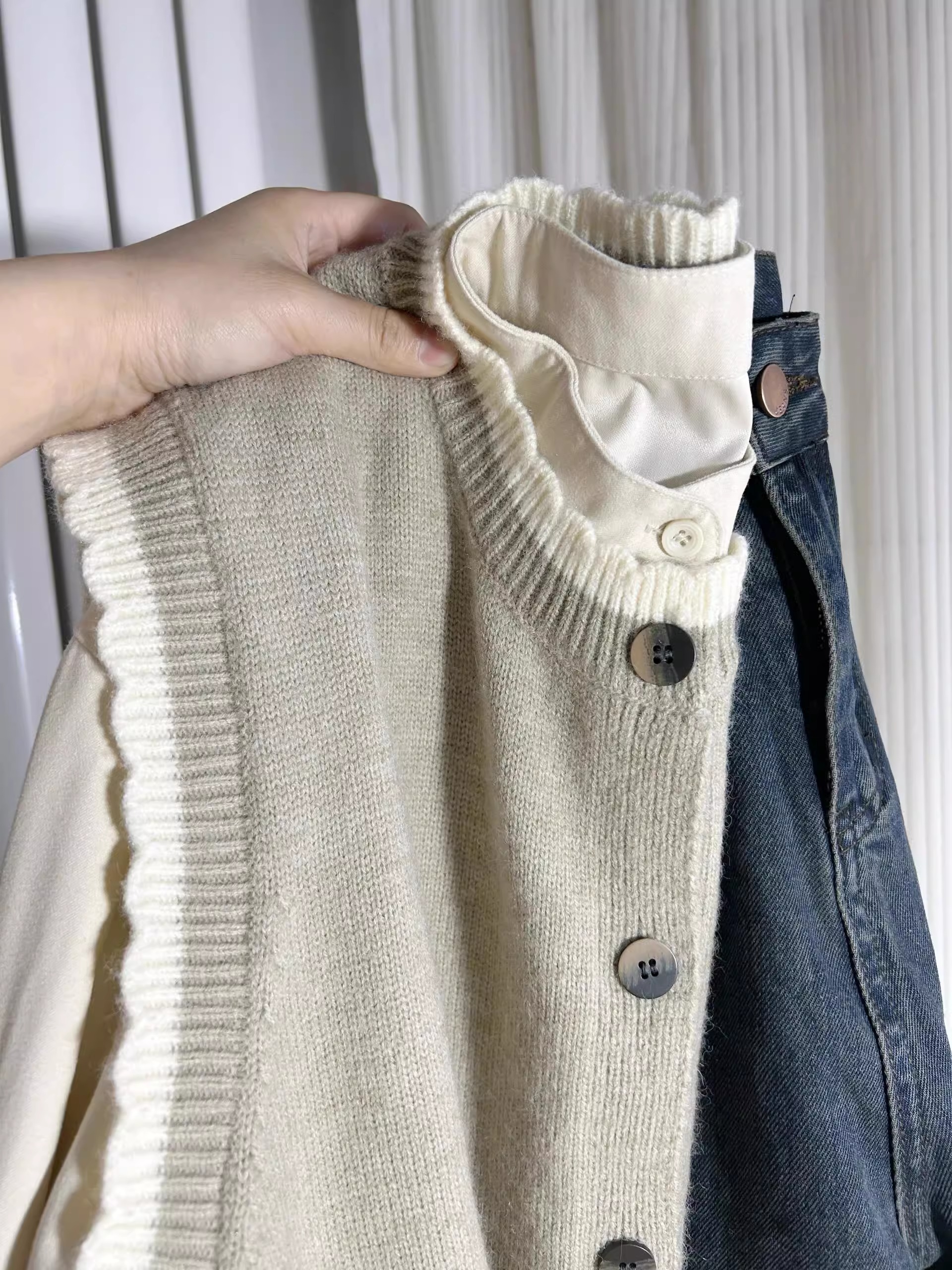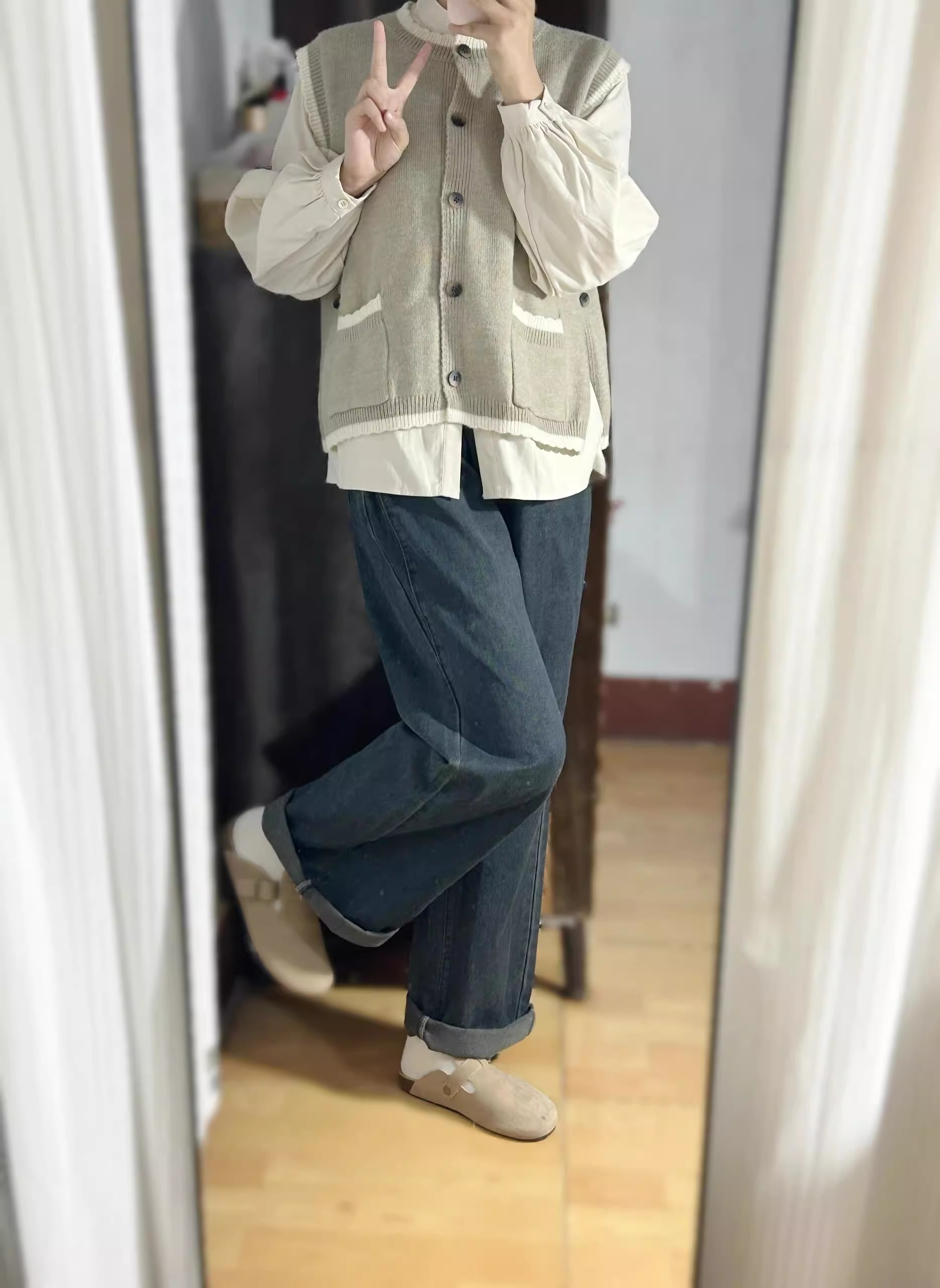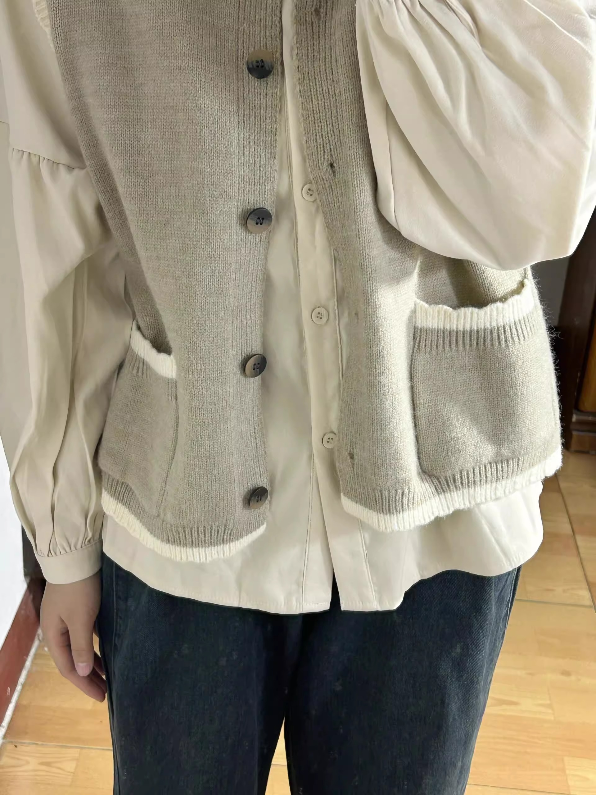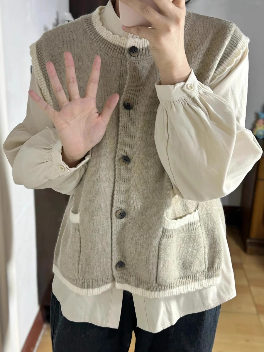 慵懶復古針織上衣女早秋外搭小馬甲背心寬松無袖秋冬曡穿毛衣外套