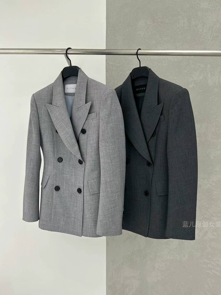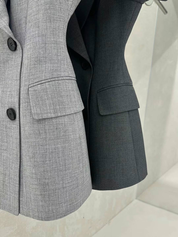 灰色西裝外套女2025春新款韓版高級感沙漏收腰小個子休閒氣質西服