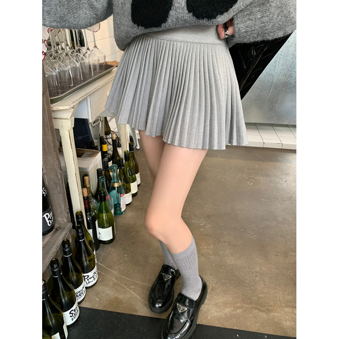 陳大鈺 a字毛呢短裙女秋冬小個子氣質灰色半身裙高腰顯瘦百褶裙子