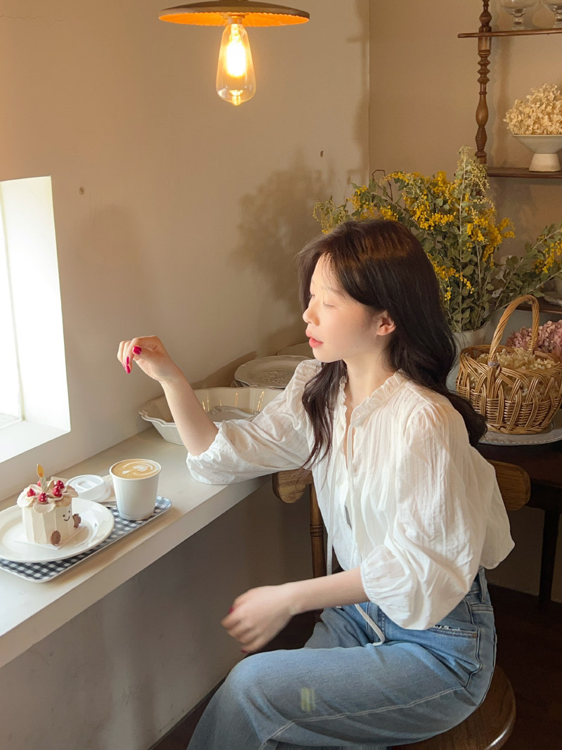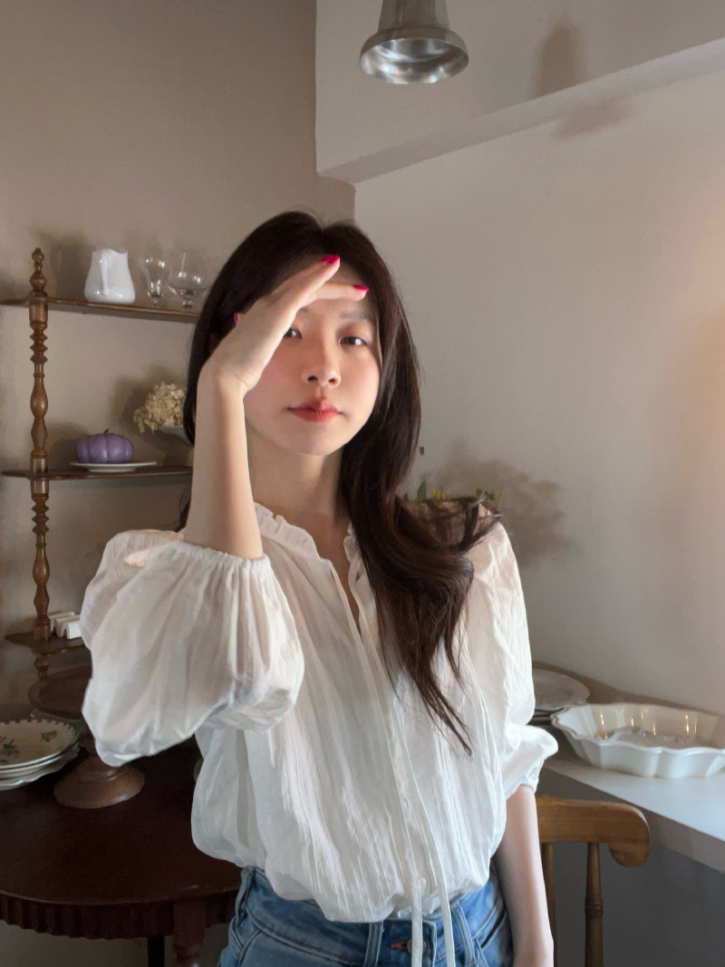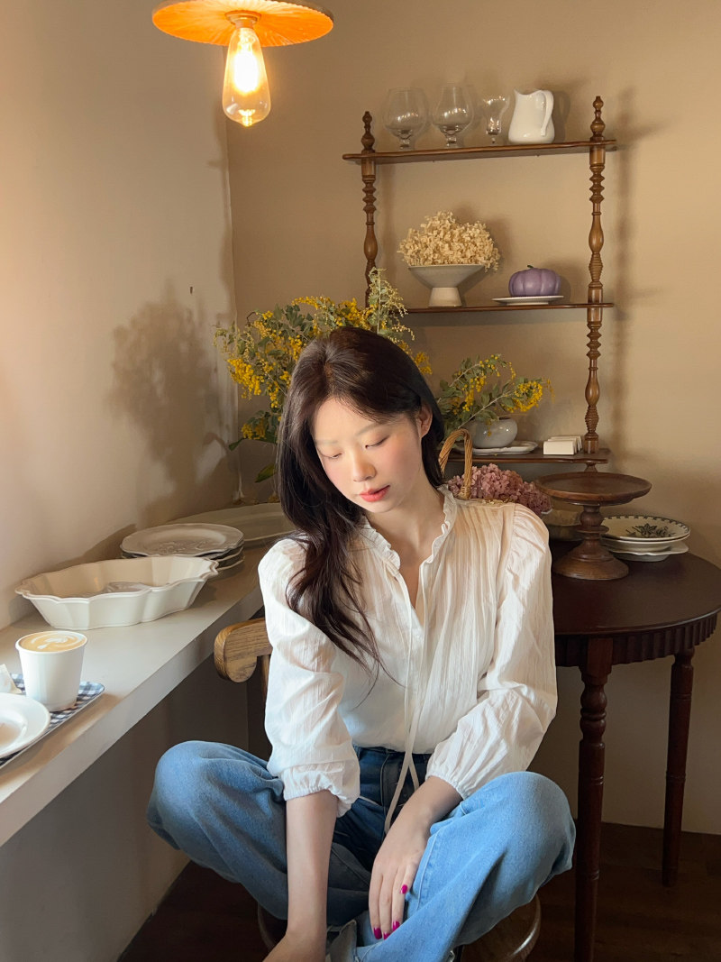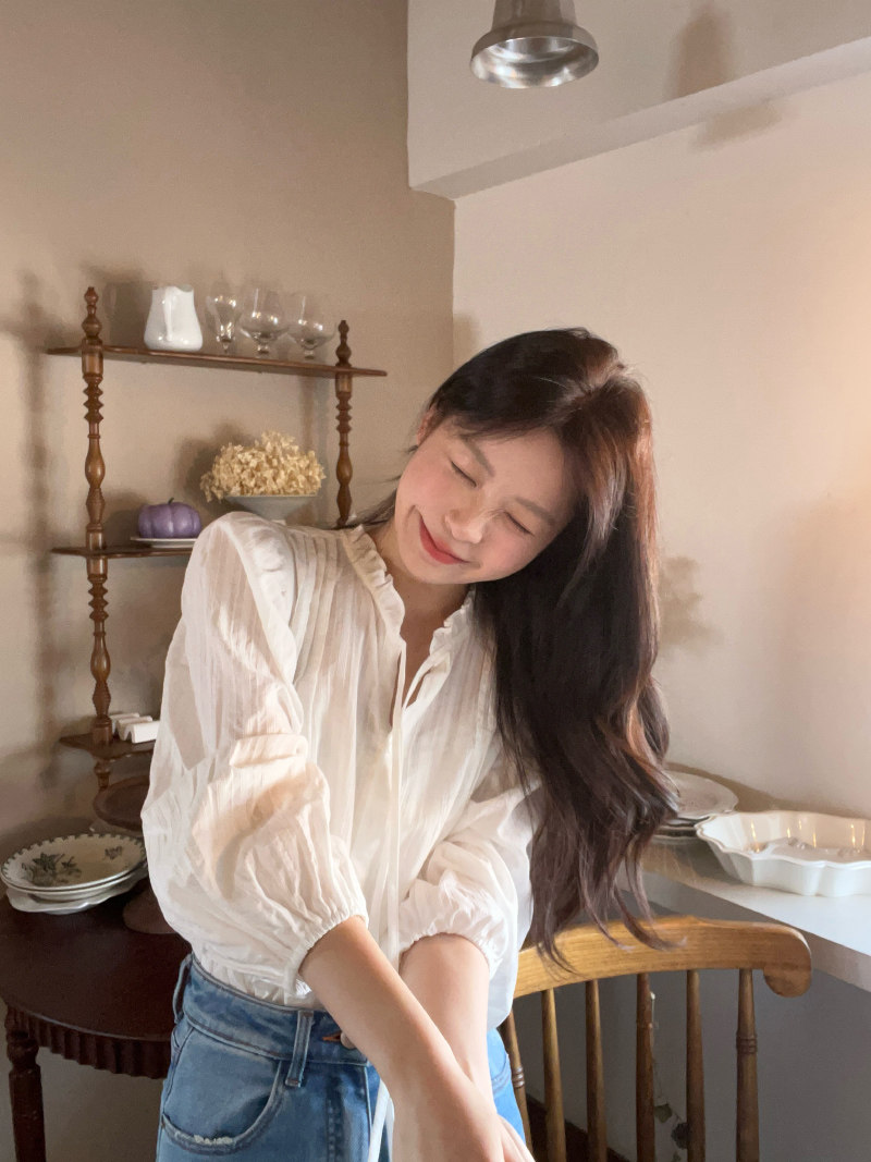 PPHOME釣系拿捏~溫柔木耳邊系帶白色襯衫女韓系簡約別致氣質上衣