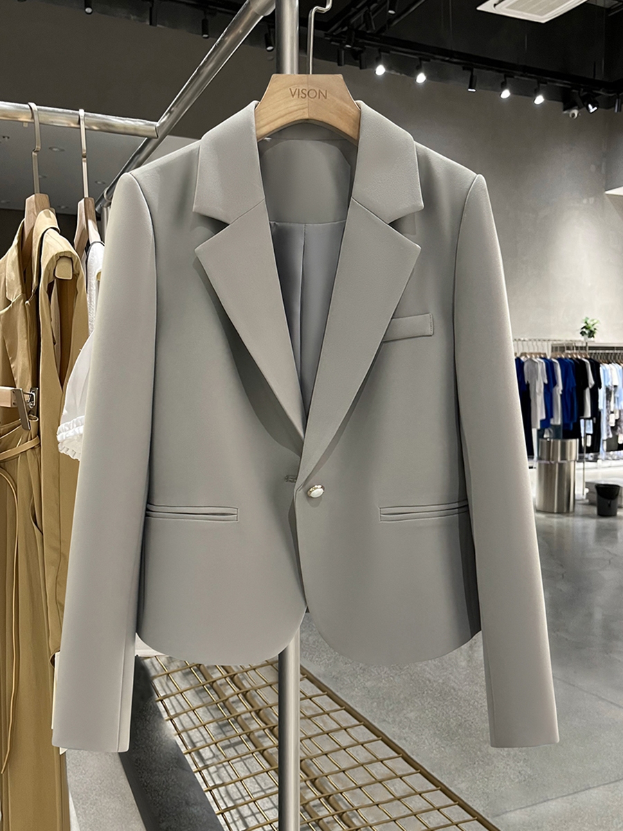 高級灰色通勤時尚西裝外套女2025新款春秋季高級感短款正裝西服潮