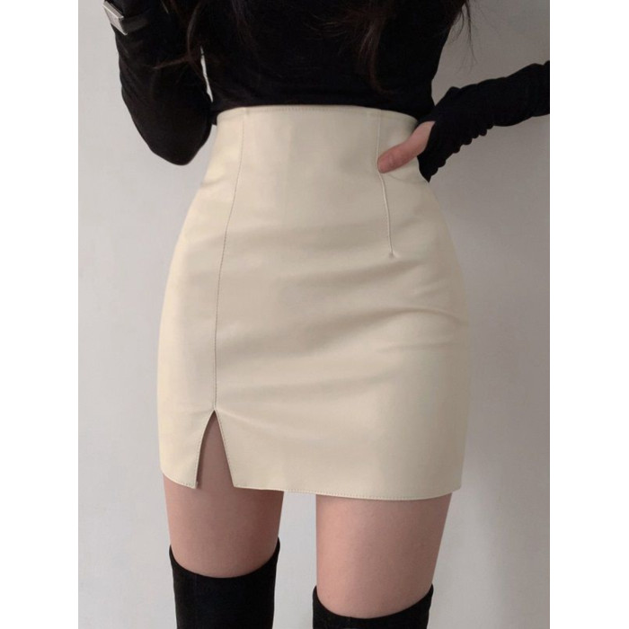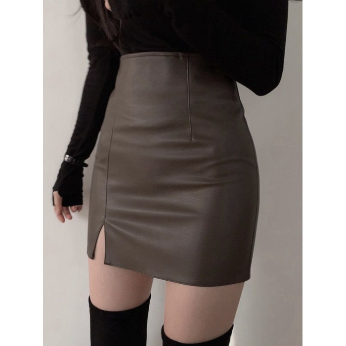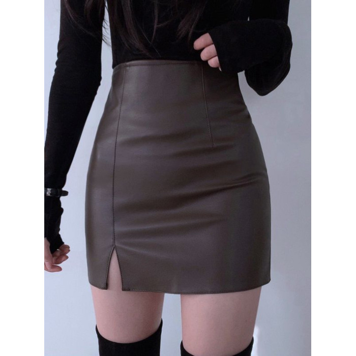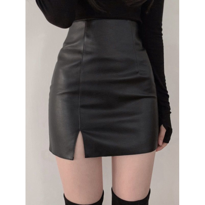 黑色開叉小皮裙半身裙女秋冬新款緊身高腰包臀顯瘦一步裙PU皮短裙