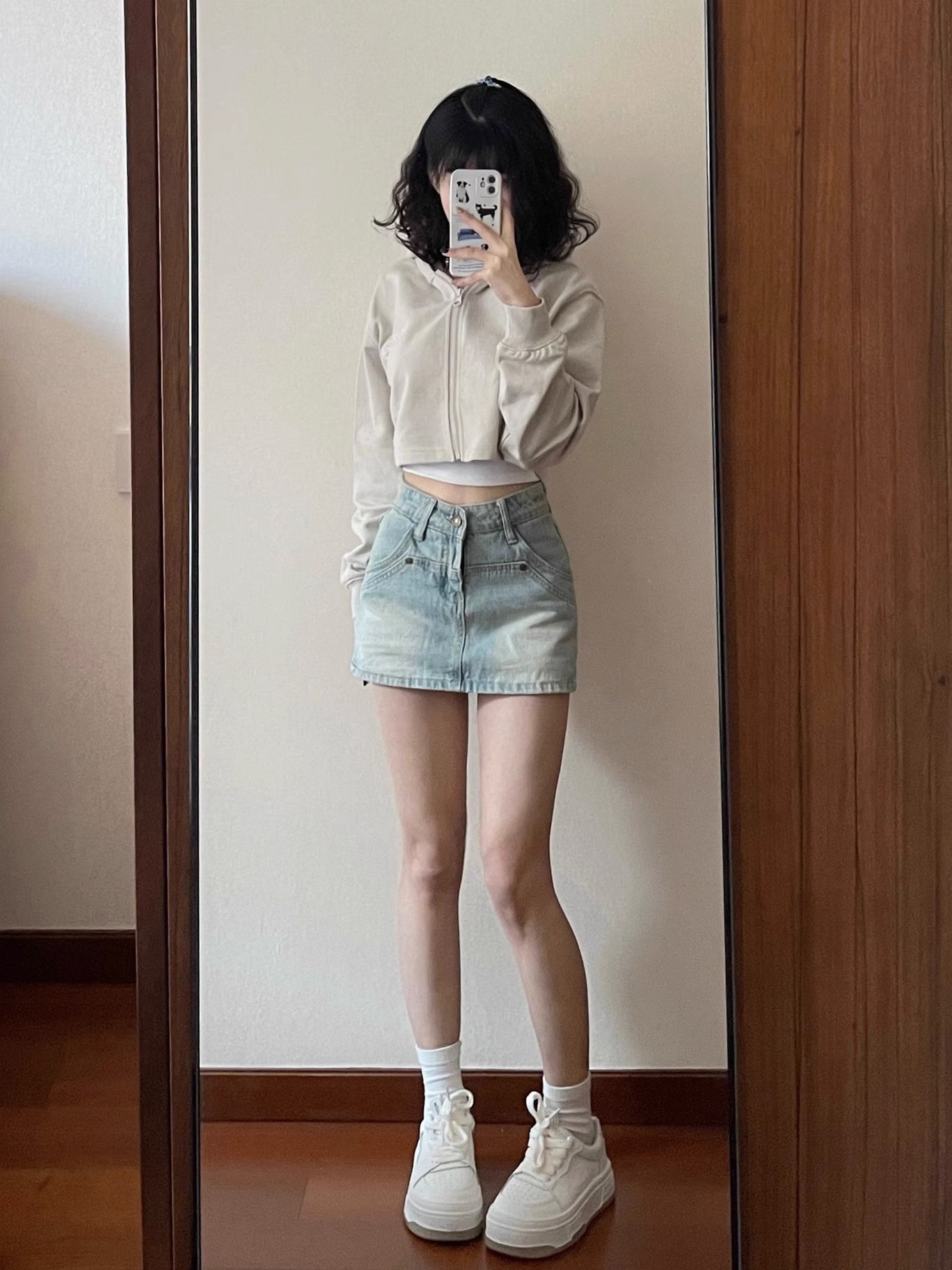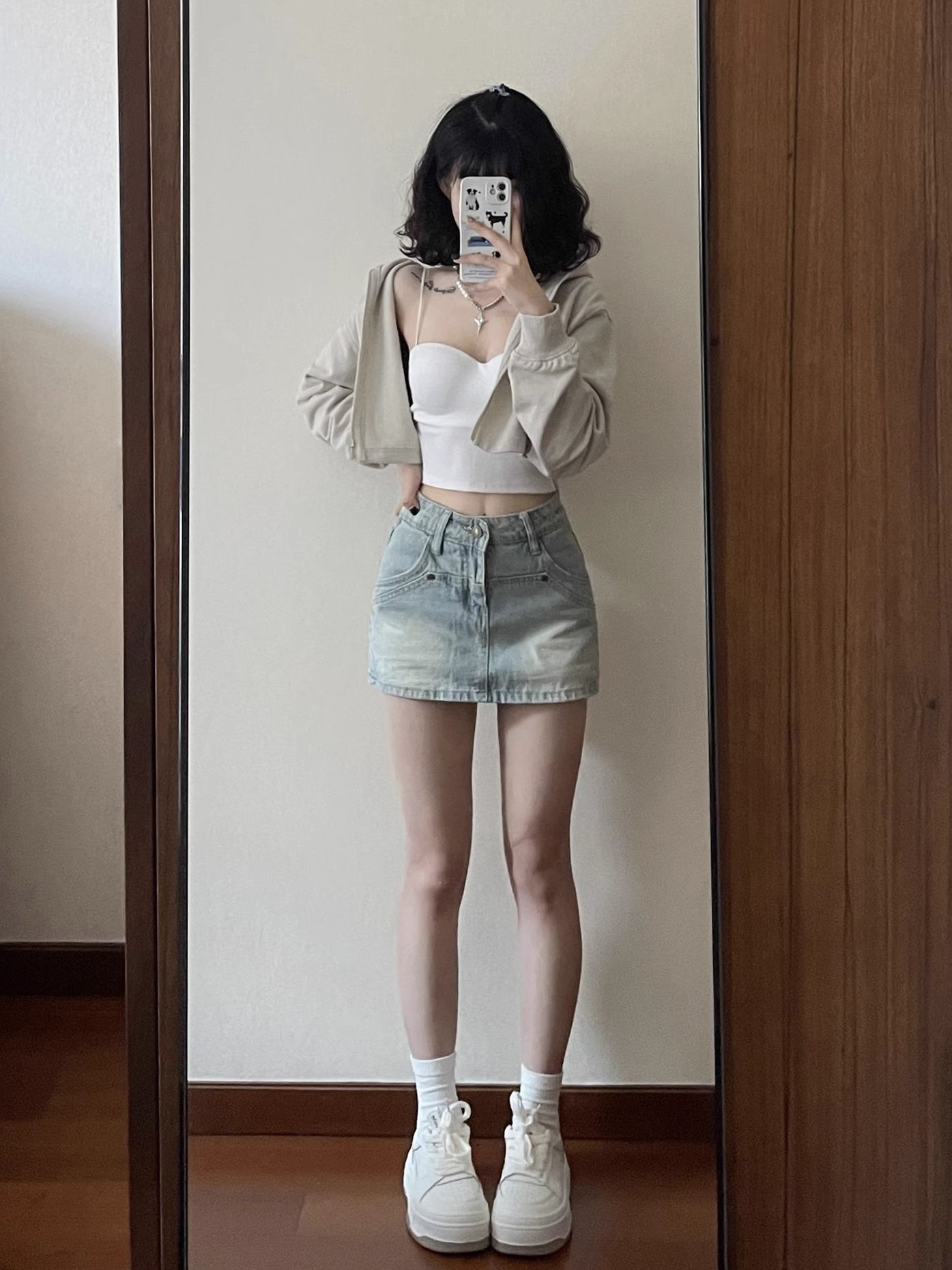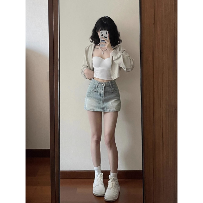 港風復古牛仔半身裙褲女大碼胖mm微胖a字短裙高腰顯瘦包臀裙子夏