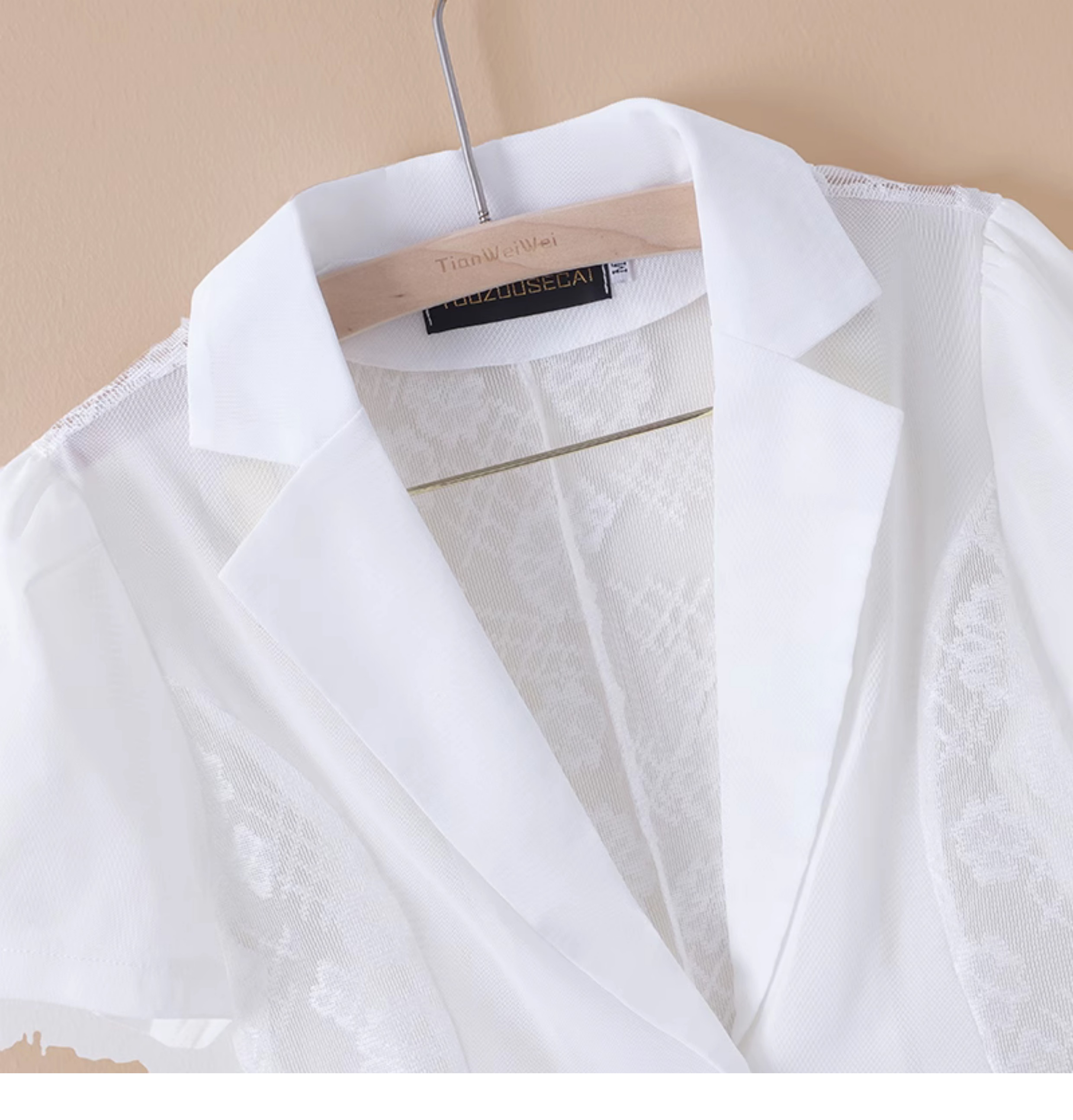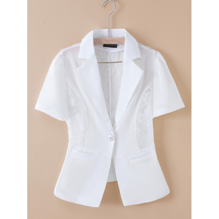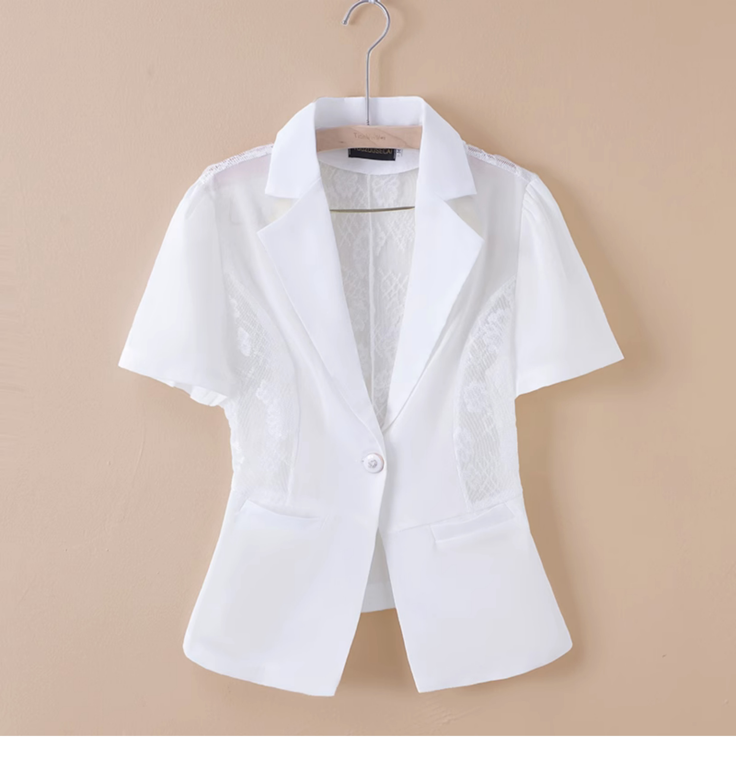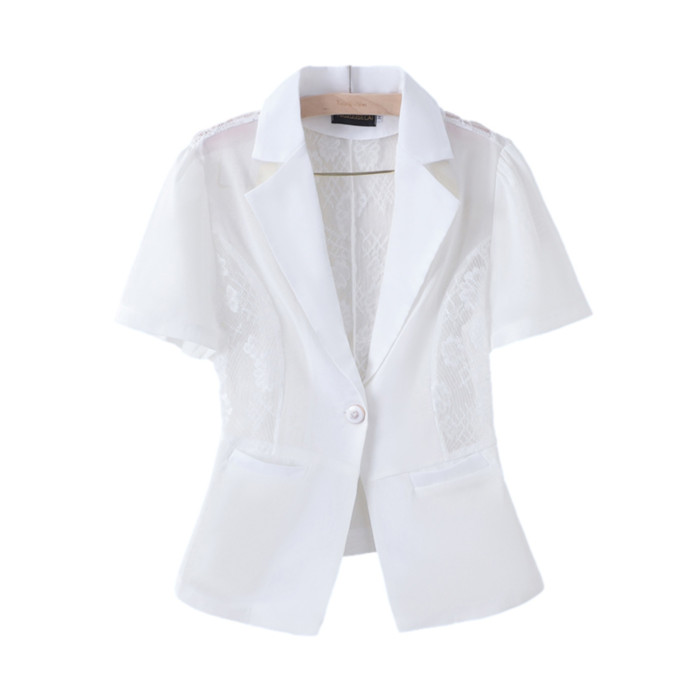 夏季女士修身薄款短袖蕾絲小西裝外套女大碼女裝氣質西服上衣披肩