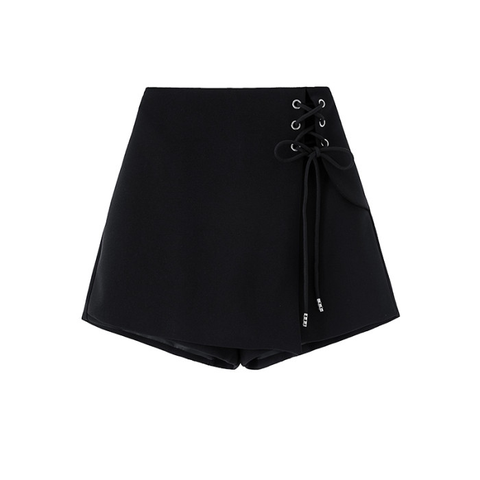 大碼胖妹妹綁帶高腰短褲女春秋新款寬松顯瘦百搭防走光A字半身裙