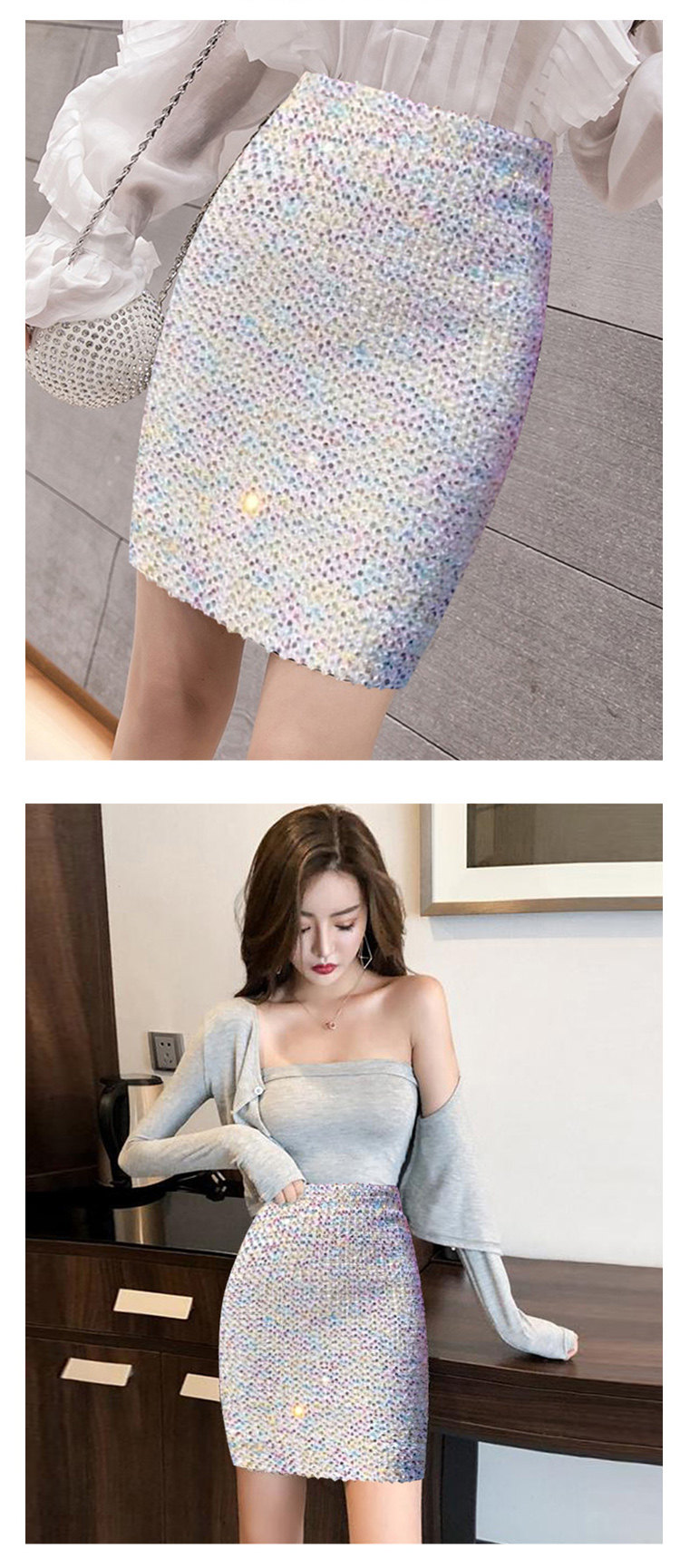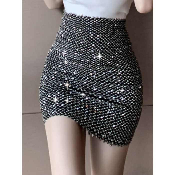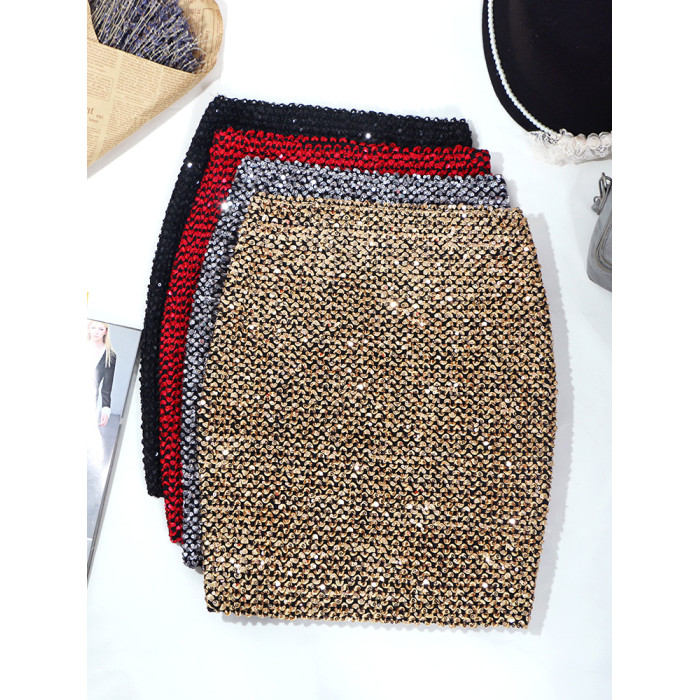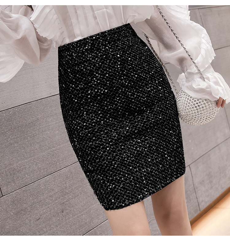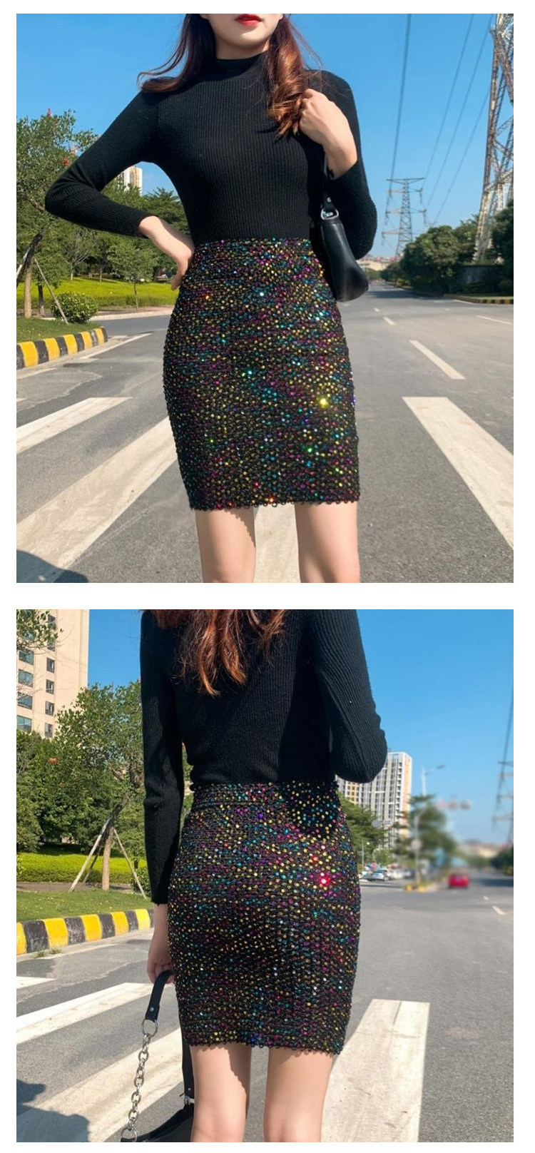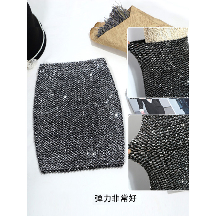 彈力包臀裙女半身裙春秋款高腰修身百搭閃閃短裙包裙亮片裙子冬裙