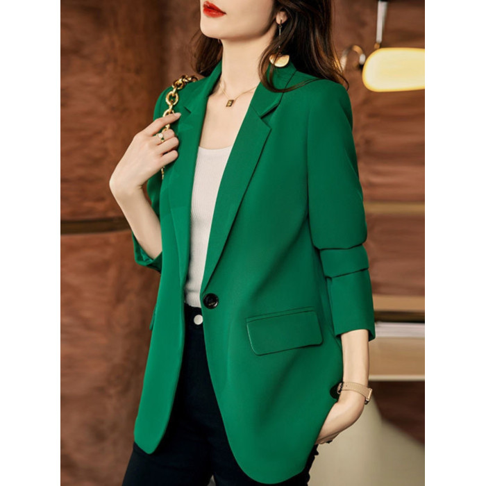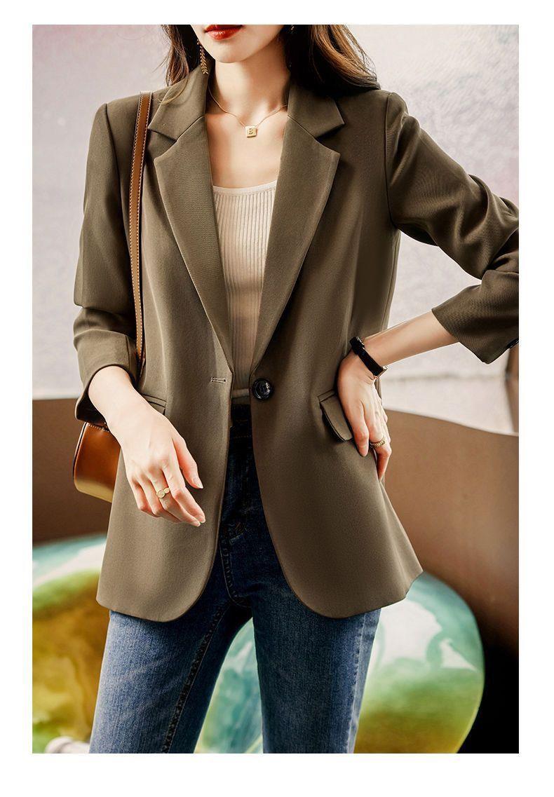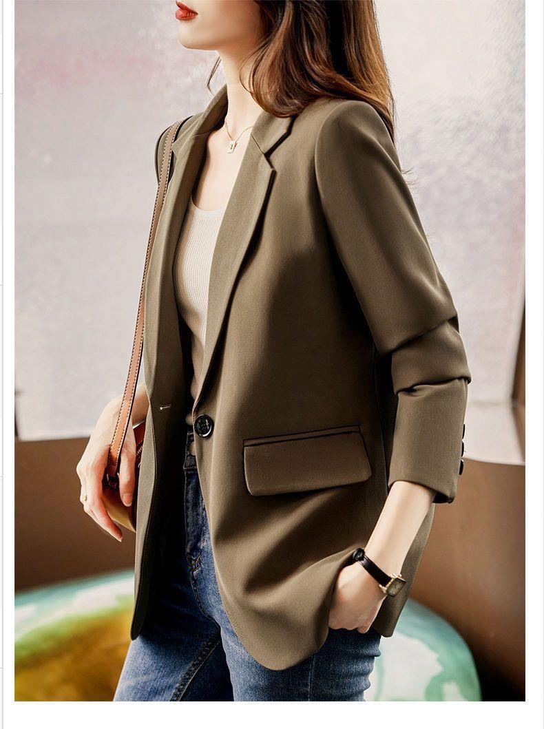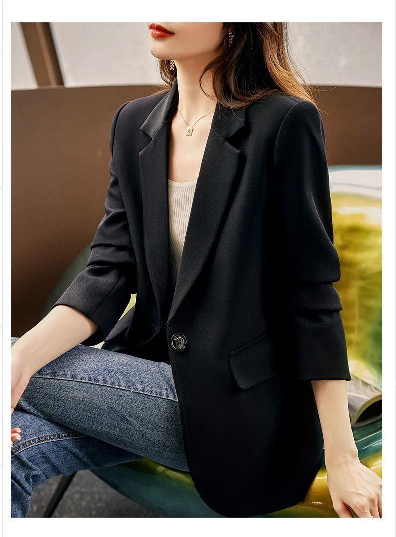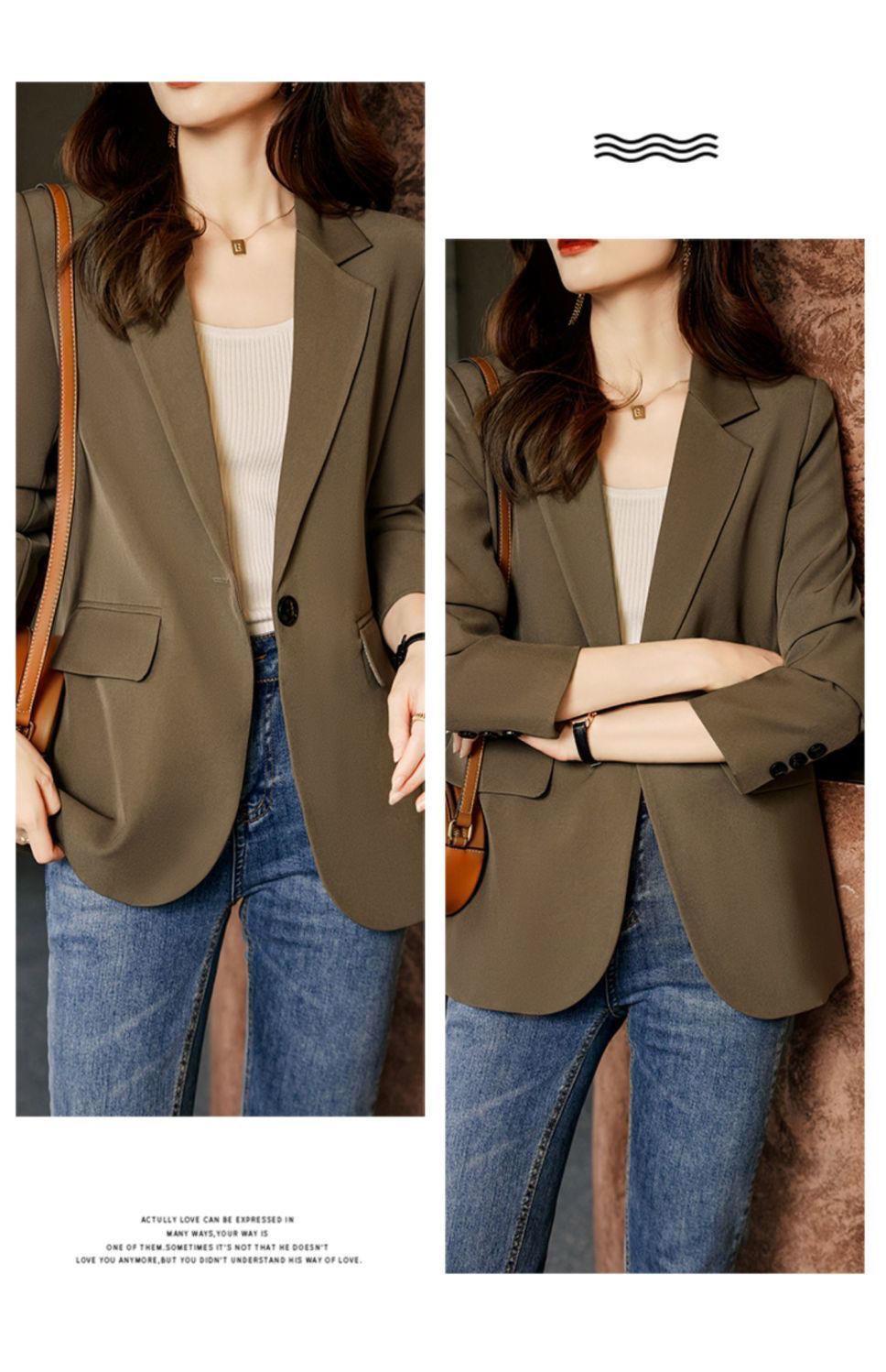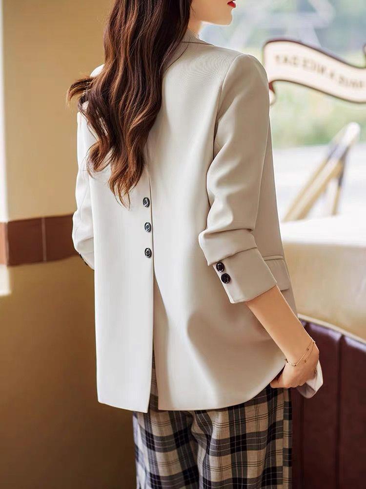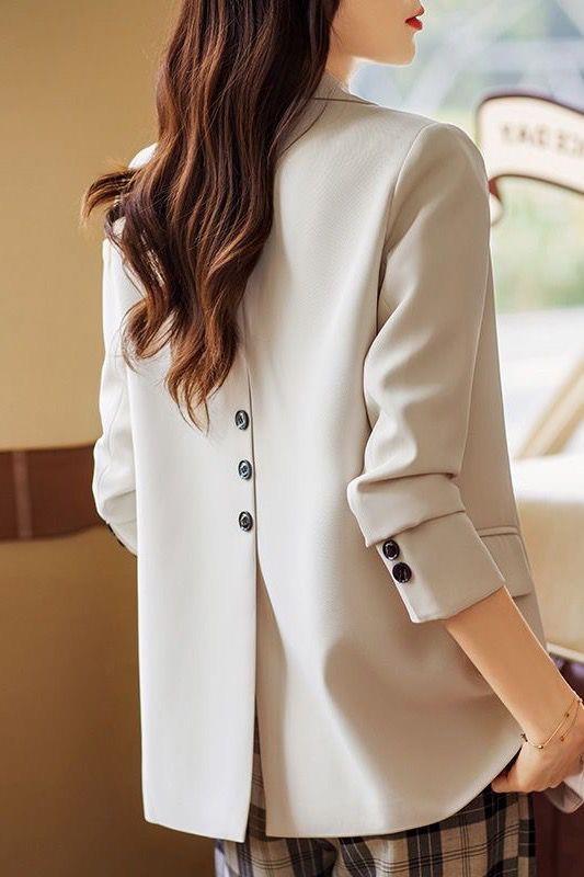 原單後開叉米白色西裝外套女2024春秋新款小個子流行西服上衣