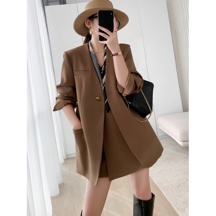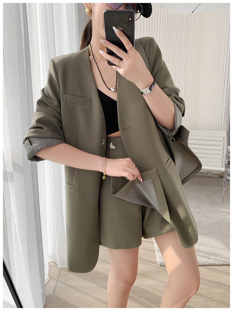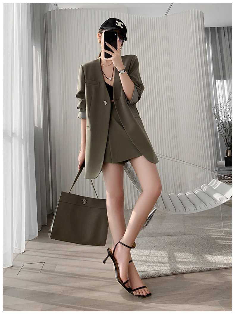 懂點西裝外套女2025秋新款小個子時尚氣質顯瘦短褲裙西服兩件套裝