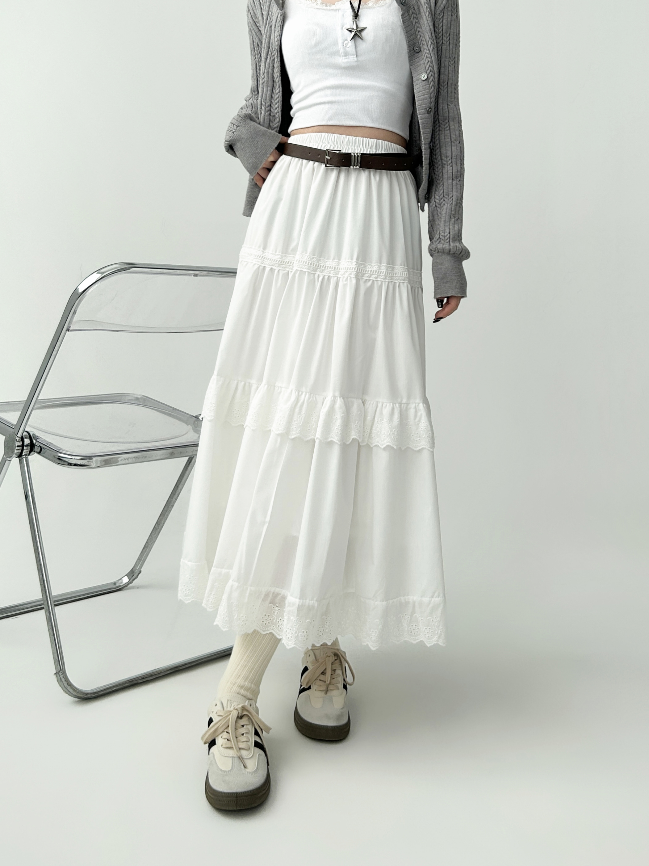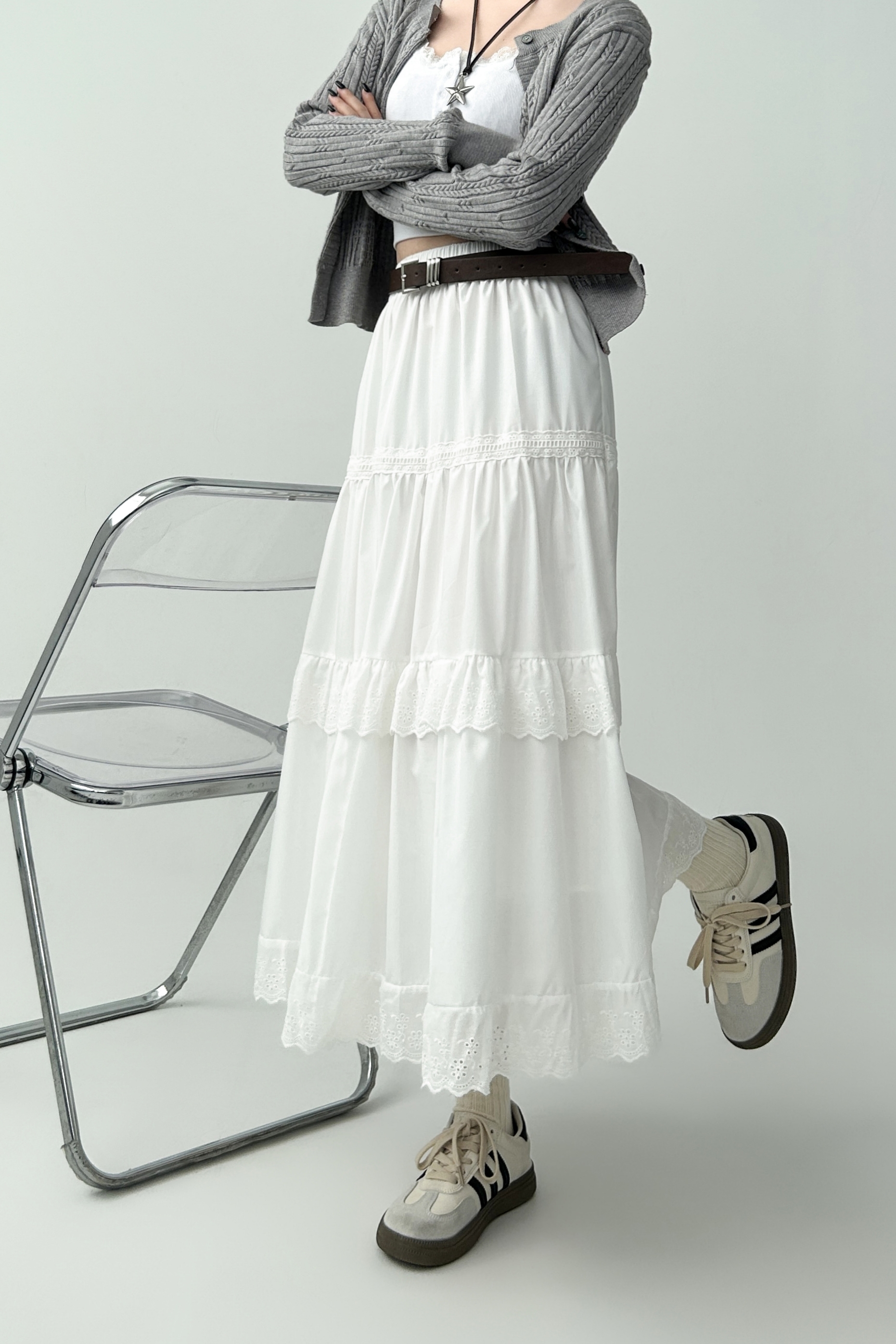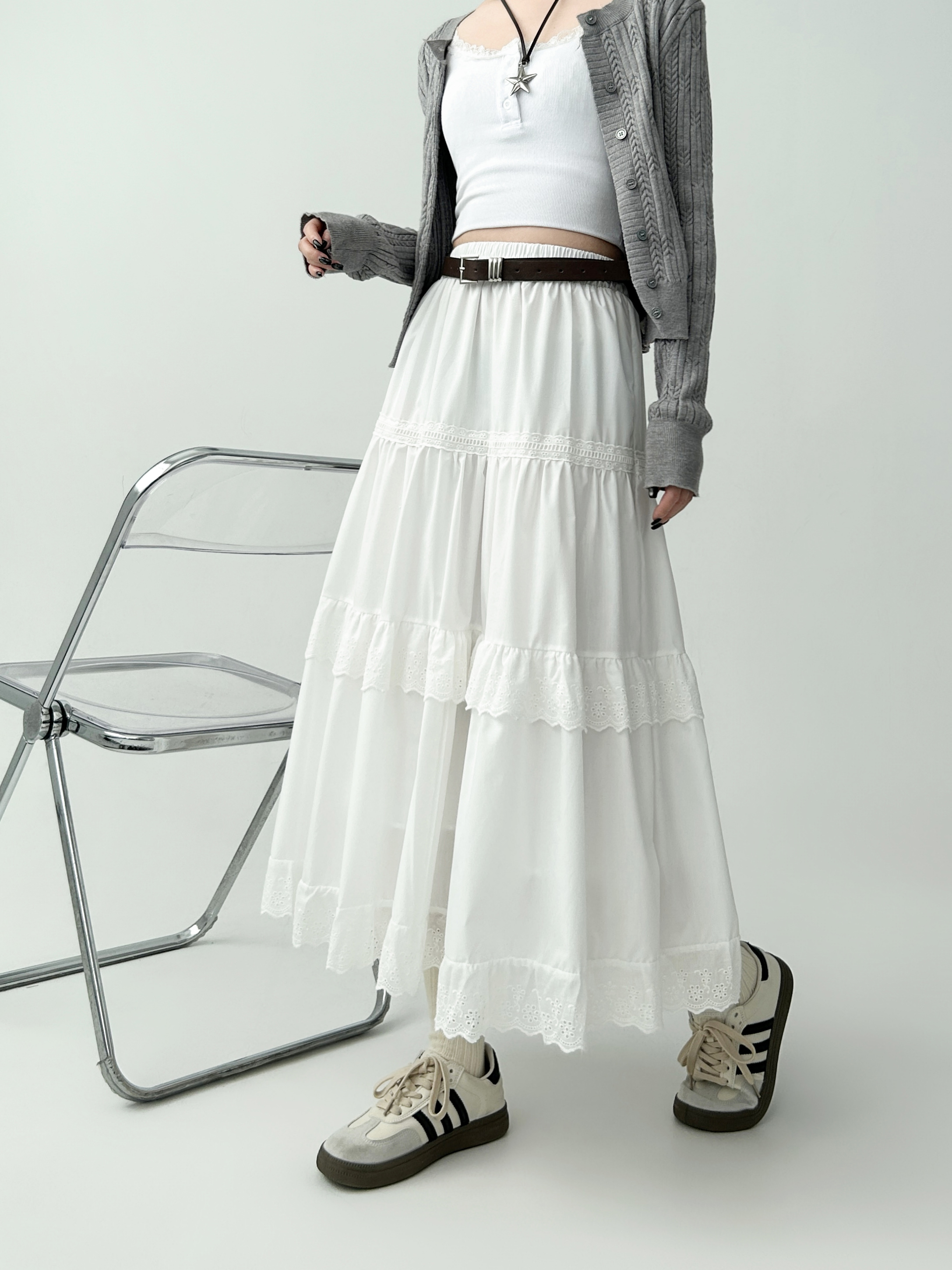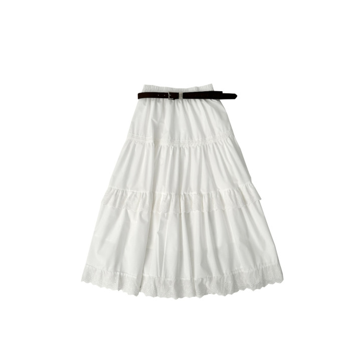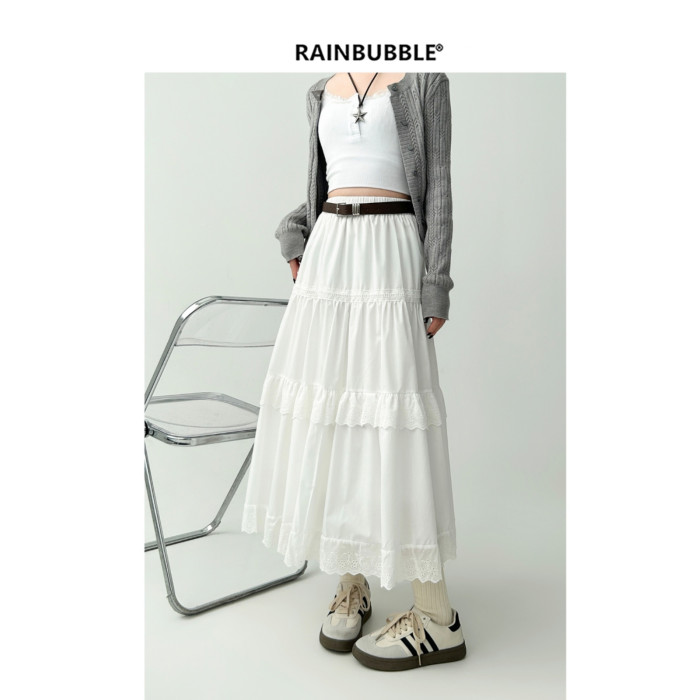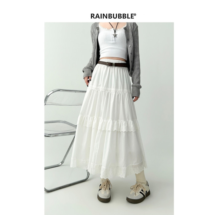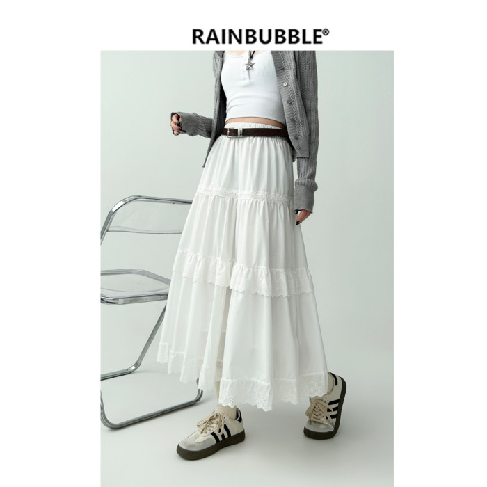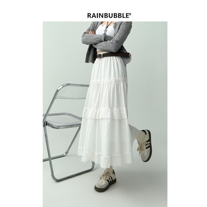 雨氣泡~白色半身裙女春夏新款高腰顯瘦蛋糕長裙設計感小衆a字裙子