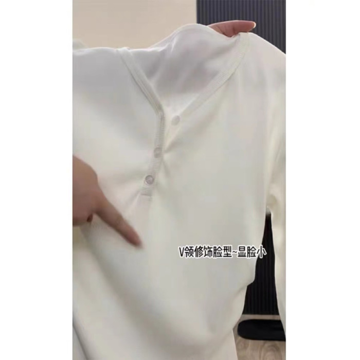純棉v領正肩長袖t恤打底衫女2025秋季新款大碼微胖mm遮肚內搭上衣
