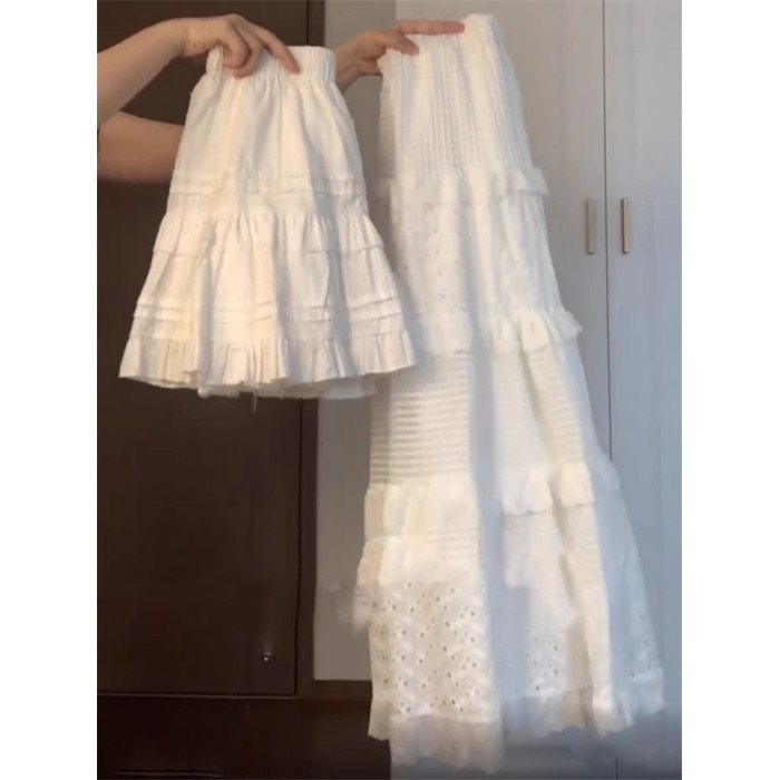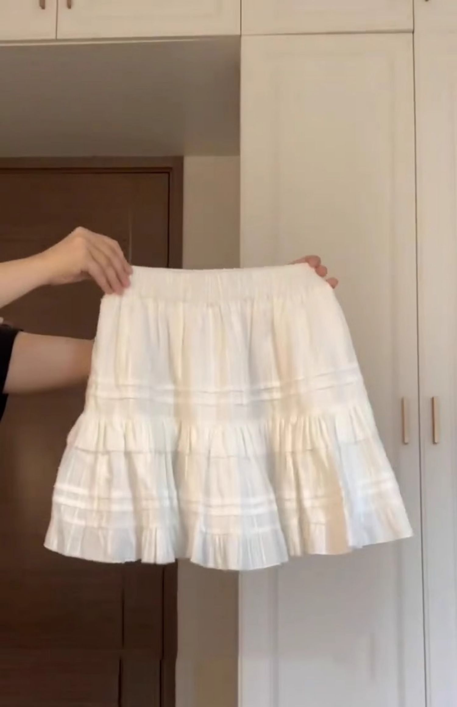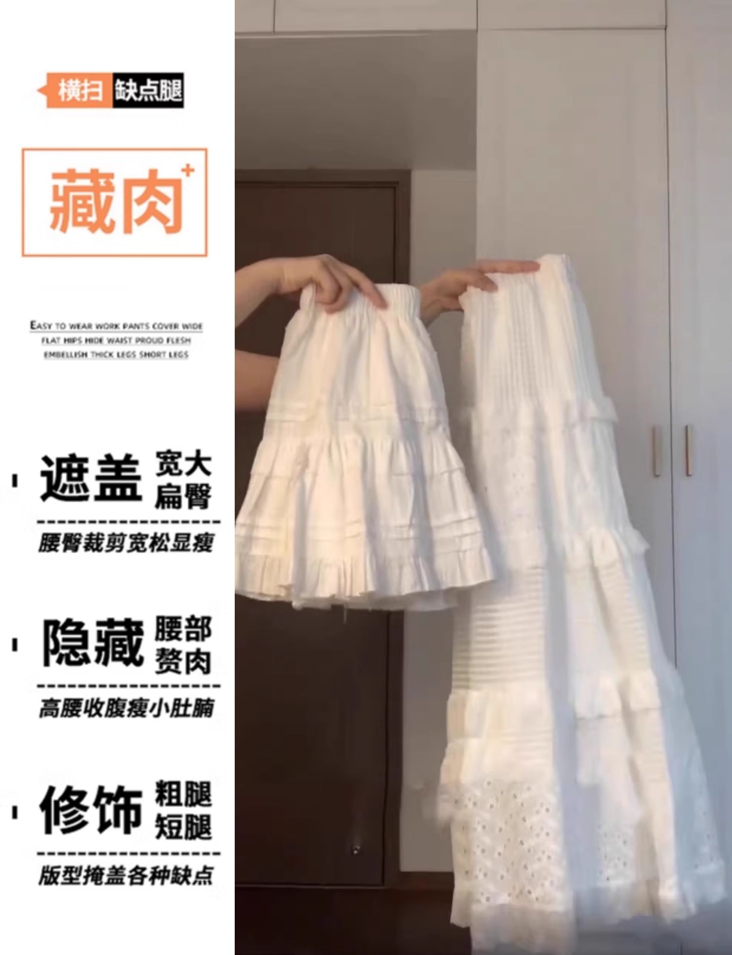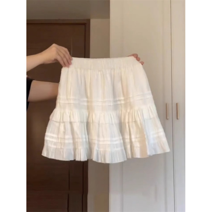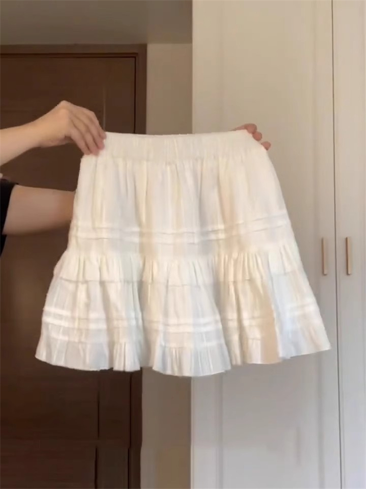 芭蕾風白色蛋糕短裙女大碼秋季新款松緊腰a字氣質減齡蓬蓬半身裙
