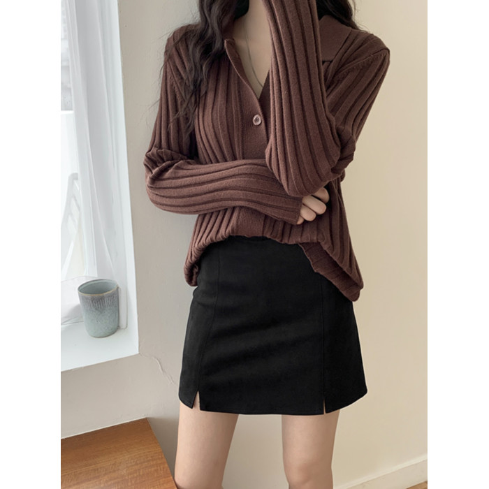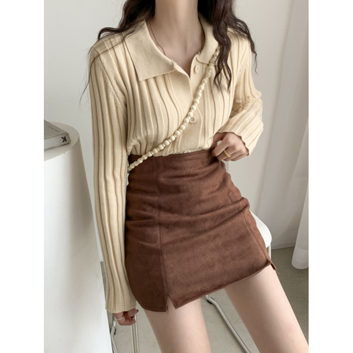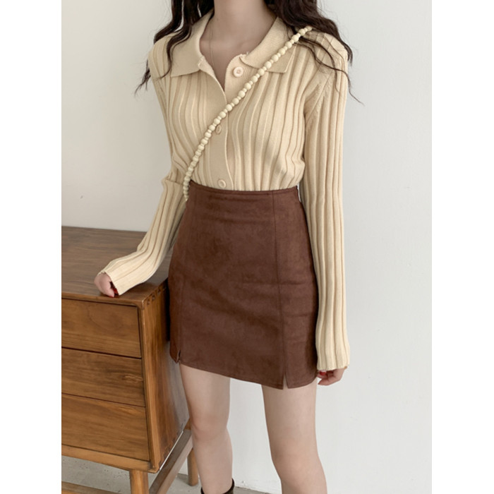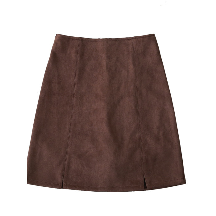 高腰開叉半身裙女2025秋新款a字pu皮裙黑色鹿皮絨包臀短裙一步裙