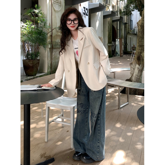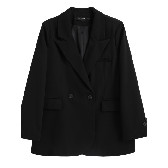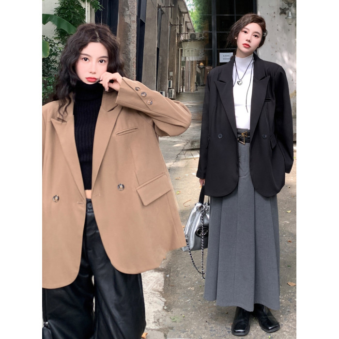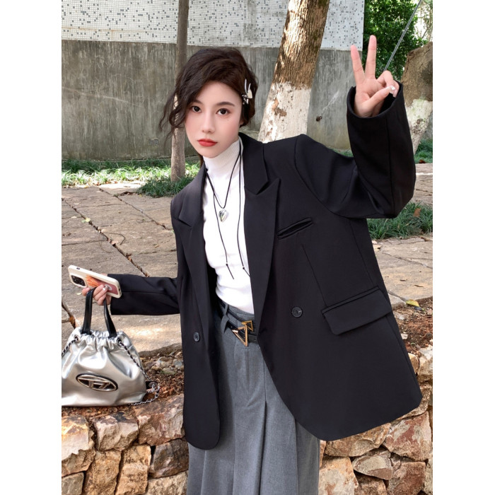 大碼高級感長袖西裝外套女裝秋季氣質黑色小西服胖MM顯瘦寬松上衣