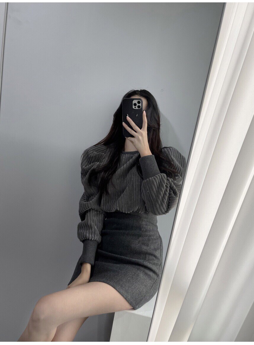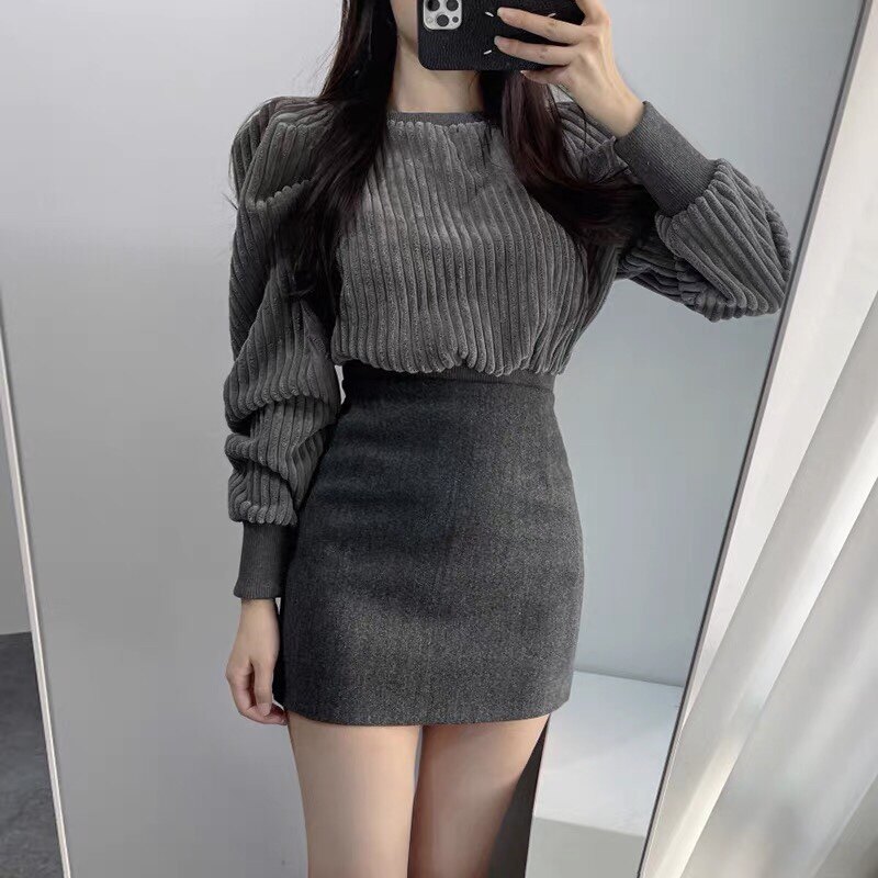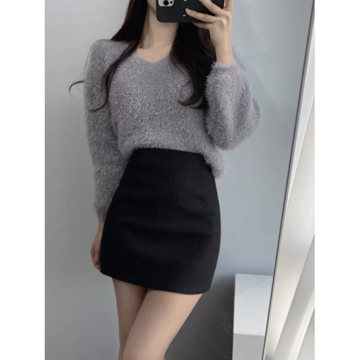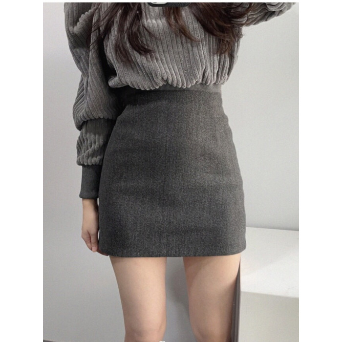 灰色毛呢一步裙短款女秋冬2025新款半身裙高腰緊身a字裙包臀短裙