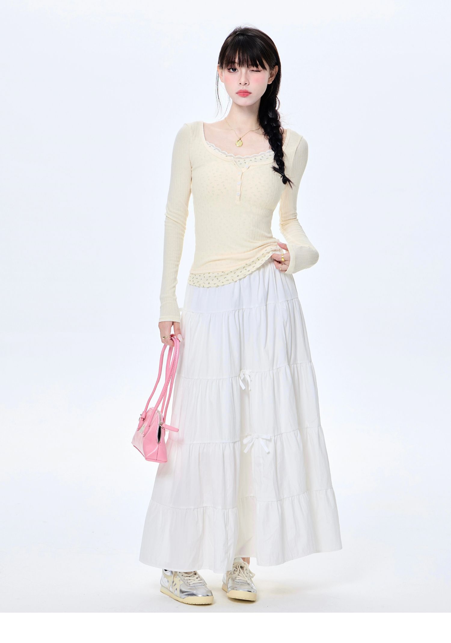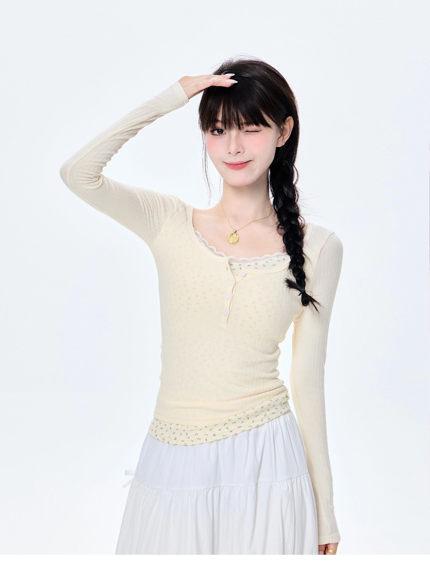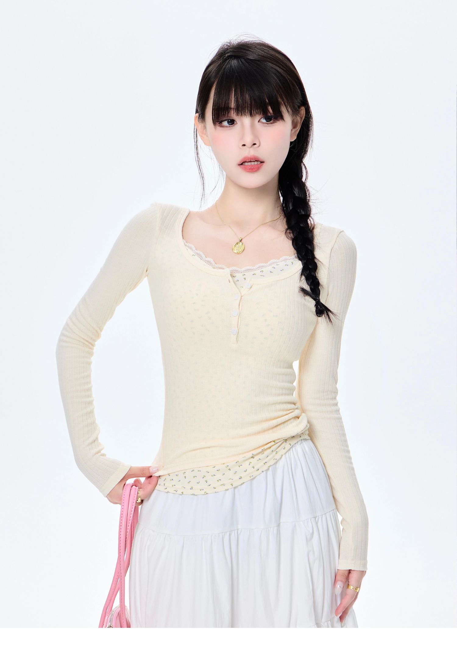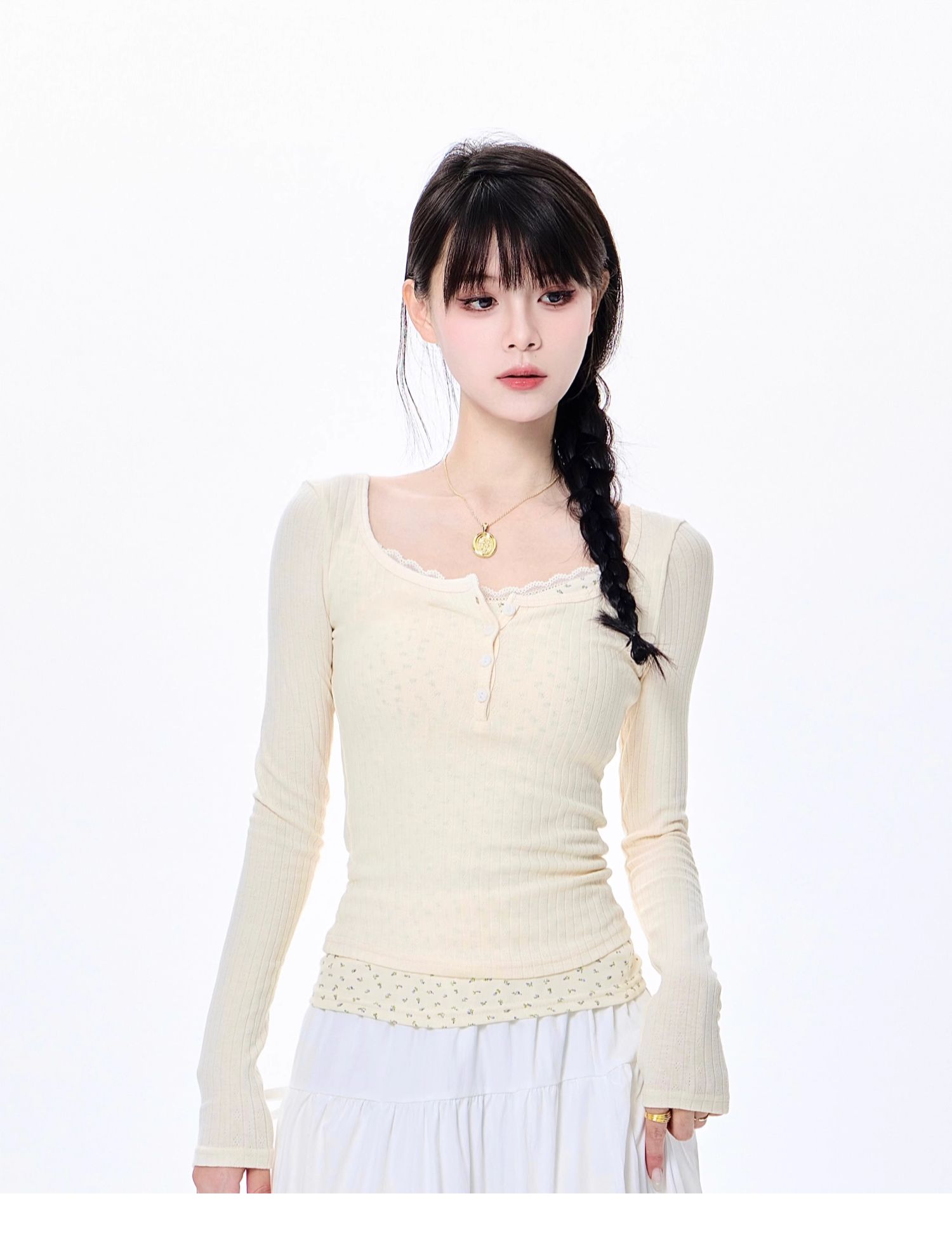 正肩長袖t恤女2025秋季u領設計感上衣小香風內搭百搭韓版蕾絲打底