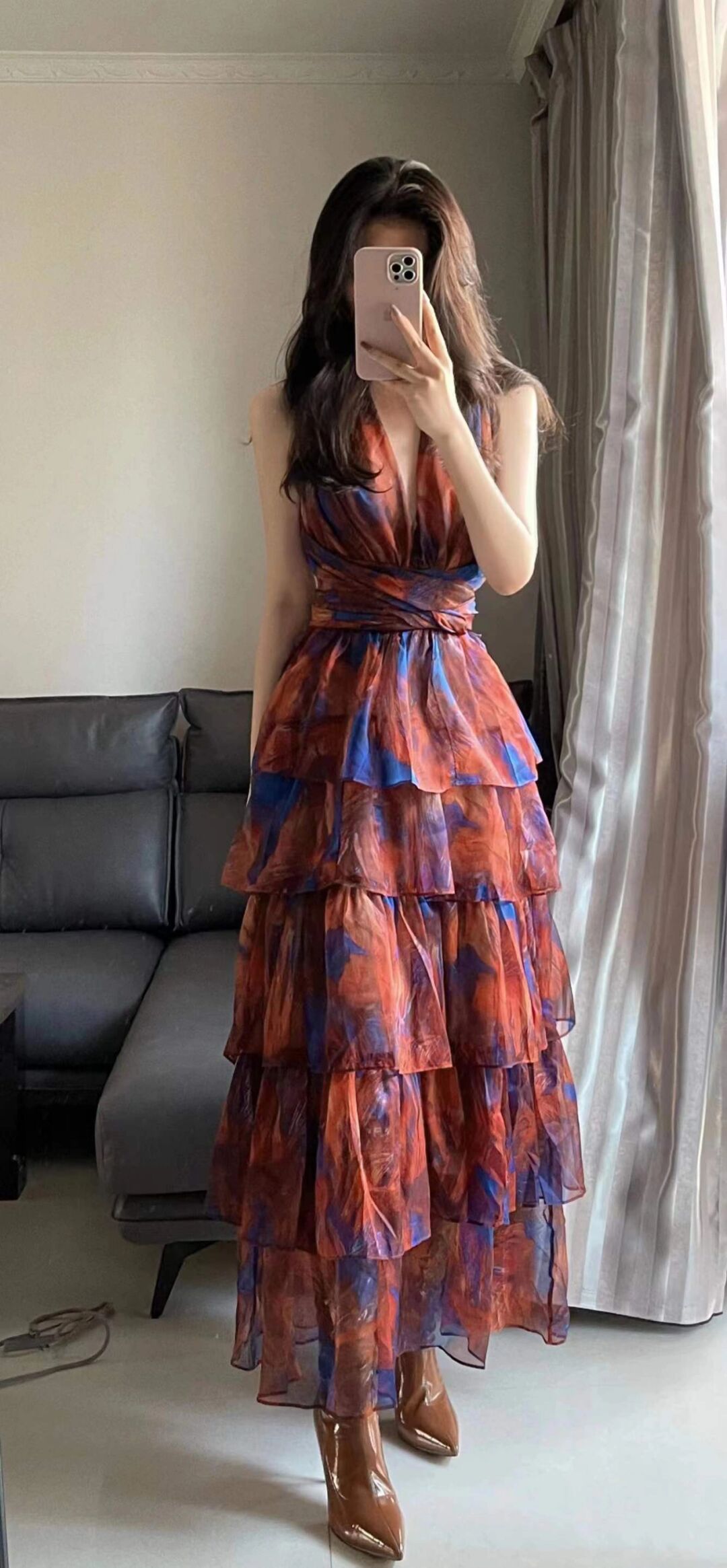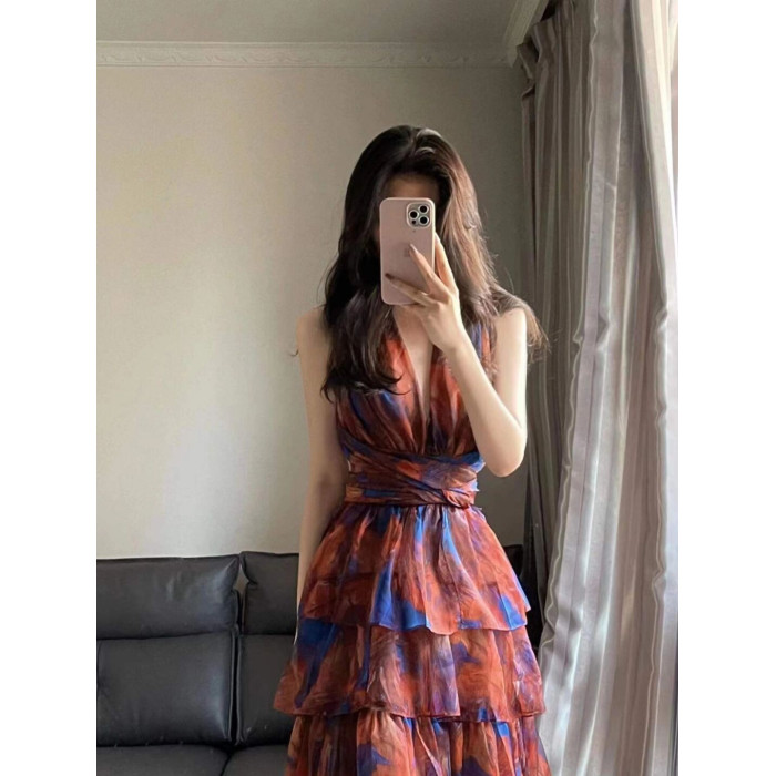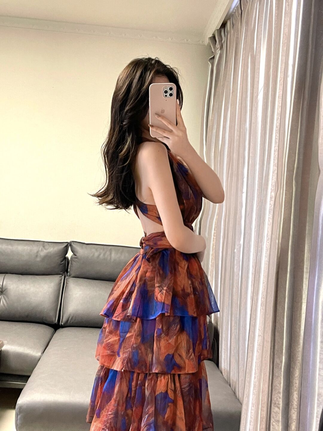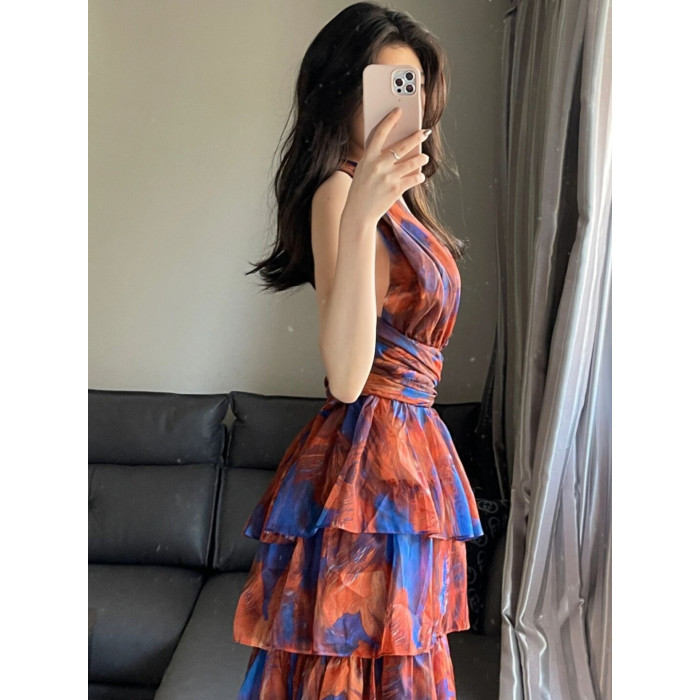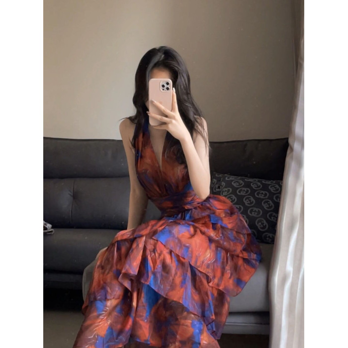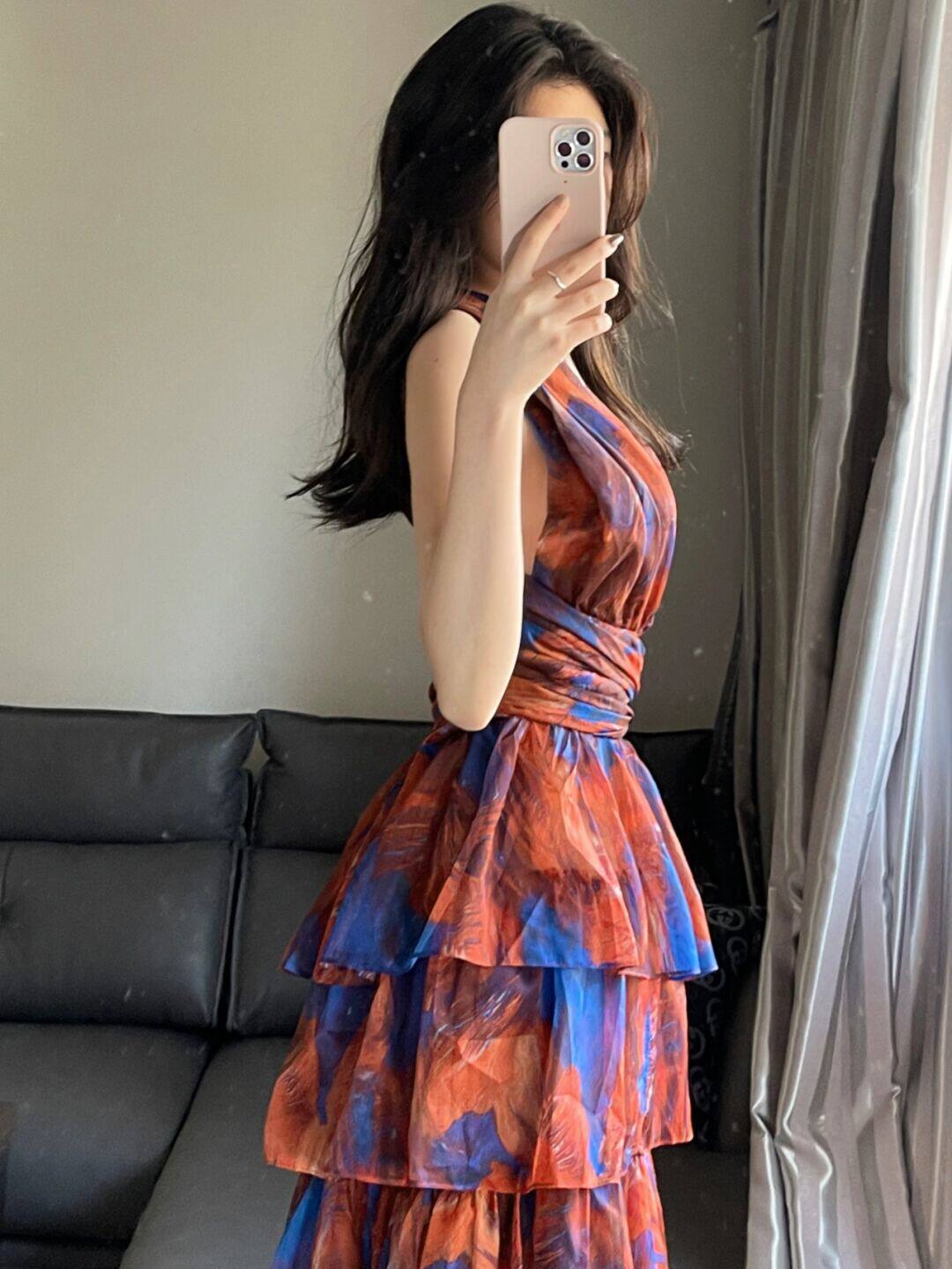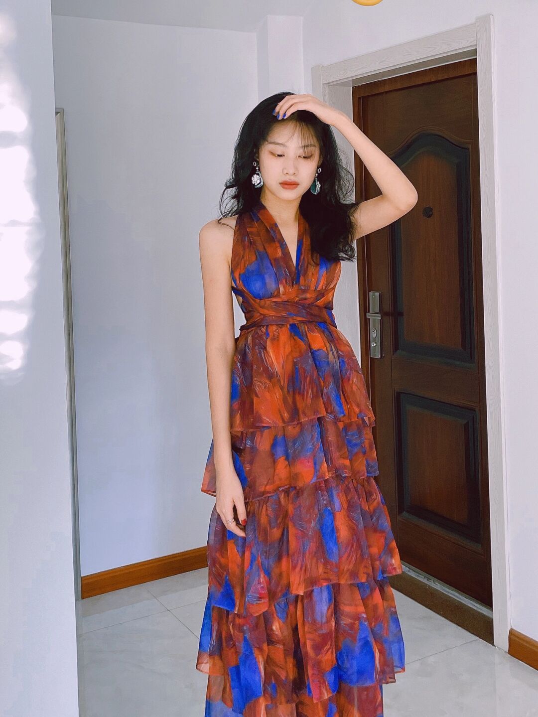 三亞旅遊穿搭女超仙拍照掛脖裙沙灘裙海邊度假連衣裙波西米亞長裙