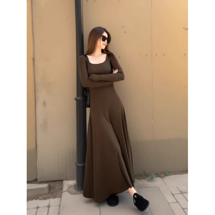 【270克棉磨毛】秋日紙片人/顯瘦顯高u領簡約新款大A連衣裙秋