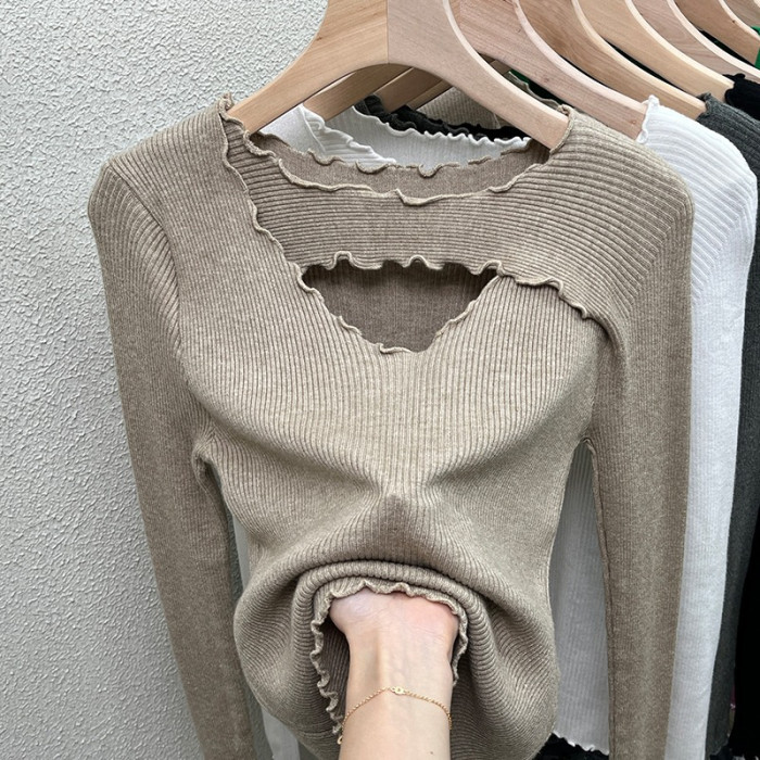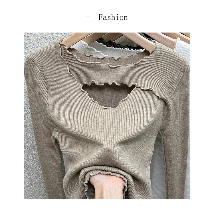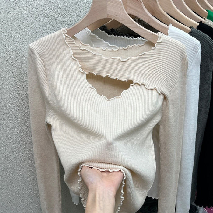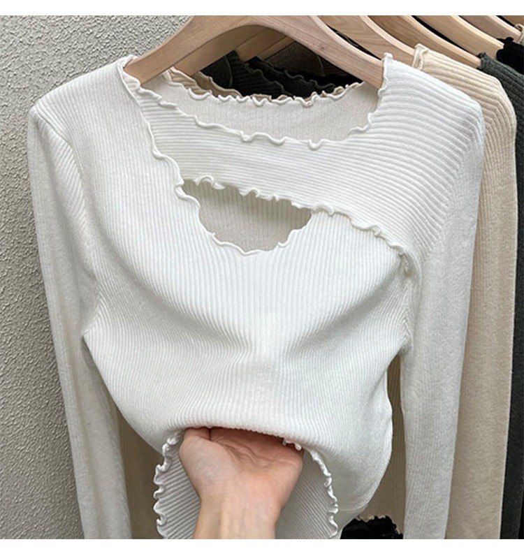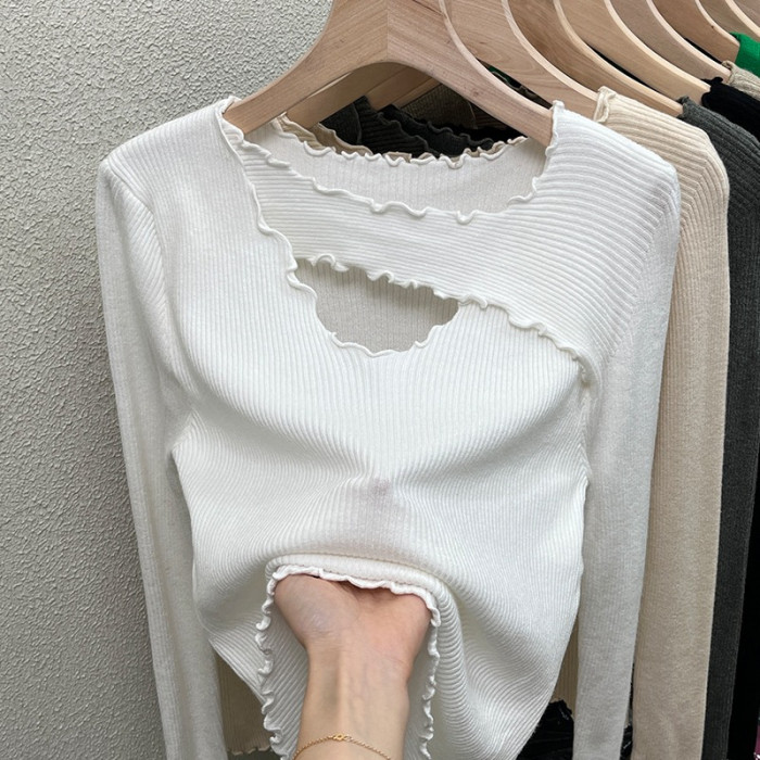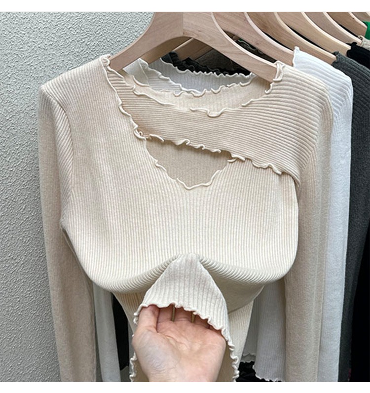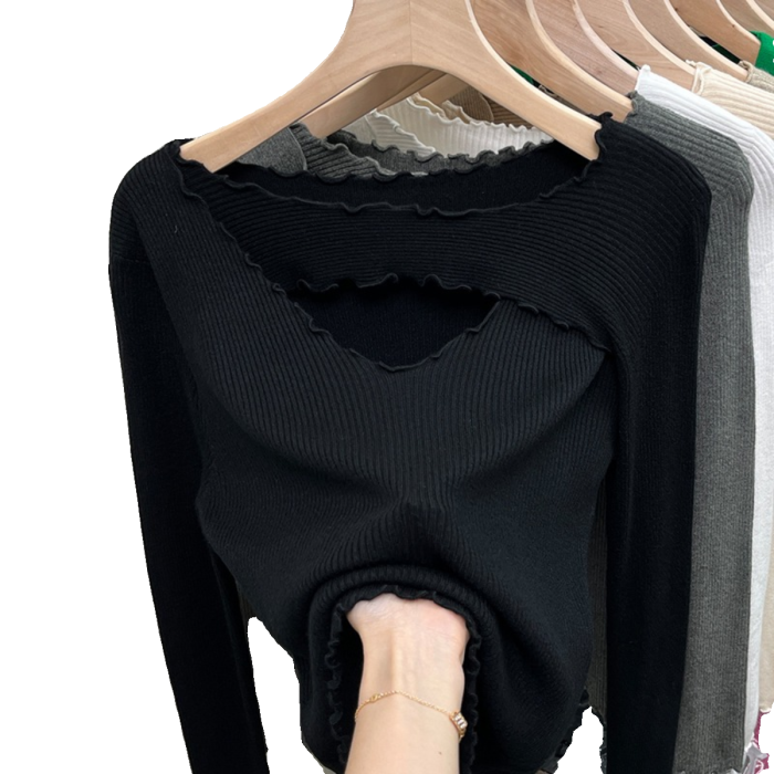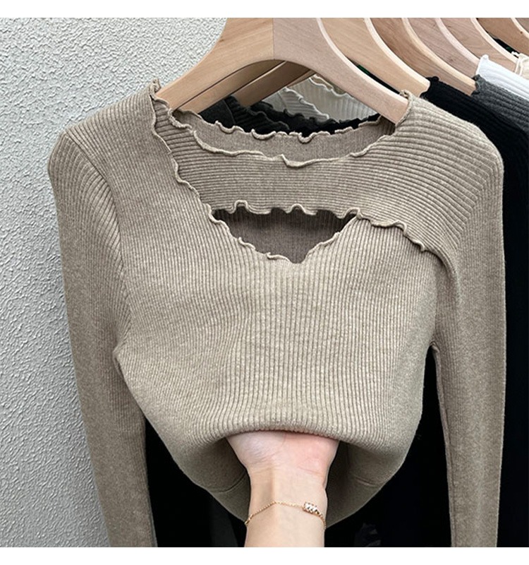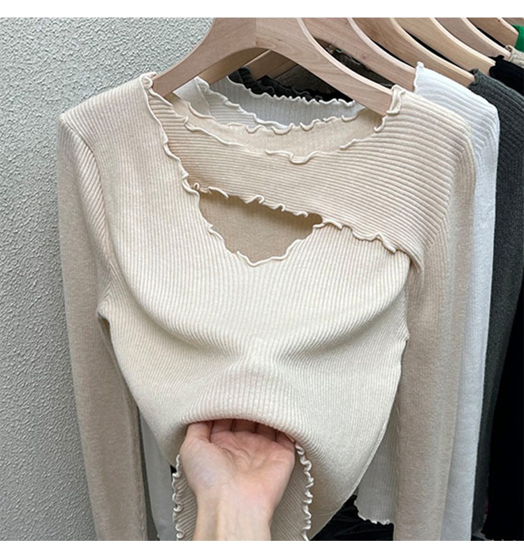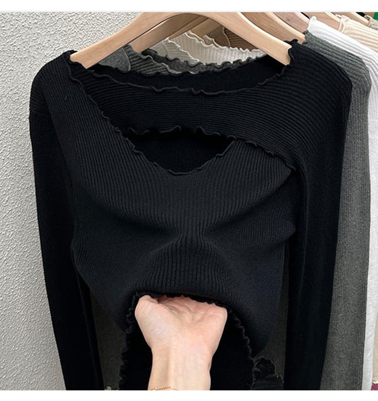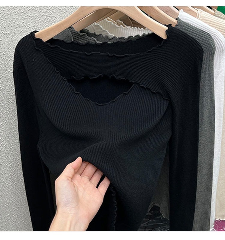300斤大碼女裝胖mm秋冬季純欲木耳邊上衣設計感小衆打底衫女內搭2