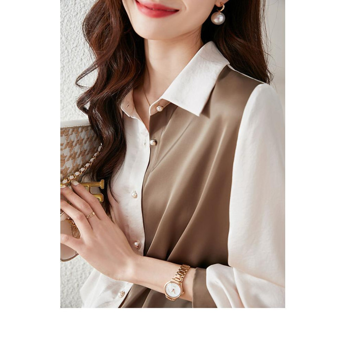 2025女裝新款雪紡衫襯衫女大復古港味休閒上衣寬松女士長袖襯衣女