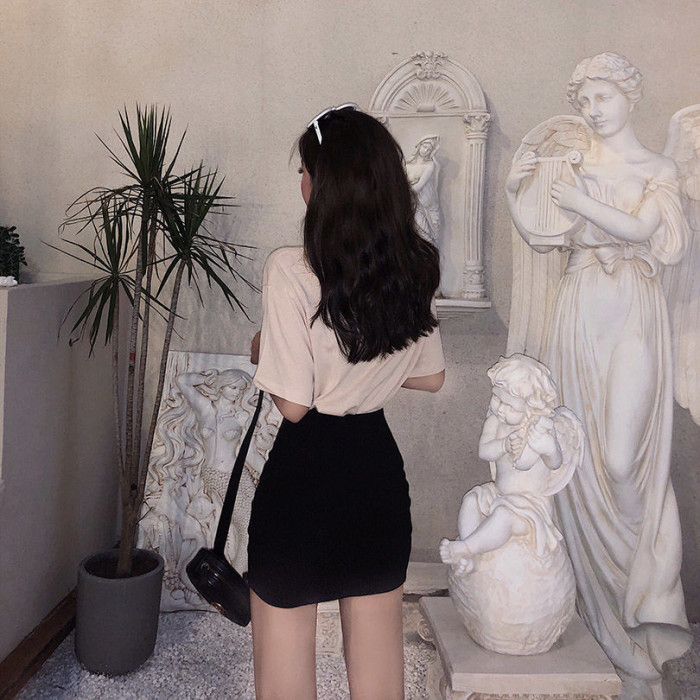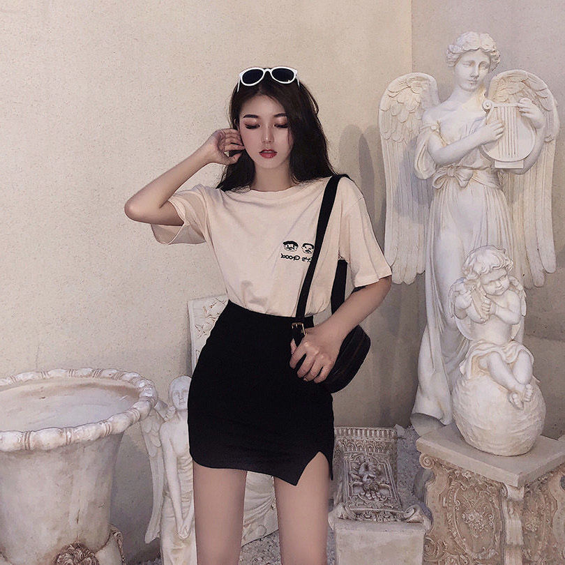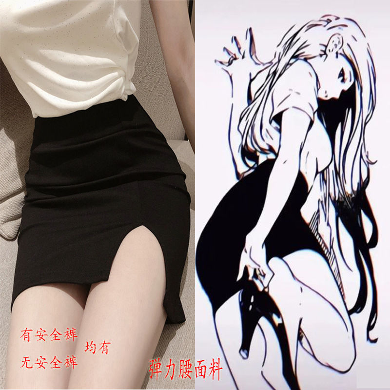 開叉包臀裙性感a字短裙子小心機辣妹半身裙女春秋季新款緊身黑色