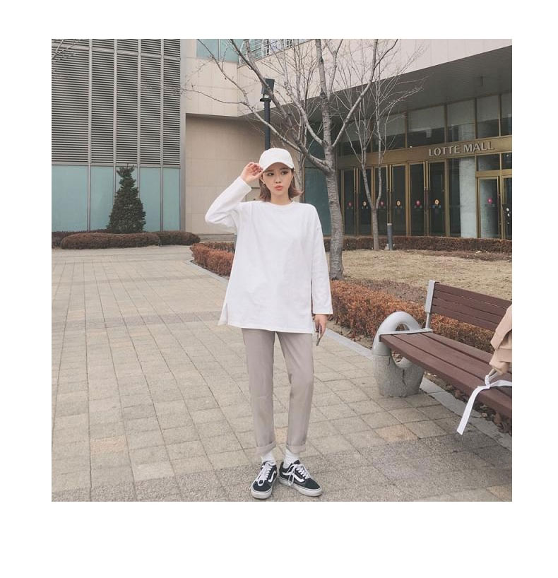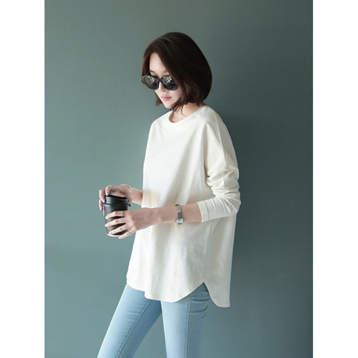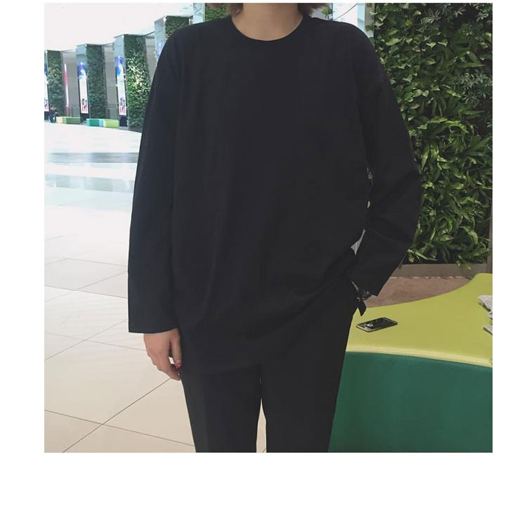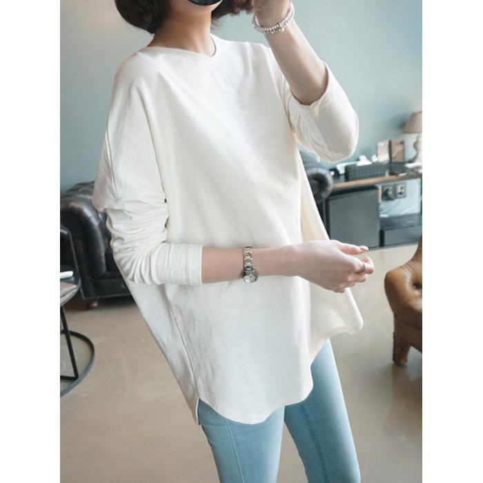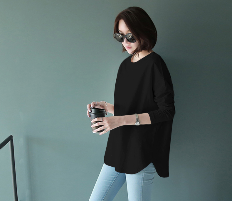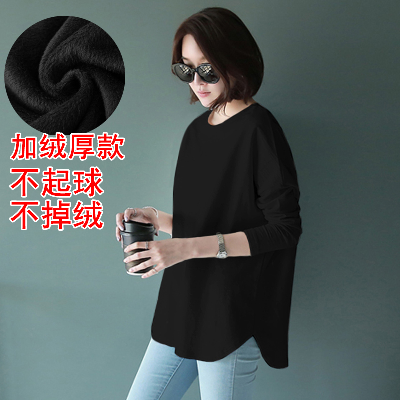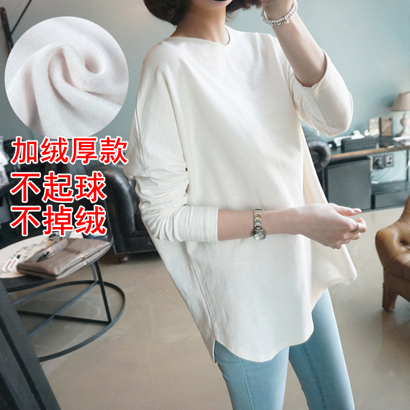 2025大碼中長款寬松純棉白色T恤女內搭長袖打底衫上衣春秋冬加絨