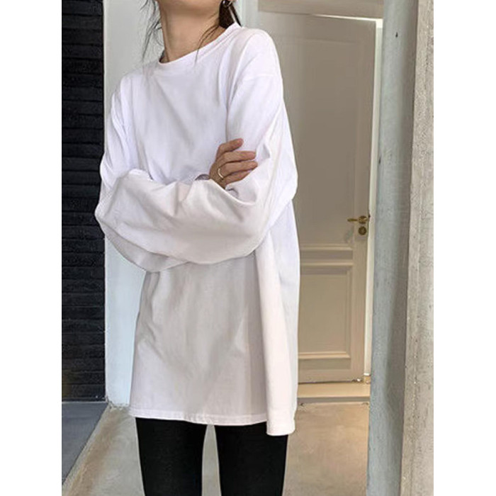 重磅純棉打底衫長袖t恤女2025秋季美式短袖百搭內搭白色別致上衣