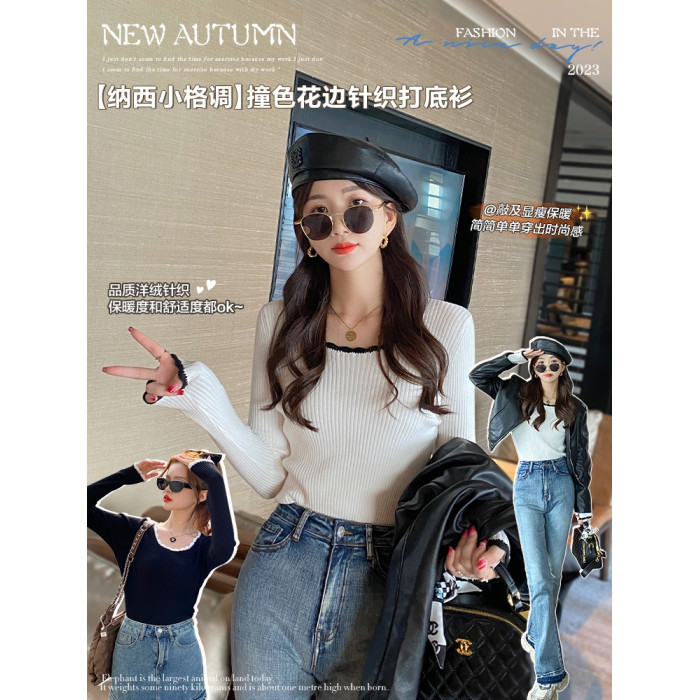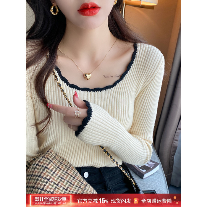 早秋巨好看打底衫女裝內搭2025新款爆款低圓領針織上衣毛衣可外穿