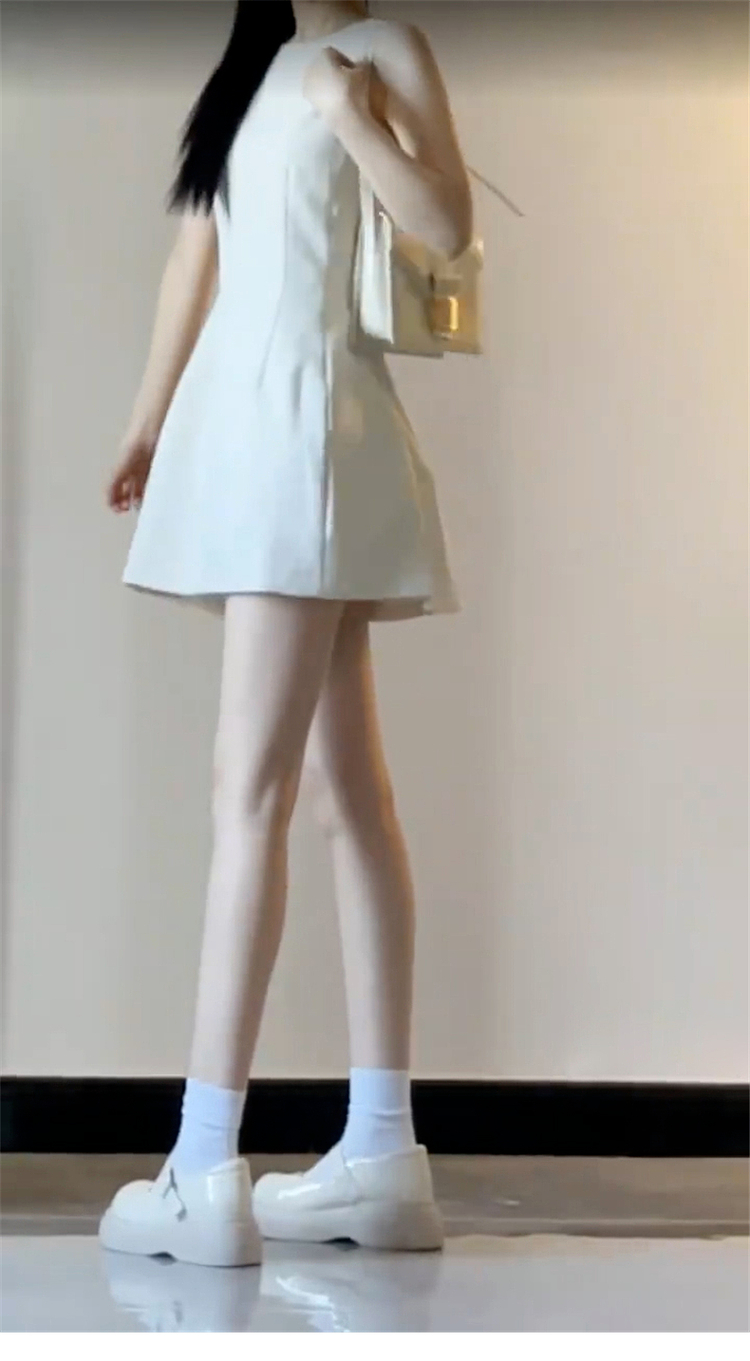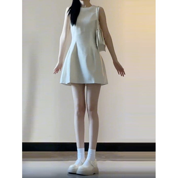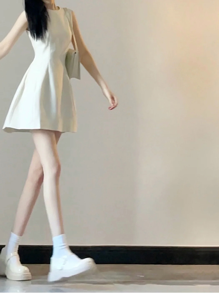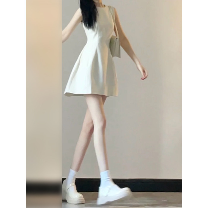 法式白色無袖背心連衣裙子女夏季2025新款小個子收腰氣質a字短裙