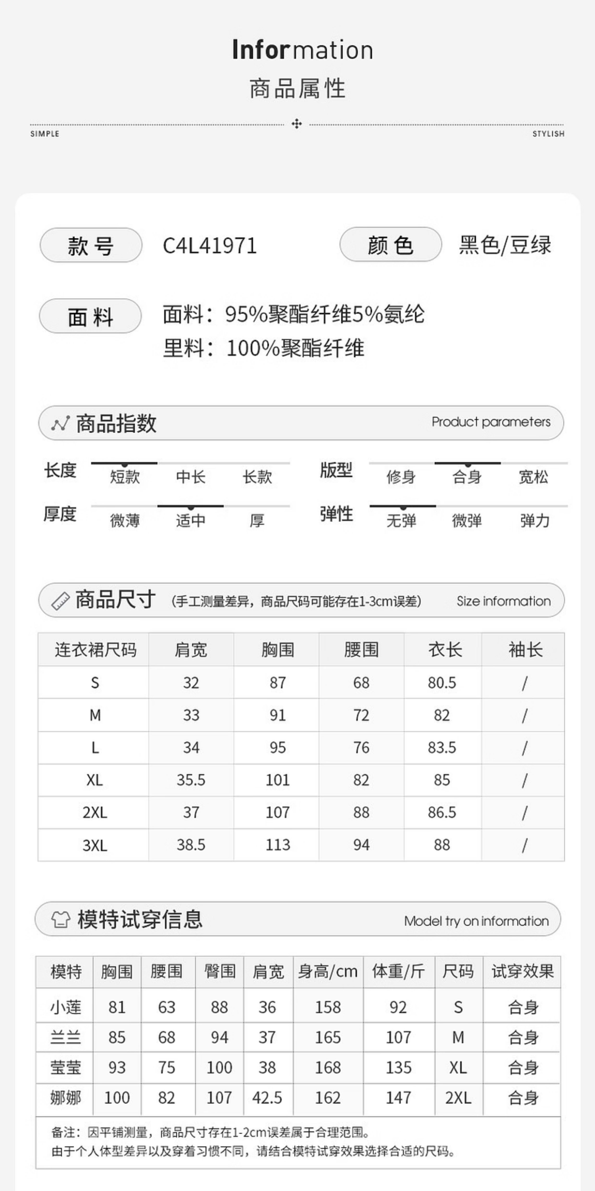 款式及尺寸: