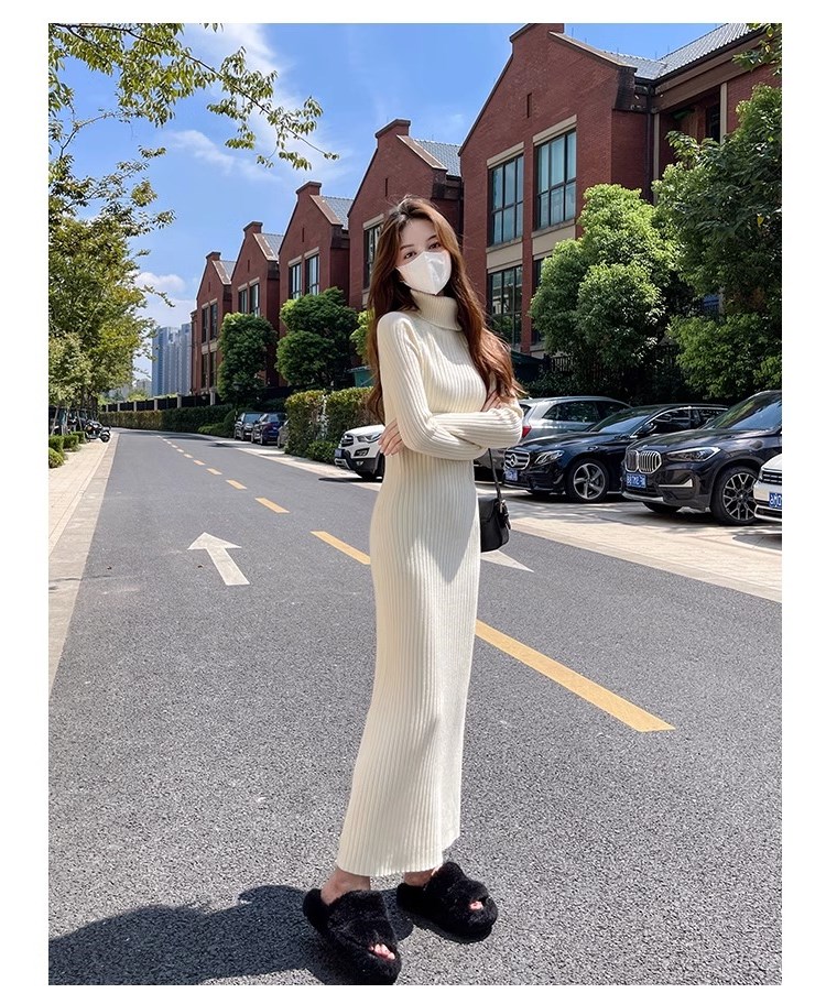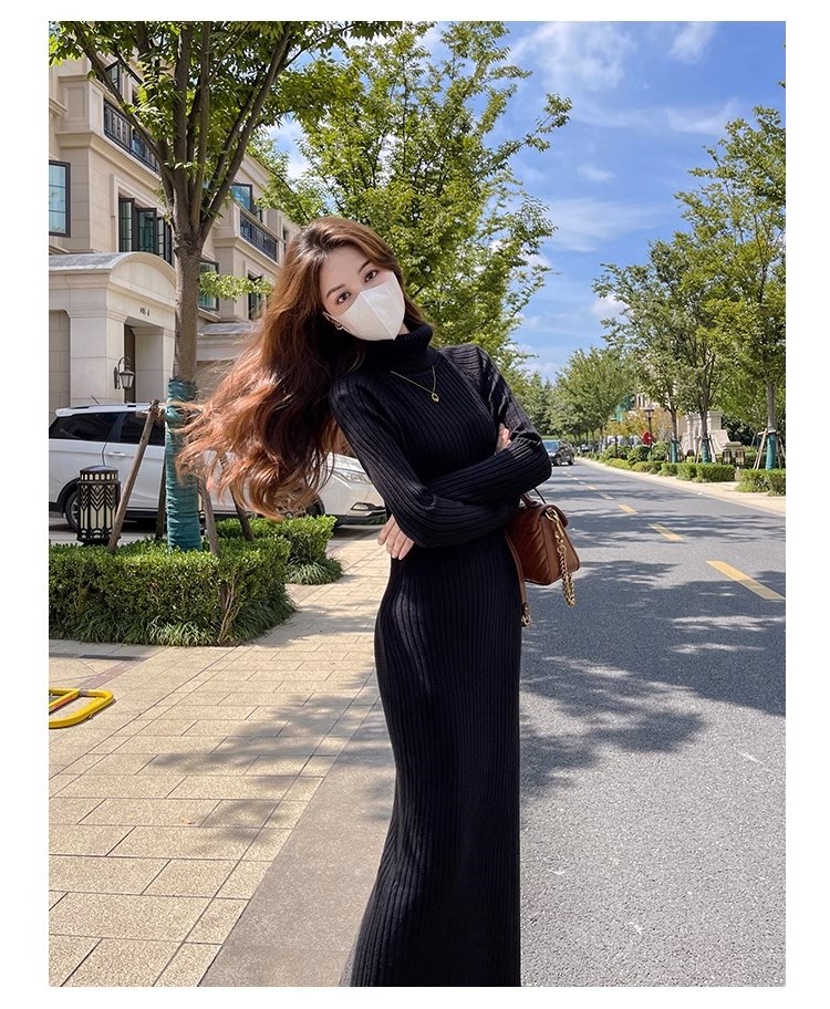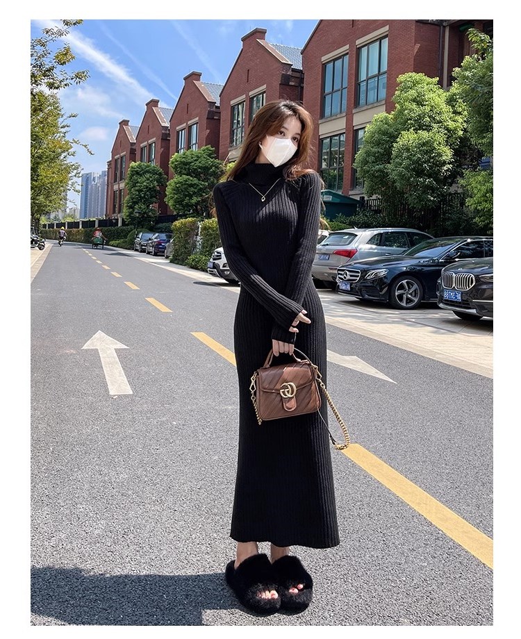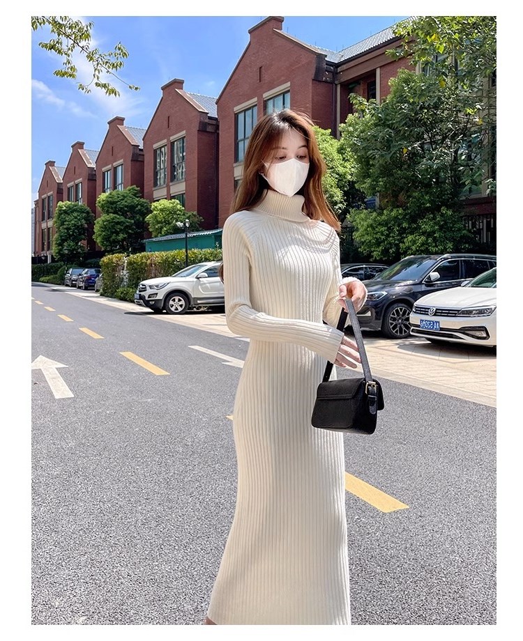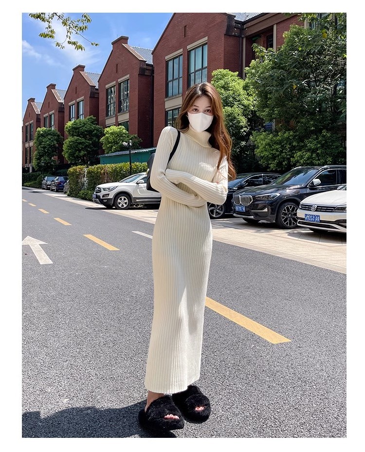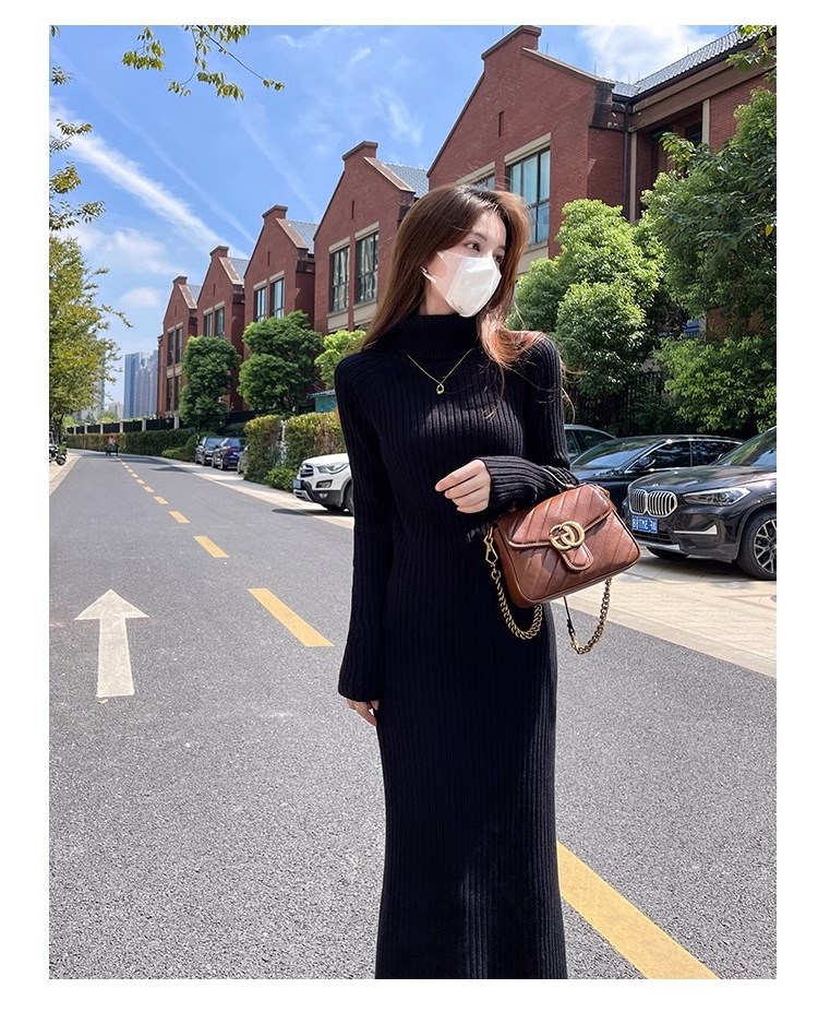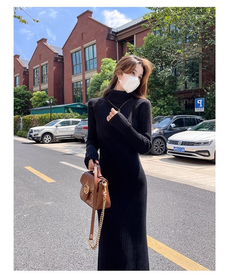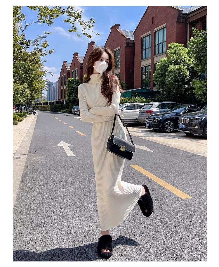 配大衣的長款內搭針織連衣裙女秋冬季慵懶高領過膝羊絨打底毛衣裙