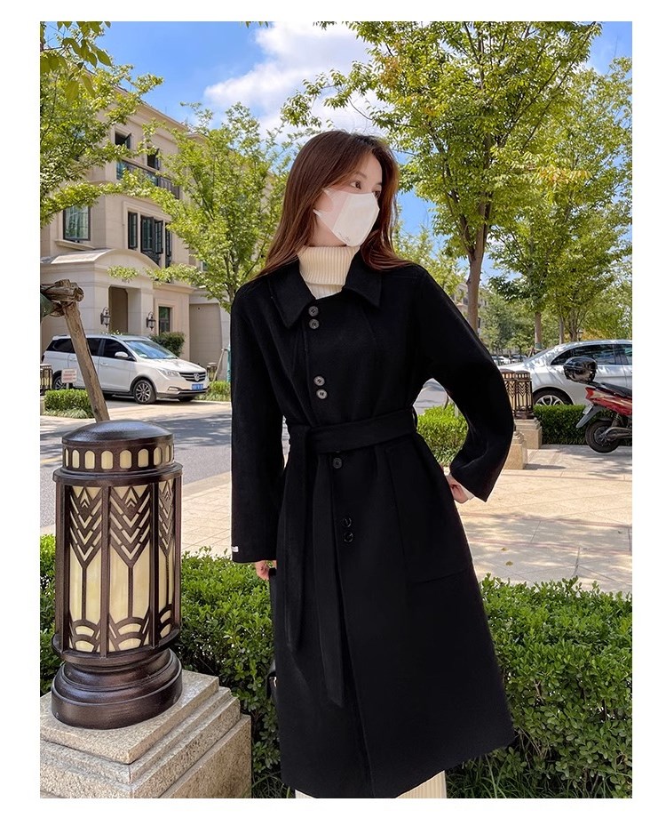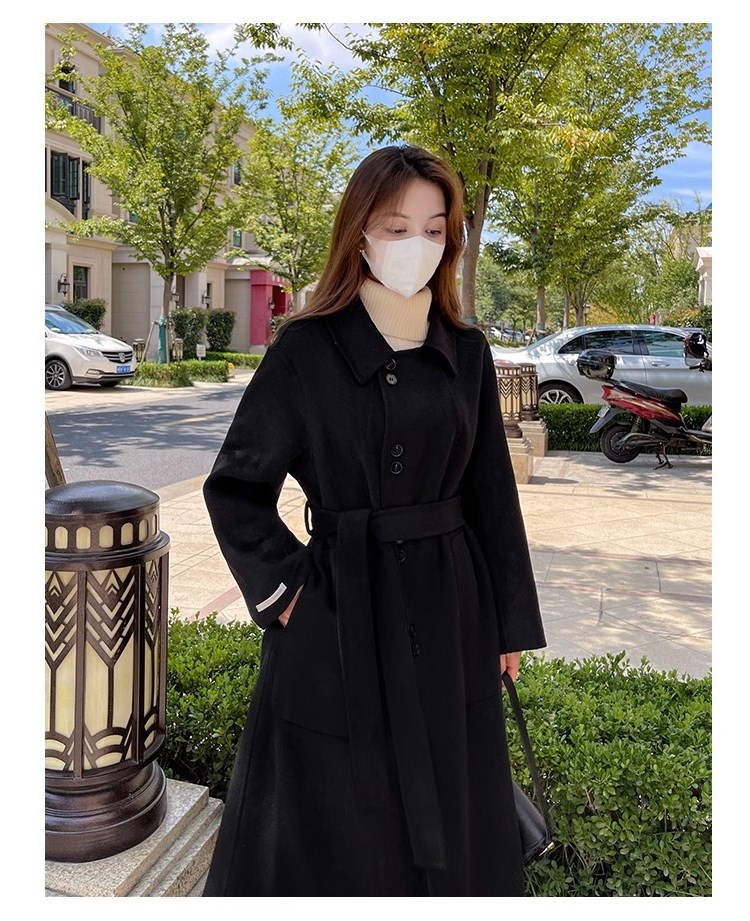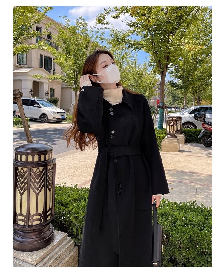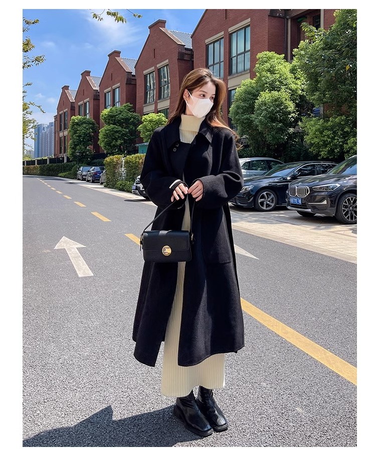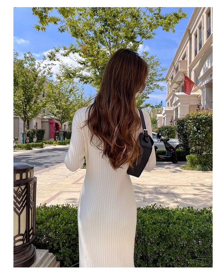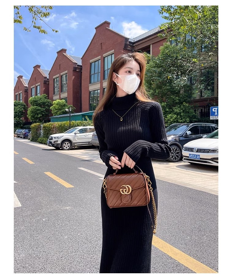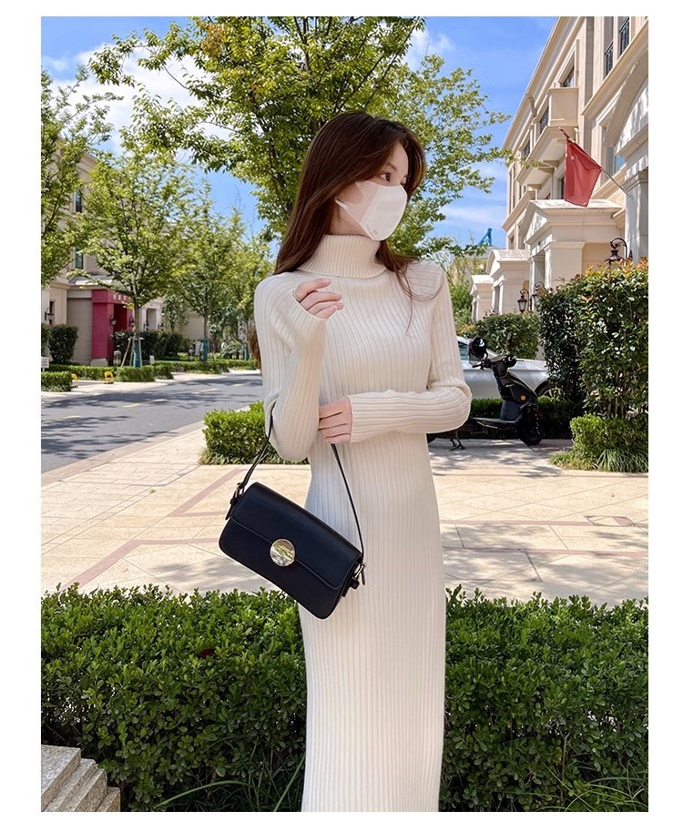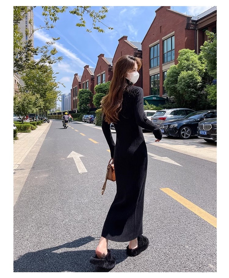 配大衣的長款內搭針織連衣裙女秋冬季慵懶高領過膝羊絨打底毛衣裙